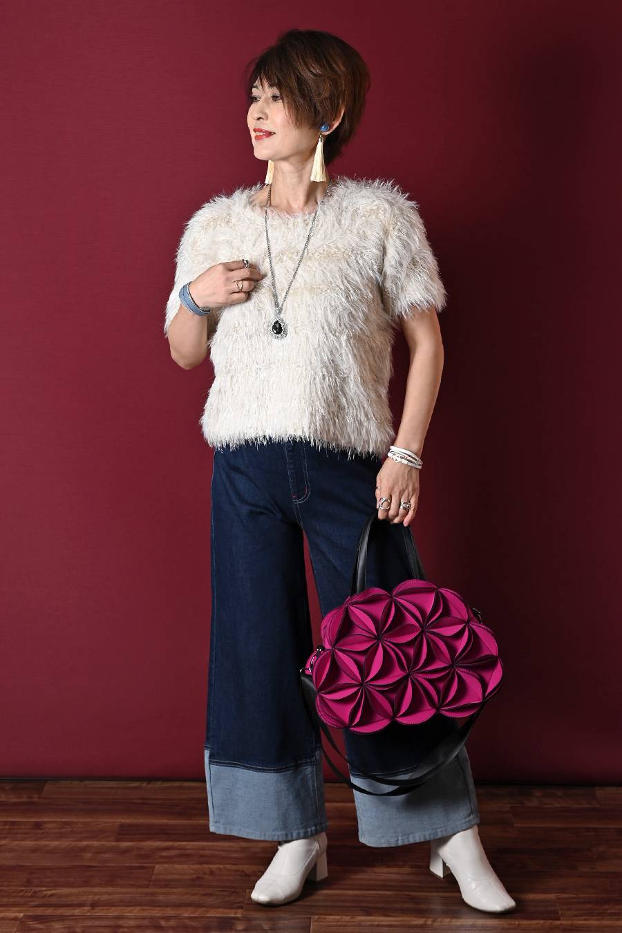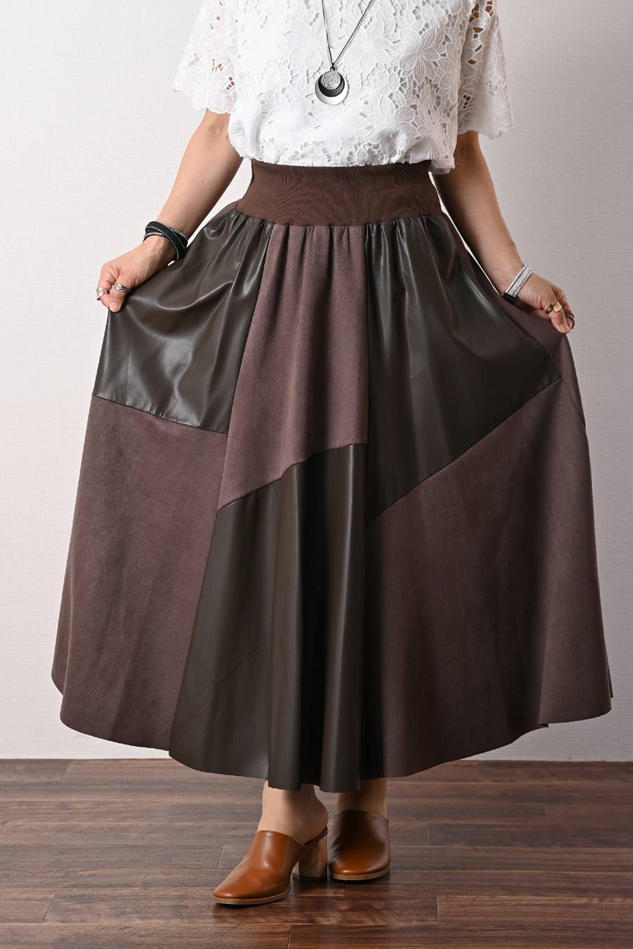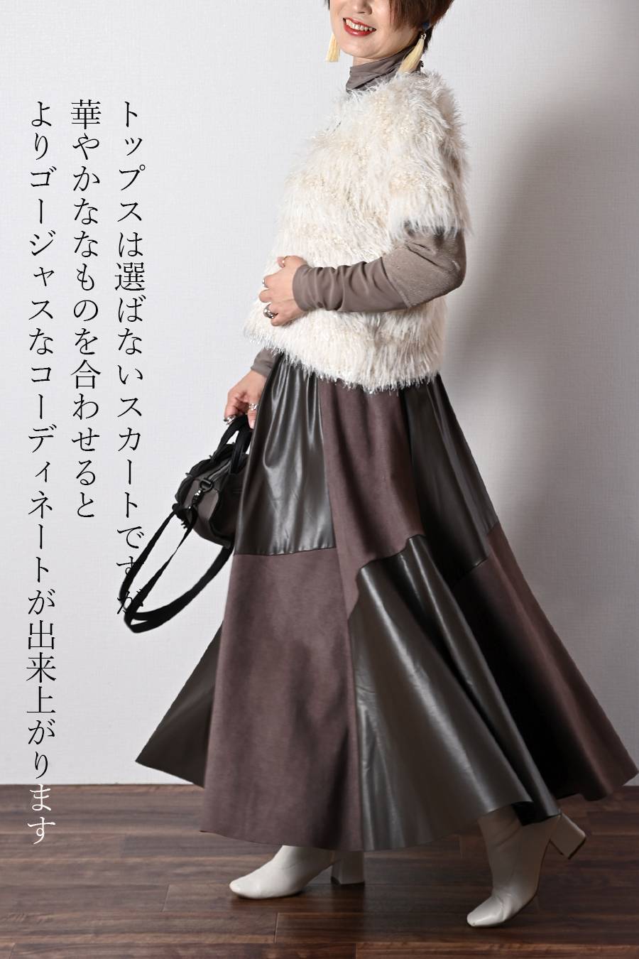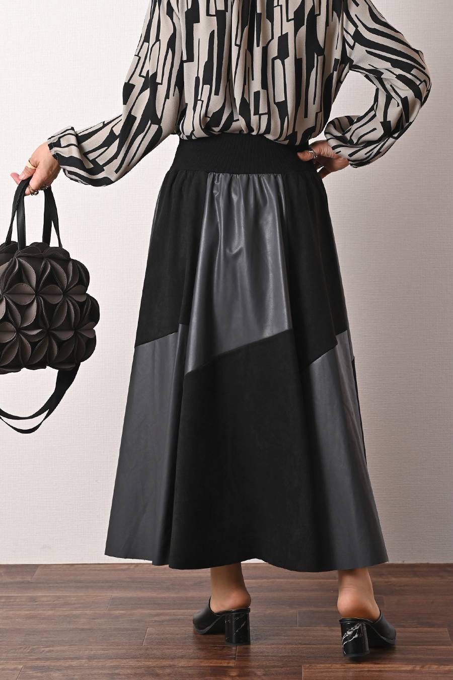 ショートスリーブシャギーニット+エコレザースカート2点セットコーデ