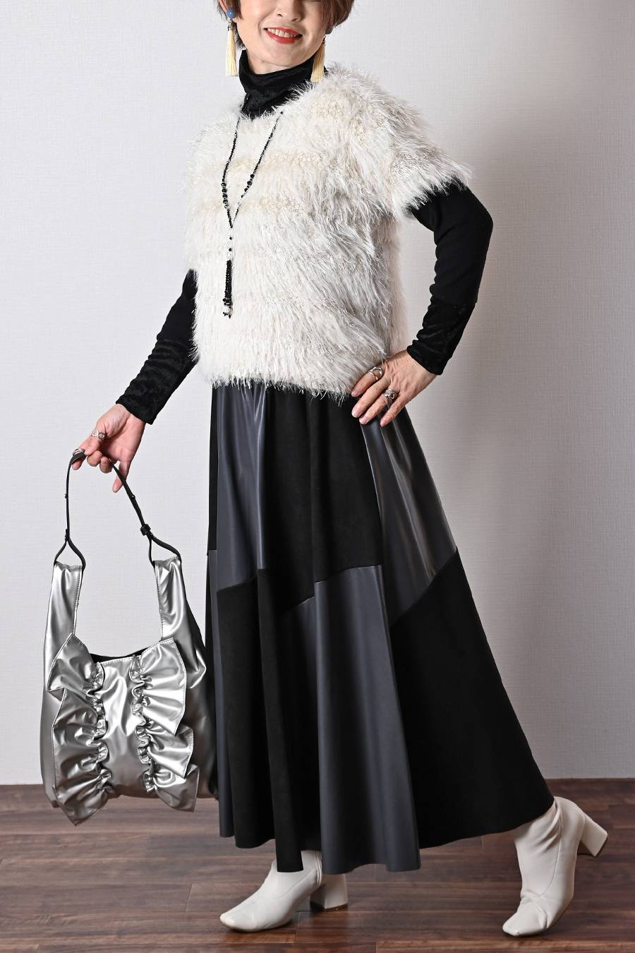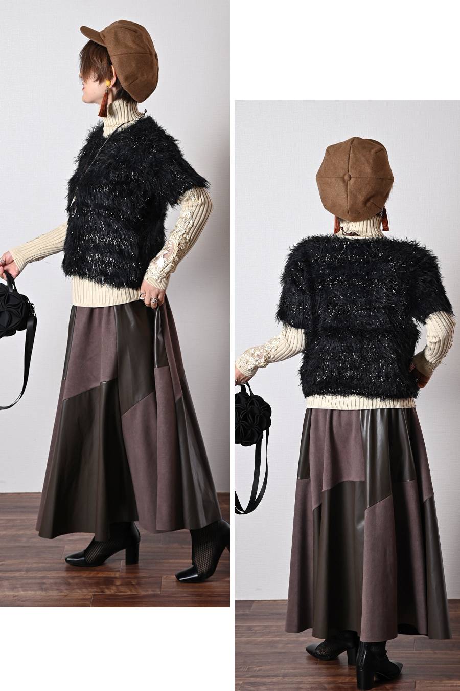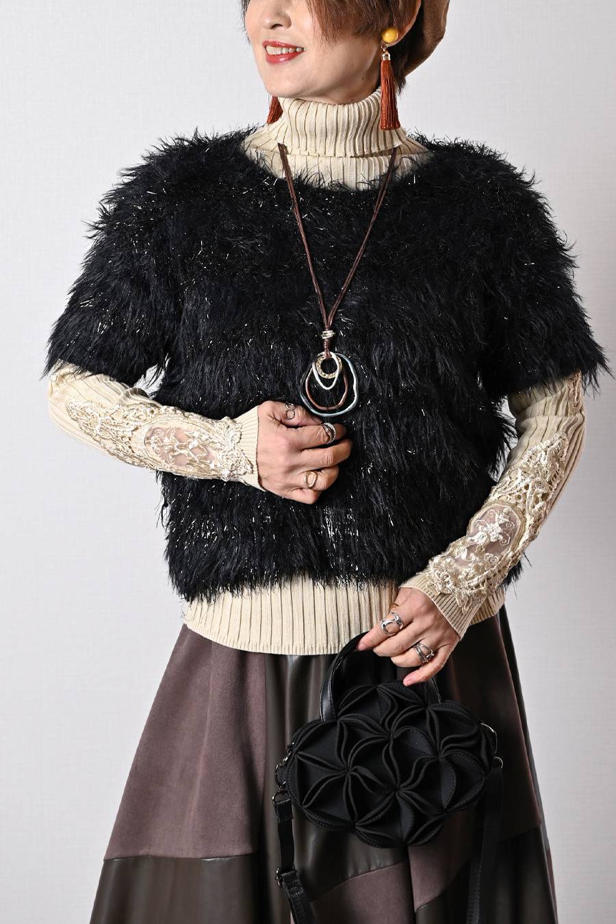 選べるボアベスト+ラメ&チュール タートルネックプルオーバー2点セットコーデ