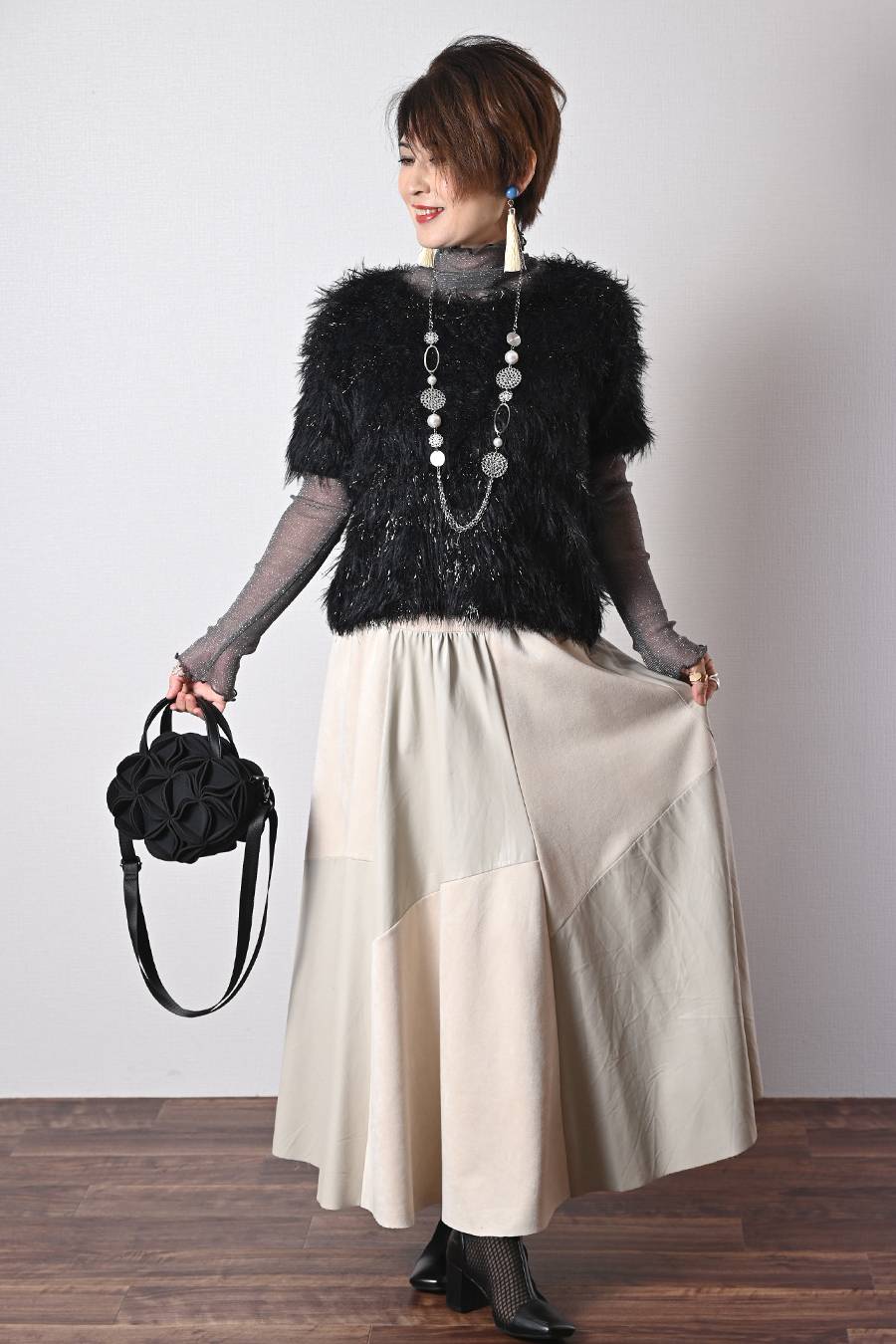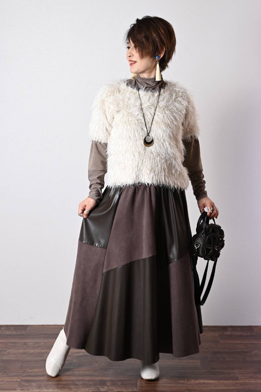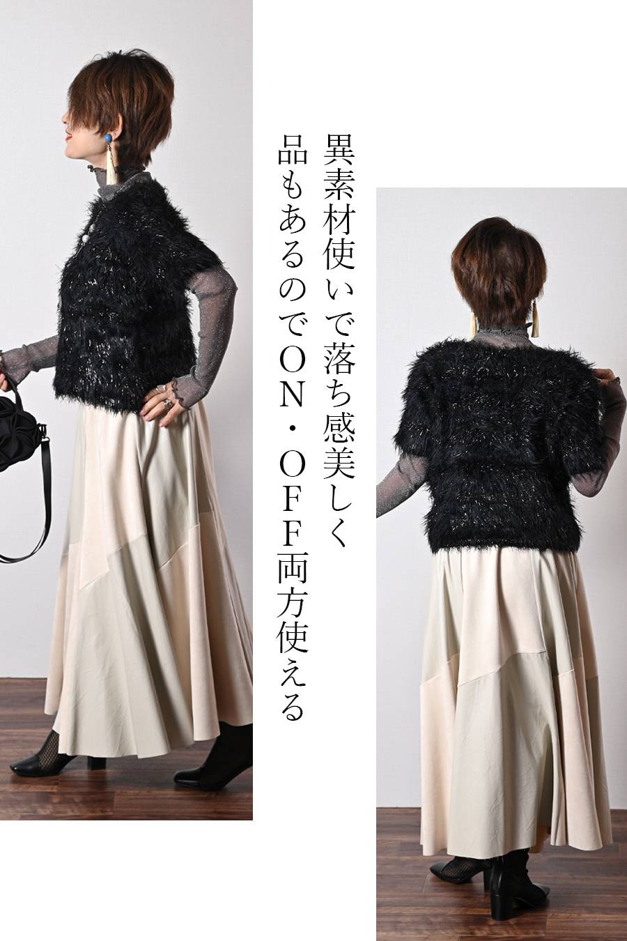 選べるボアベスト+ラメ&チュール タートルネックプルオーバー2点セットコーデ