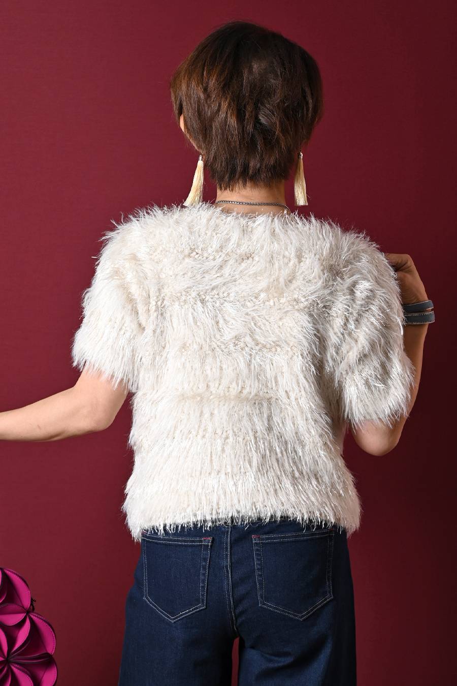 【Special Offer 45%OFF】美ゴージャスレースリブニットソー+プードルファーショートベスト2点セットコーデ