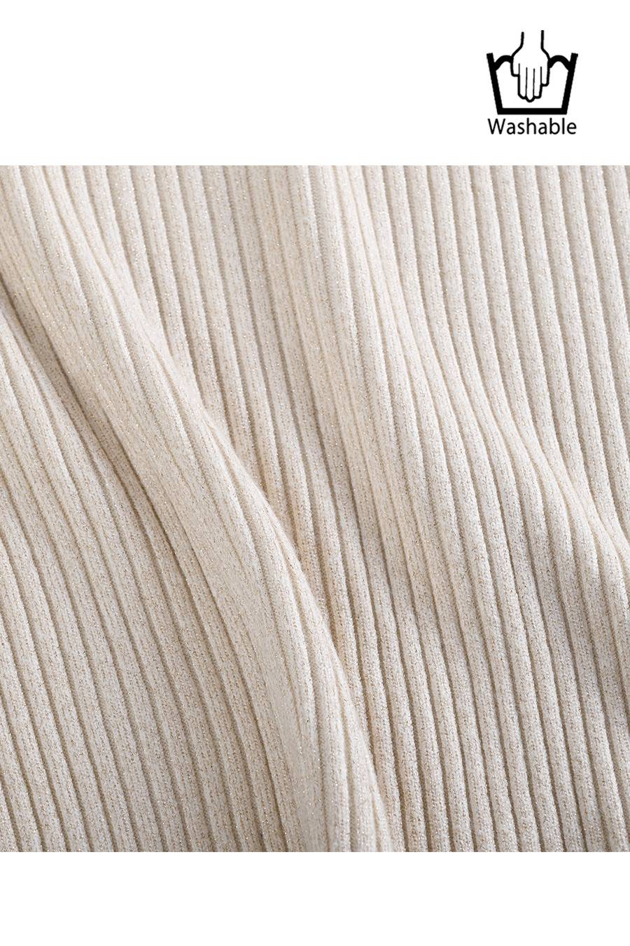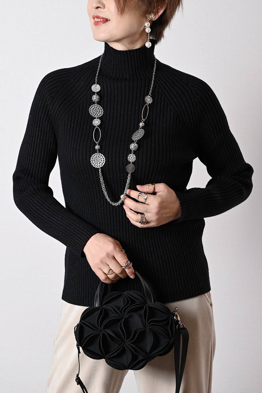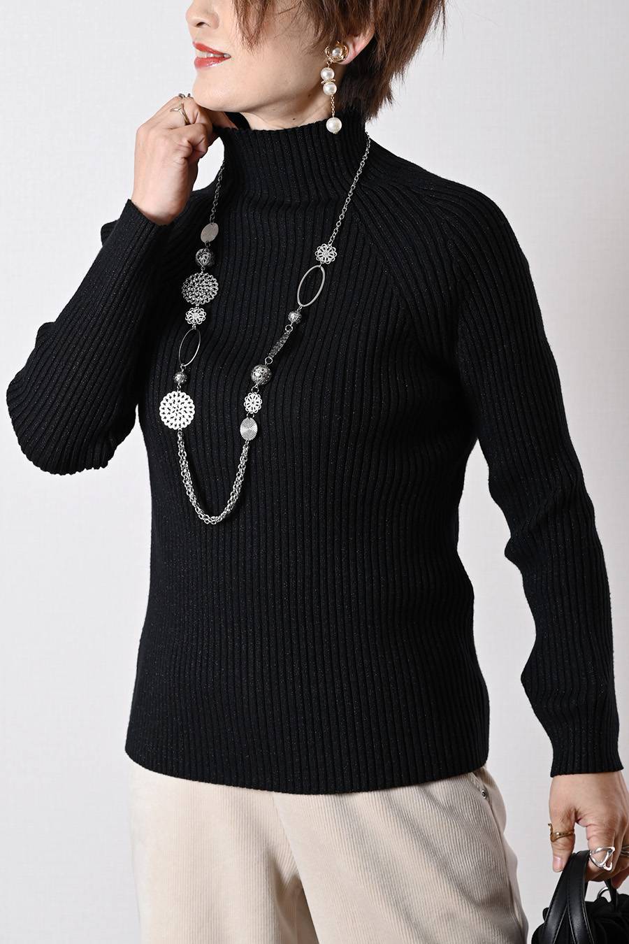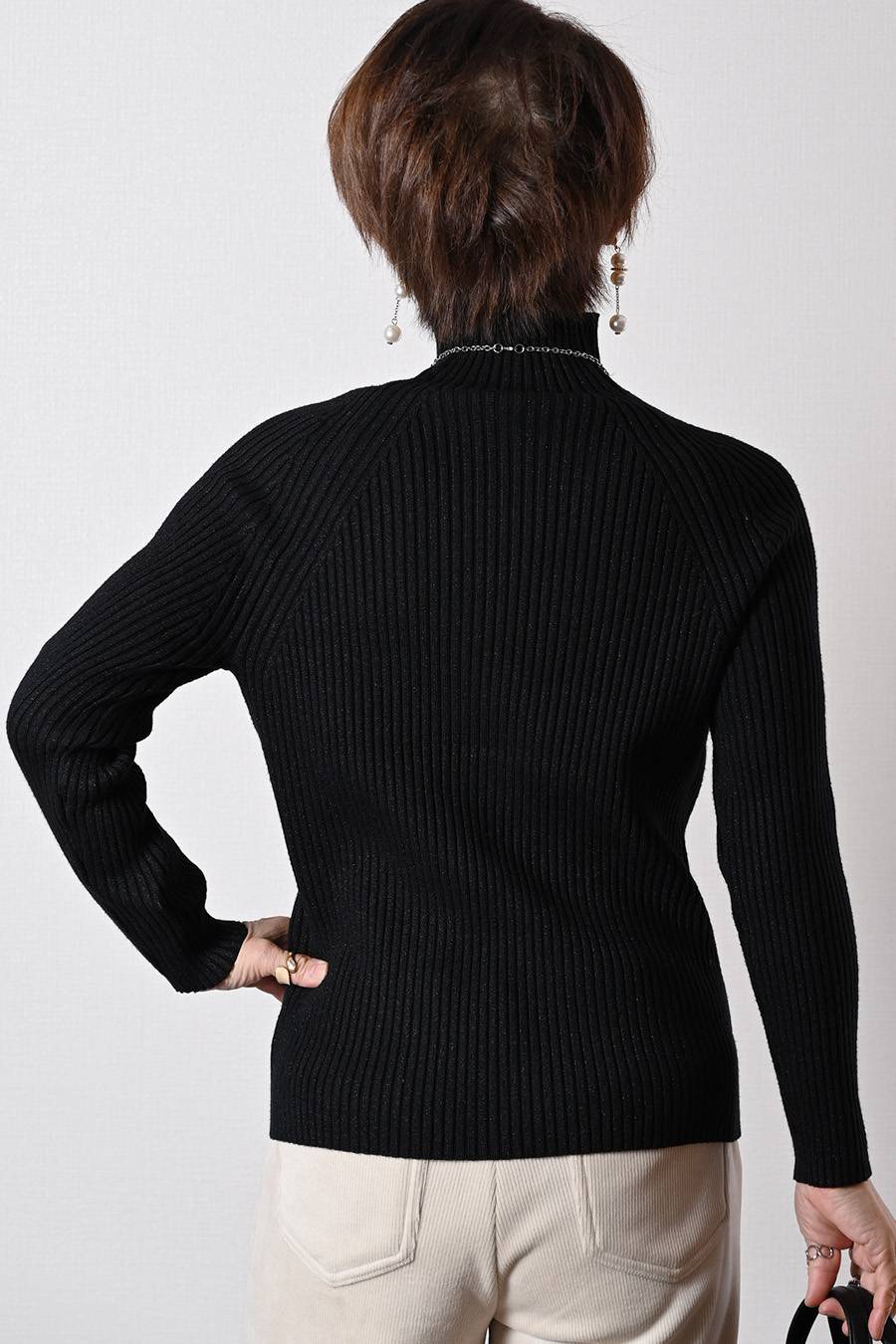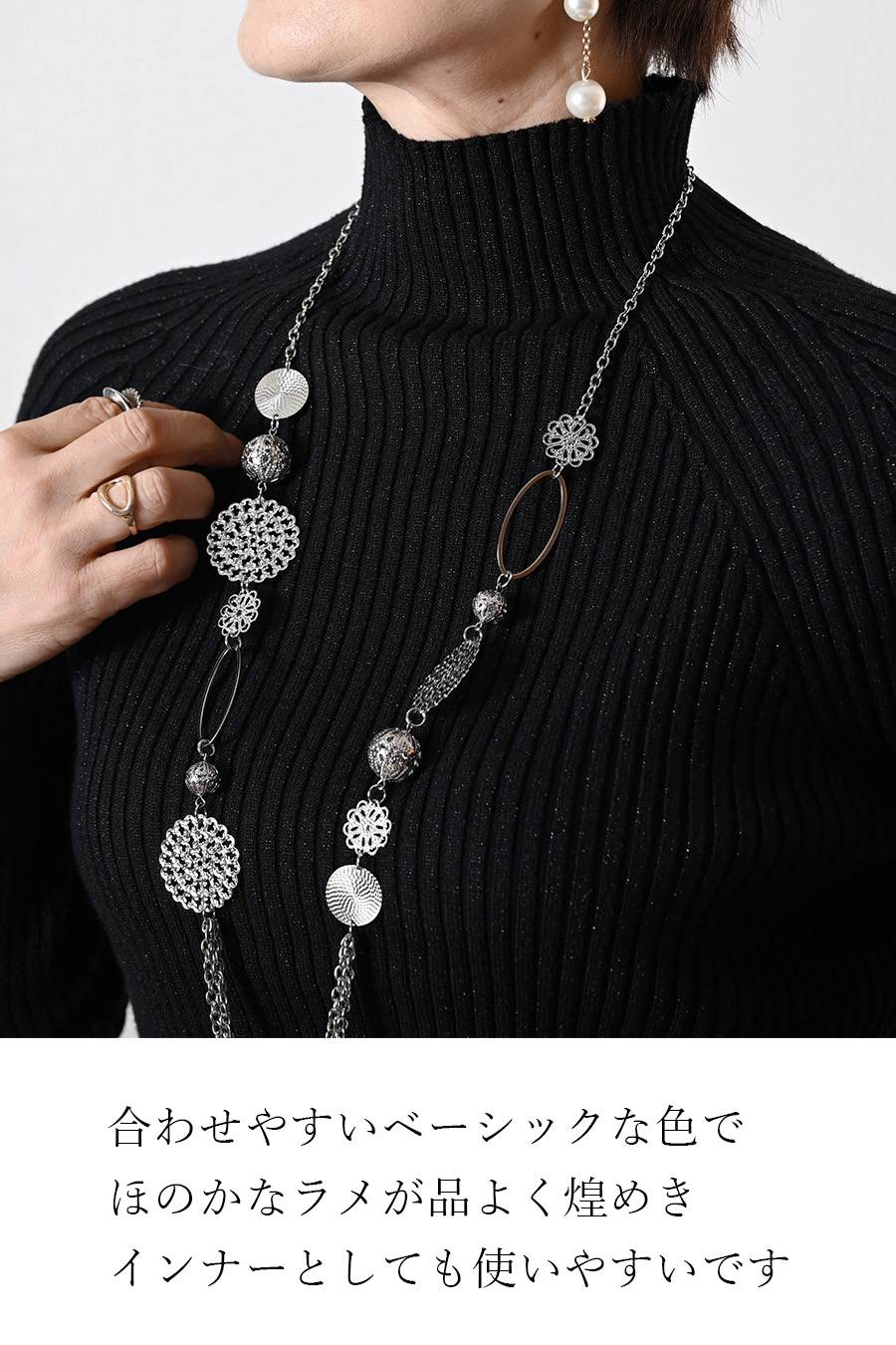 合わせやすいベーシックな色でほのかなラメが品よく煌めきインナーとしても使いやすいアイテム