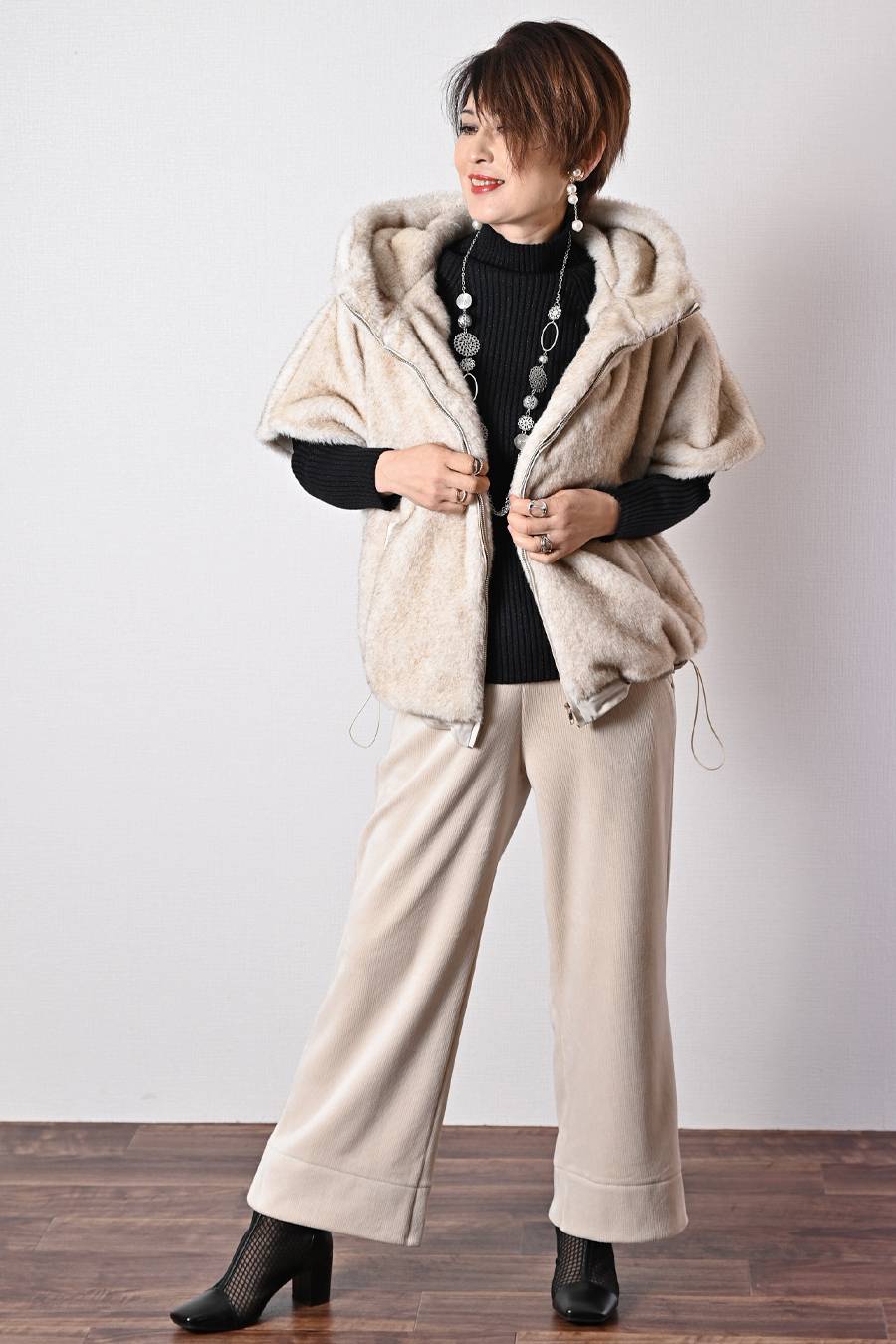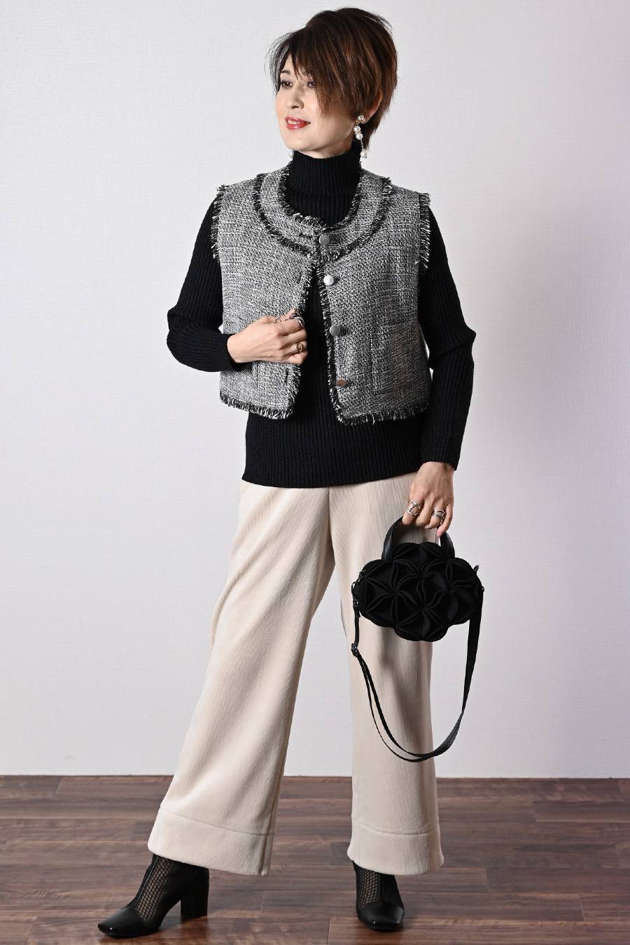 選べるボアベスト+ラメ&チュール タートルネックプルオーバー2点セットコーデ