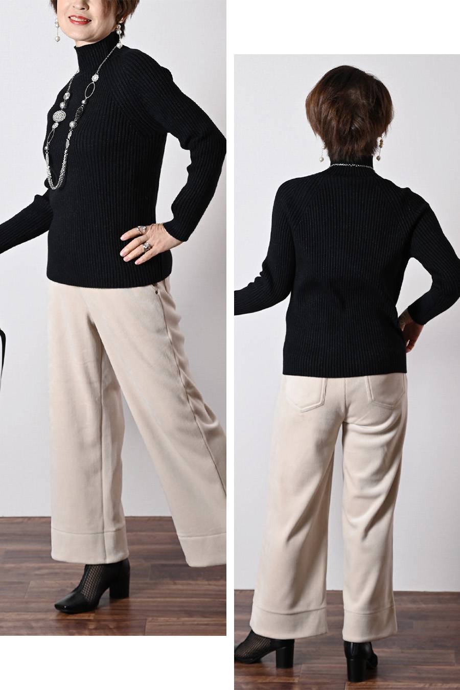 ニット×ポンチコンビプルオーバー+ストレッチコーデュロイパンツ2点セットコーデ