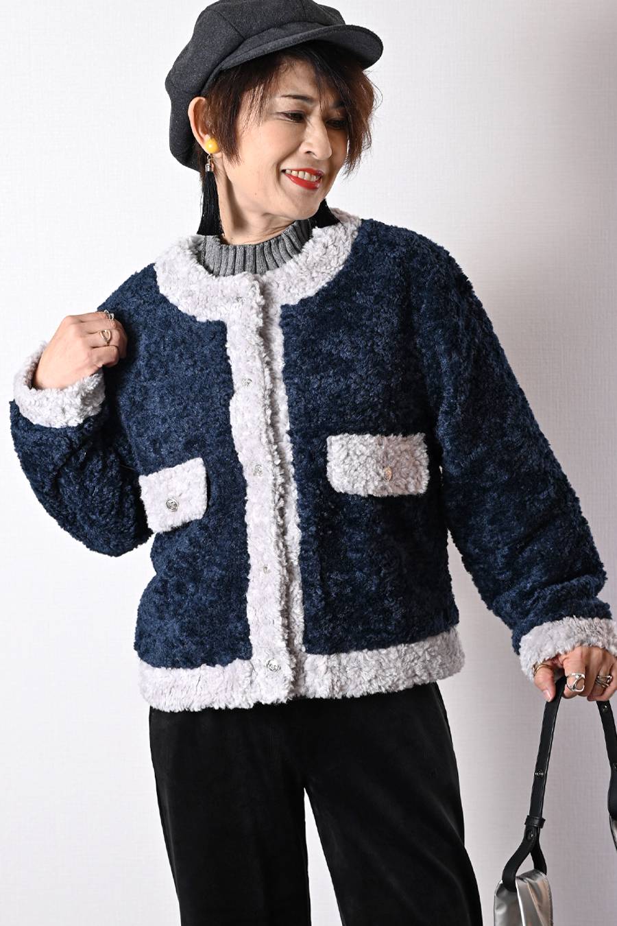 リュクスな雰囲気!バイカラーボアソフトジャケット