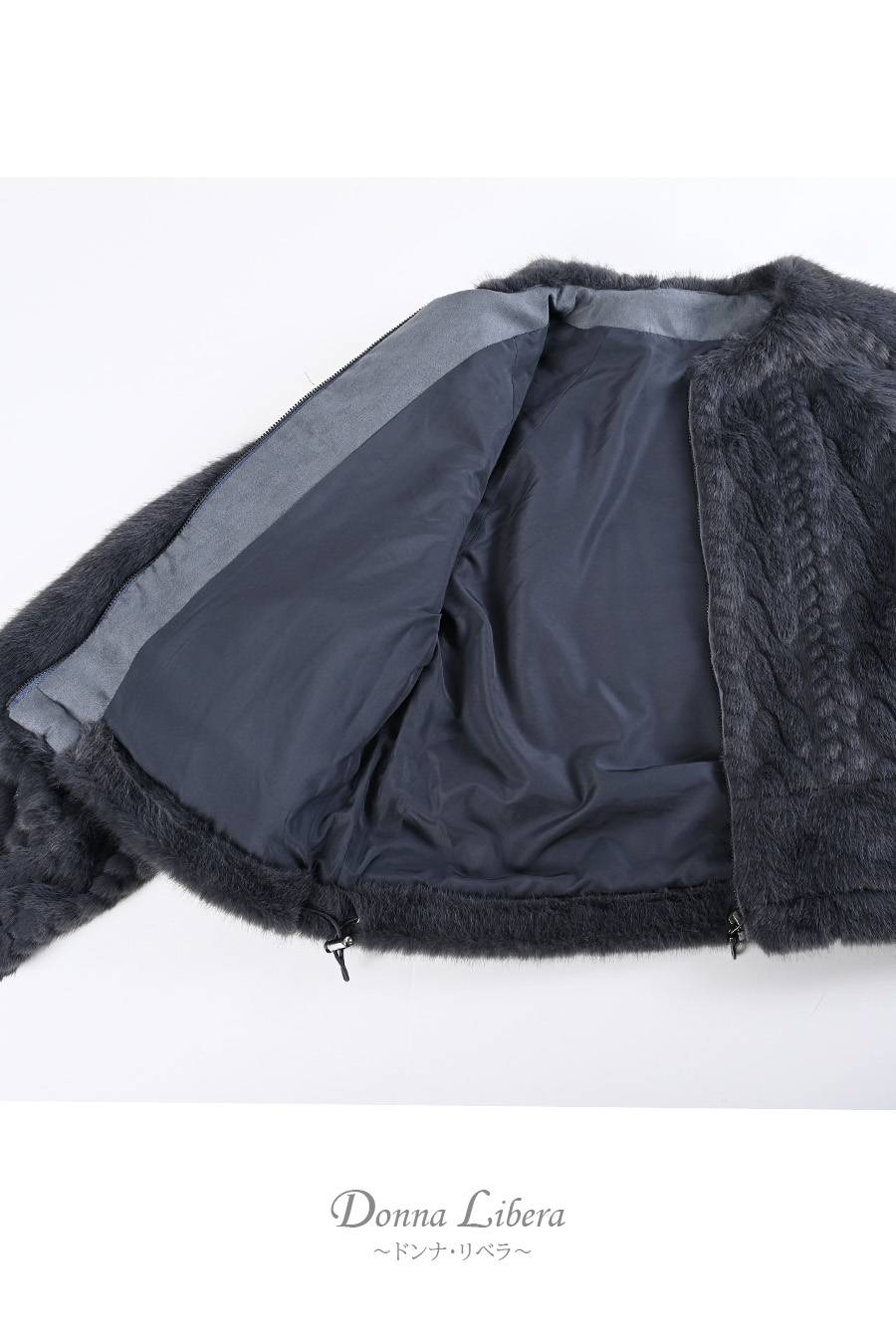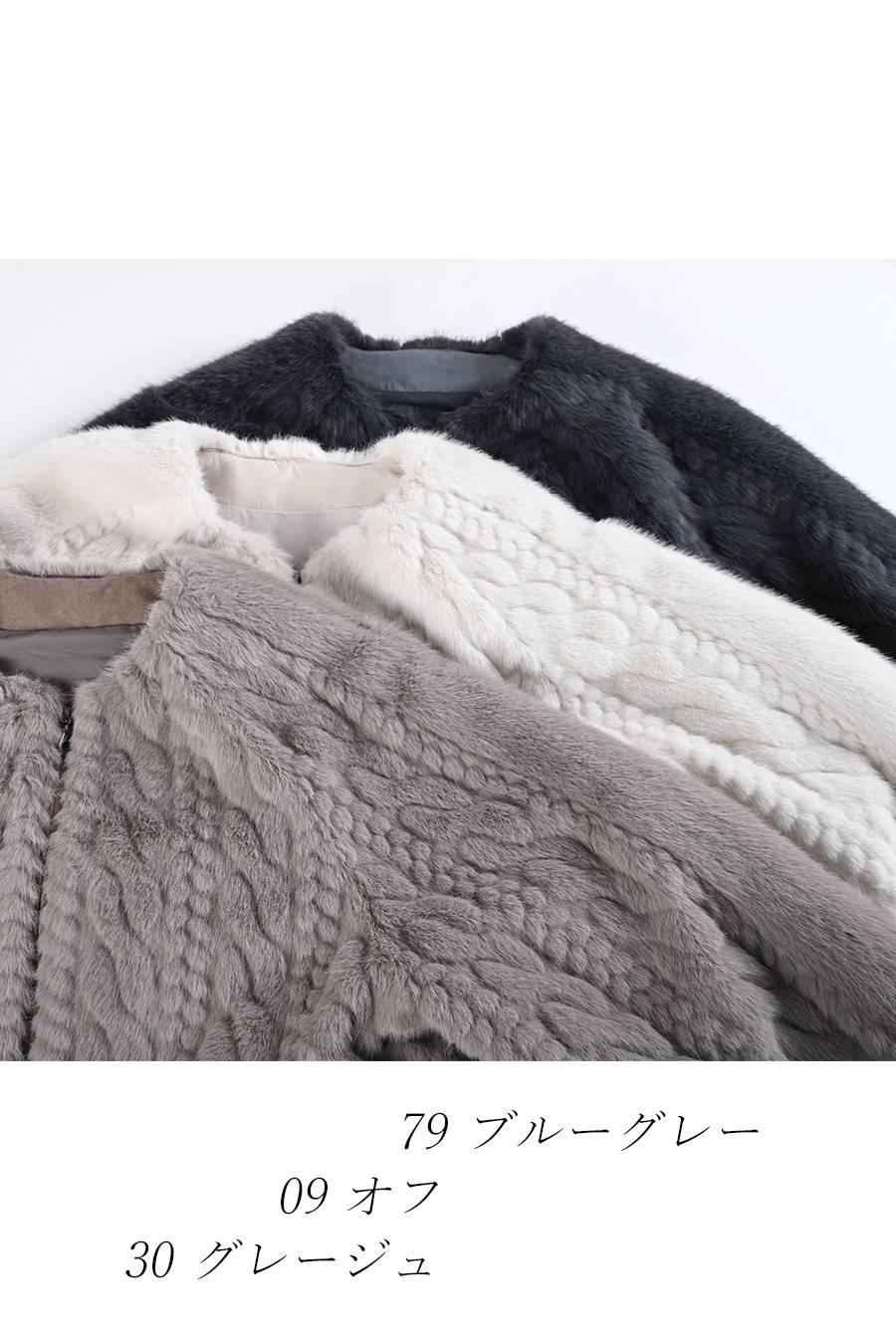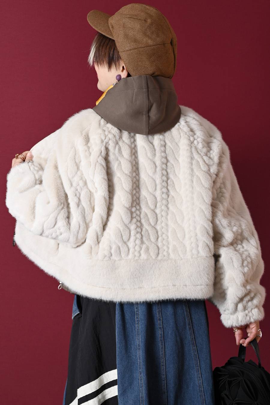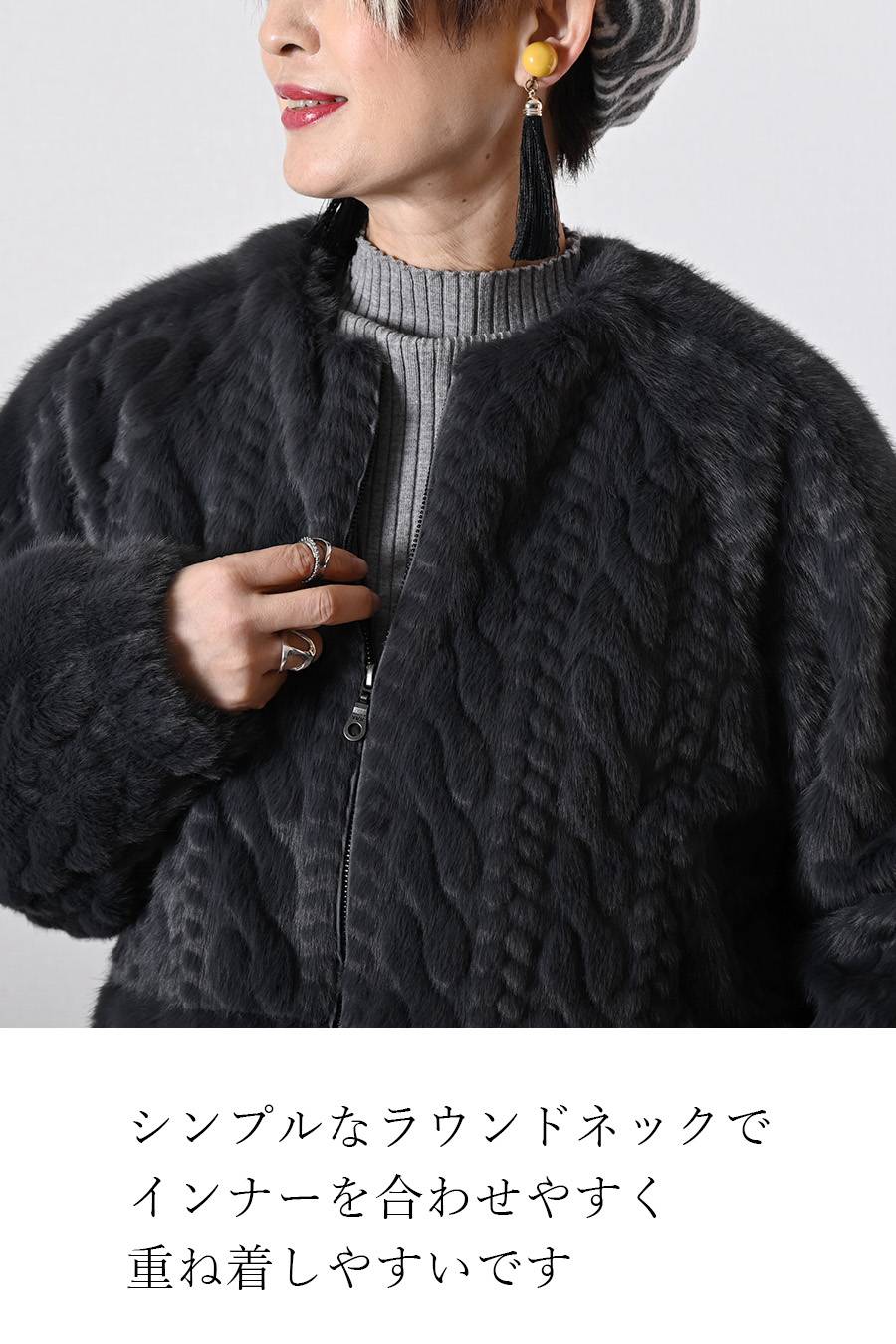 珍しいケーブル柄にシェアード(刈込)加工、陰影が出て一目で高品質だとわかるフワフワジャケット