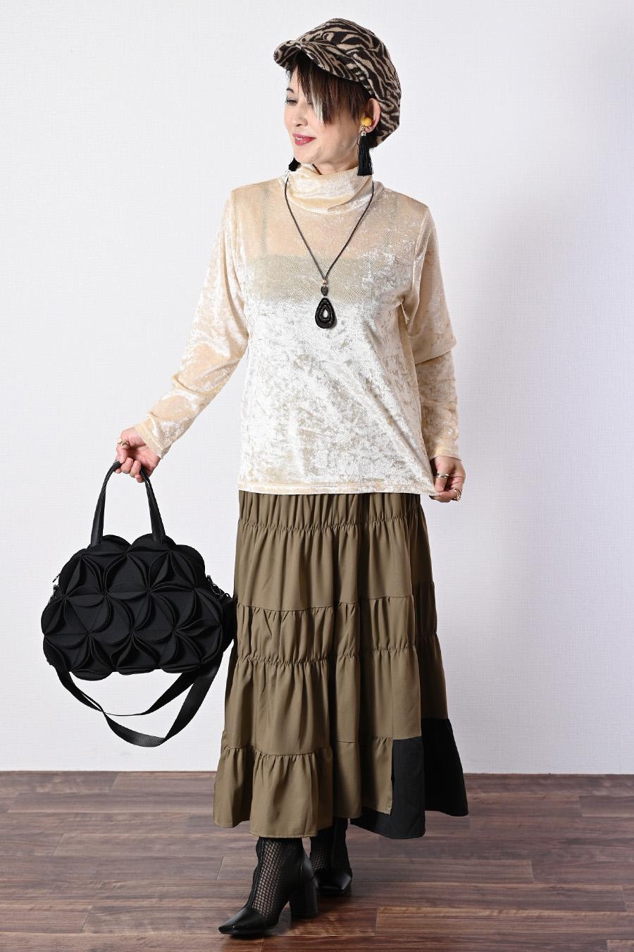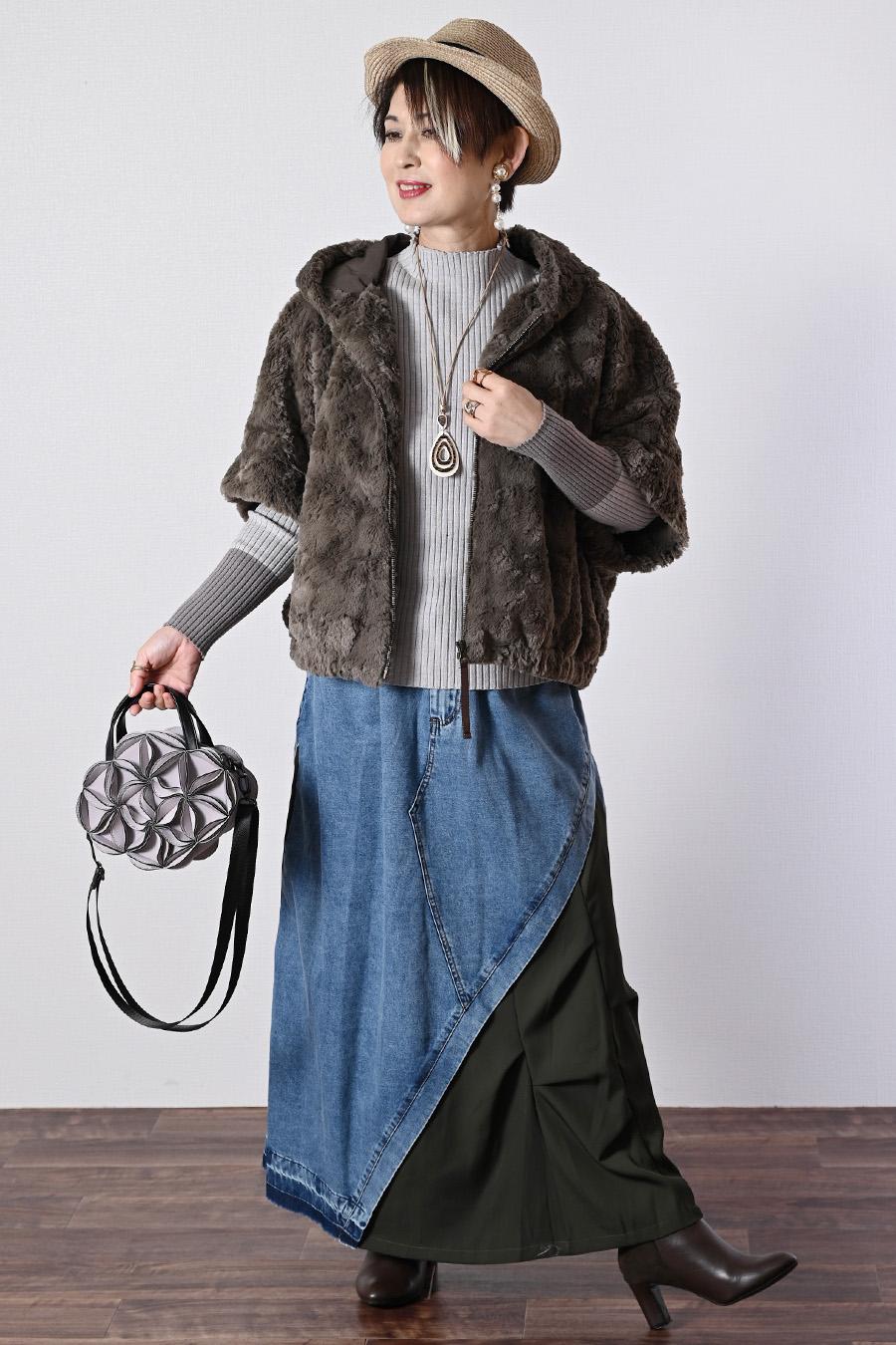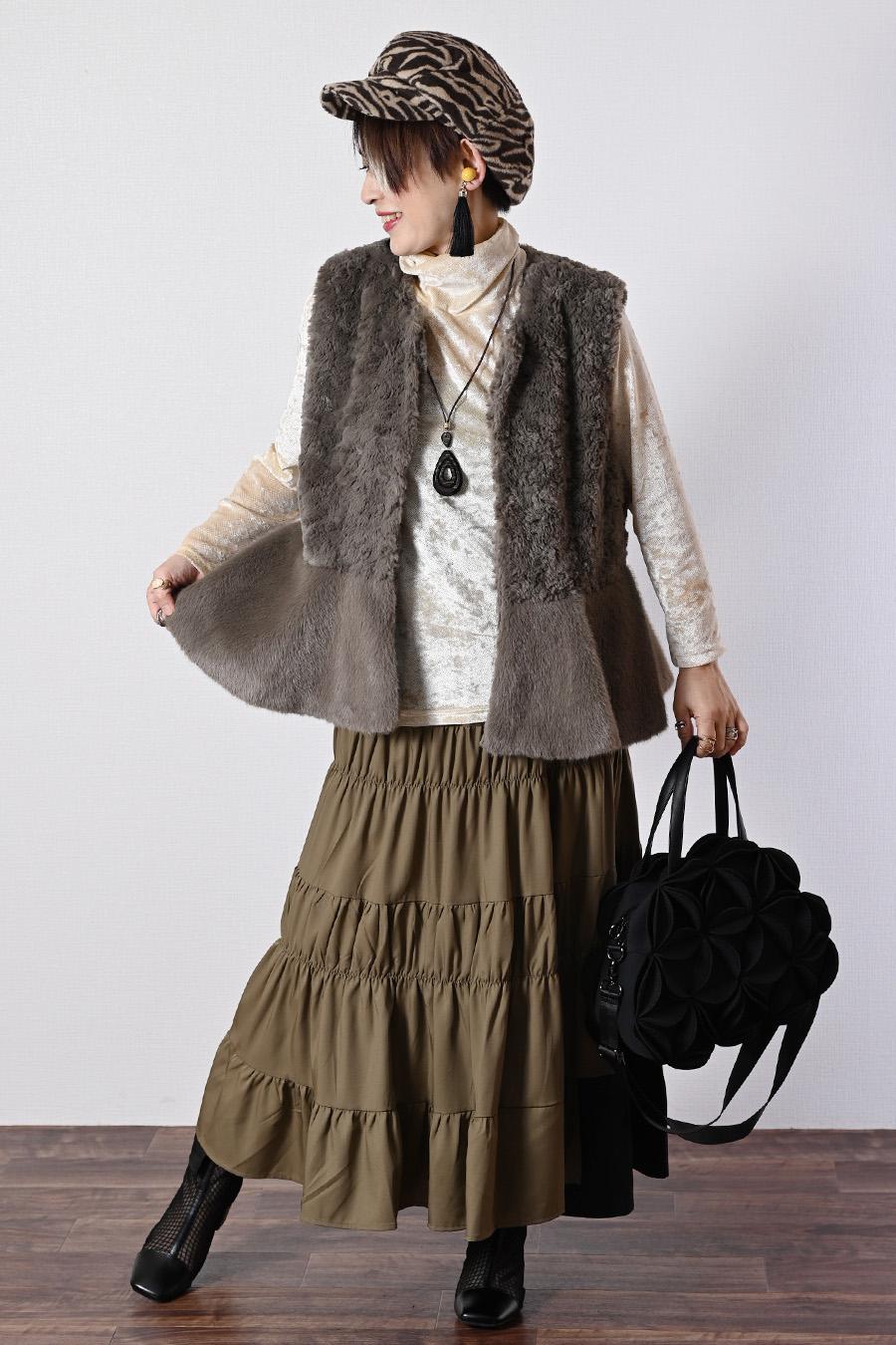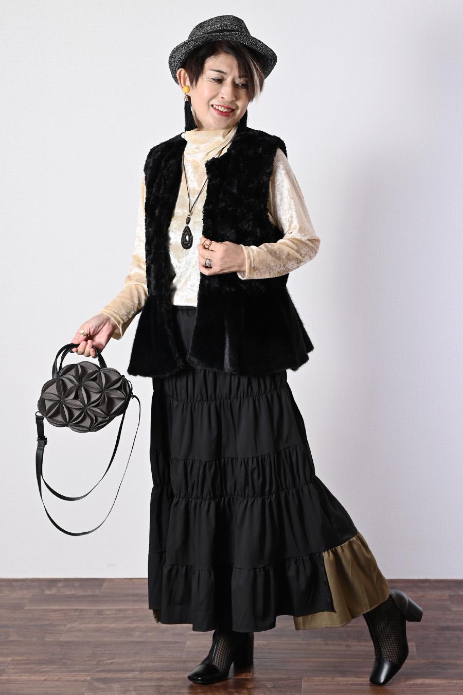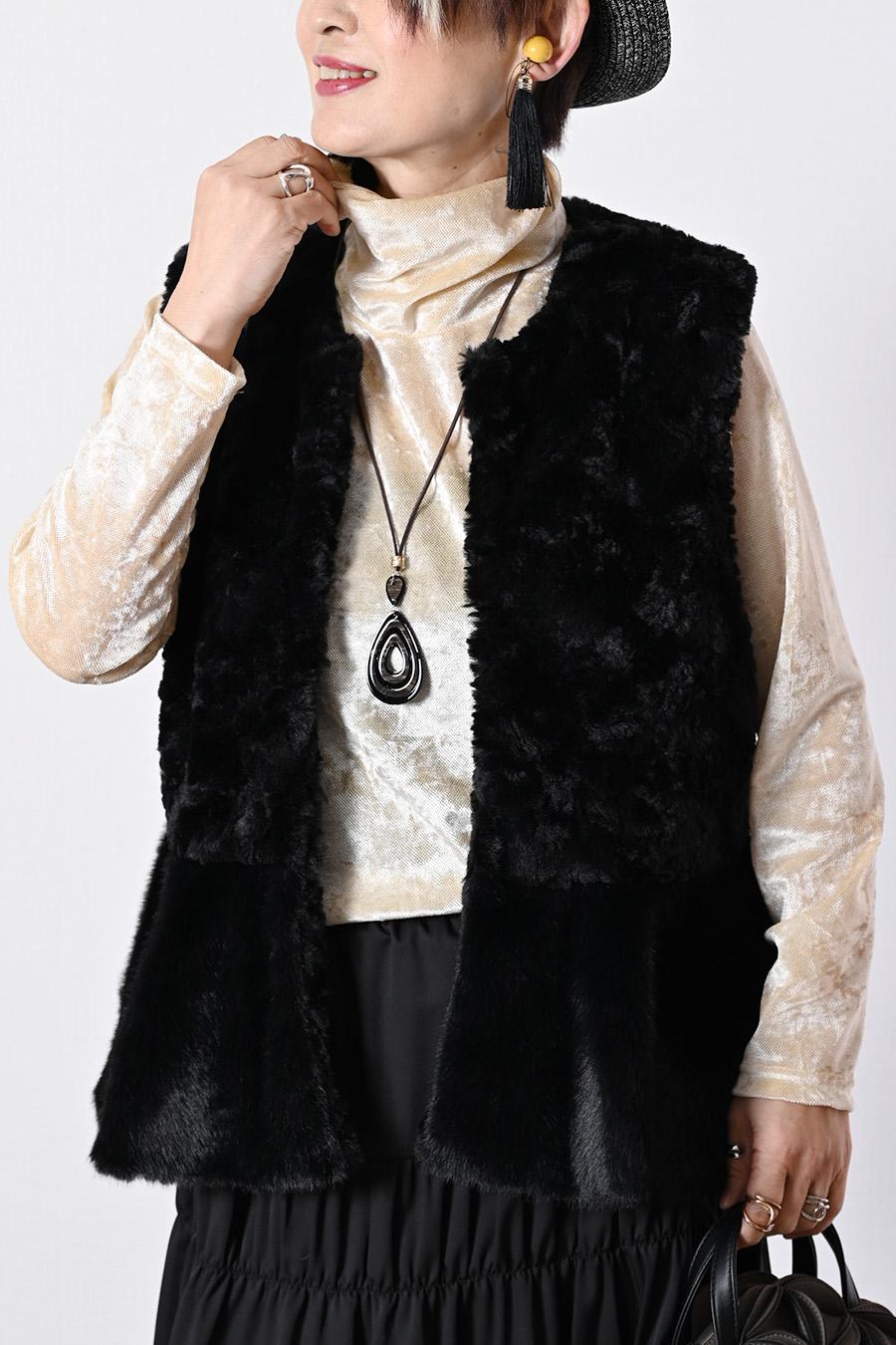 選べるボアベスト+ラメ&チュール タートルネックプルオーバー2点セットコーデ