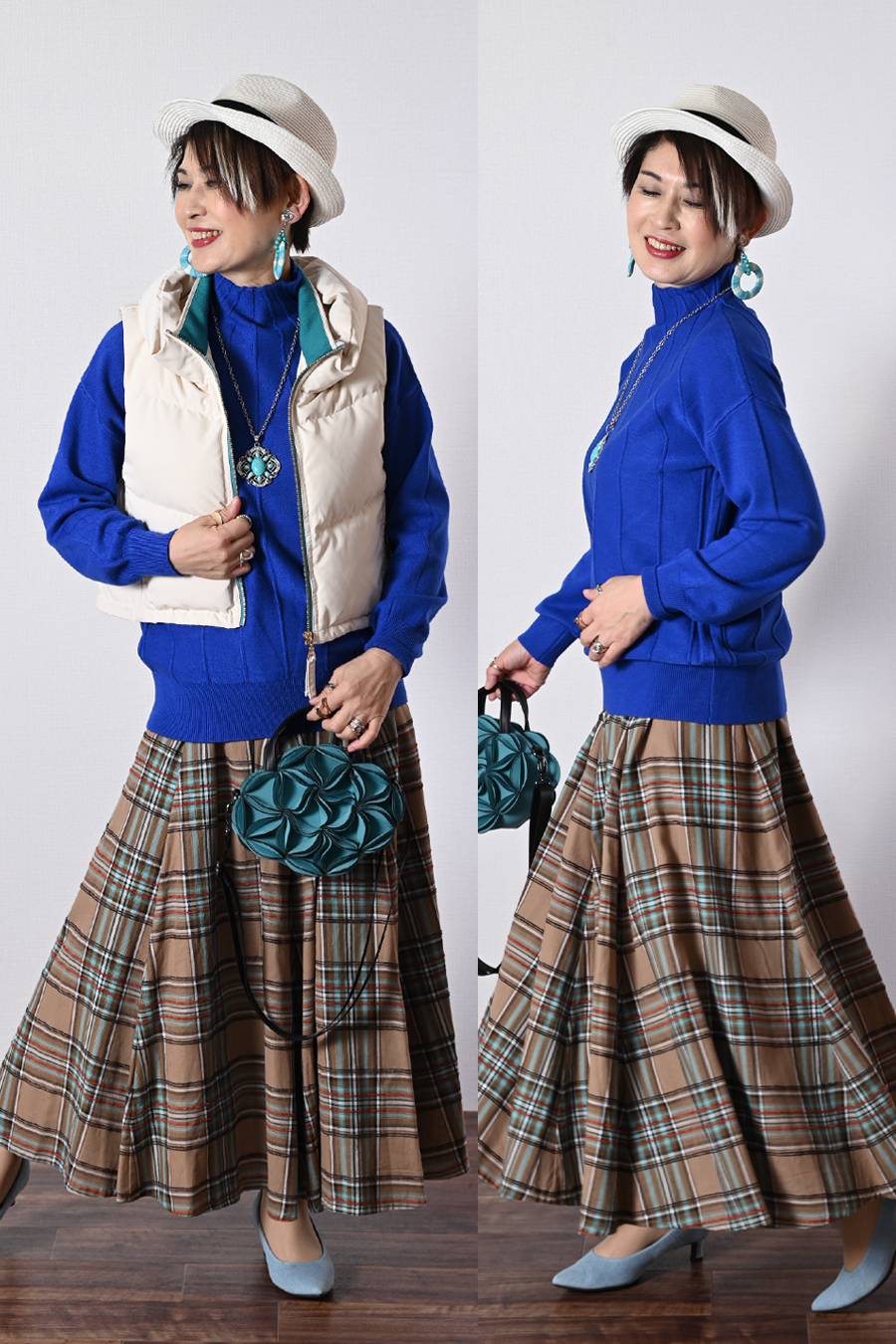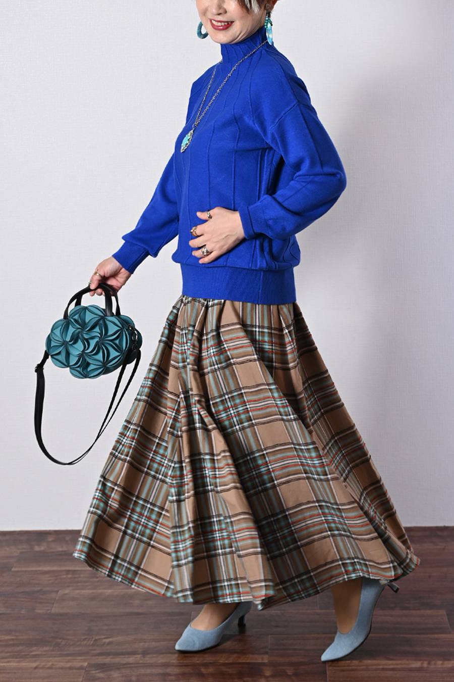 大人の為の上質パーカー+バイヤスチェック×無地 フレアスカート2点セットコーデ