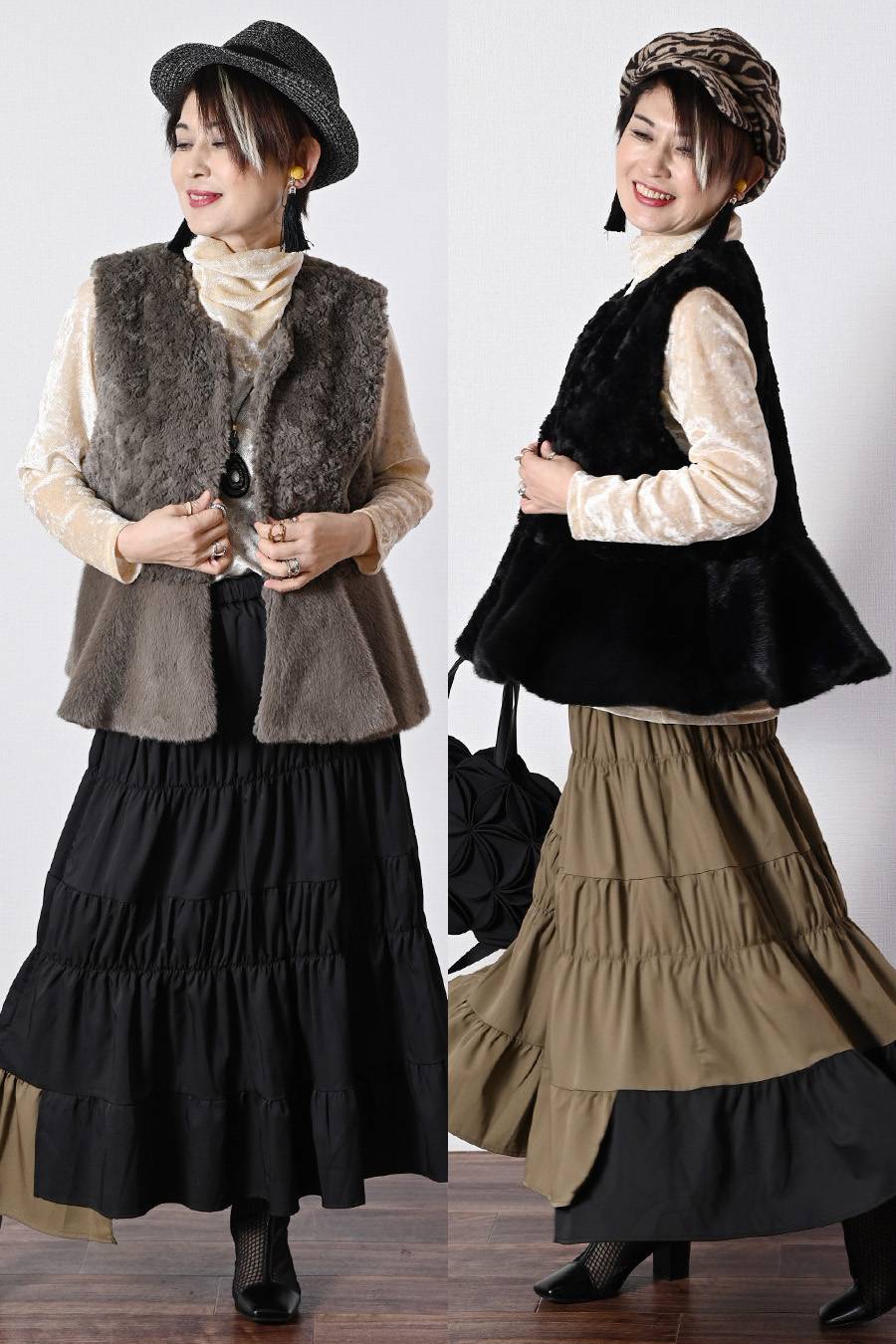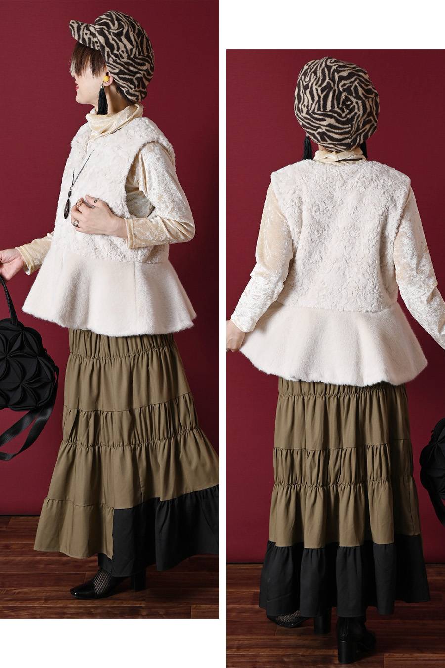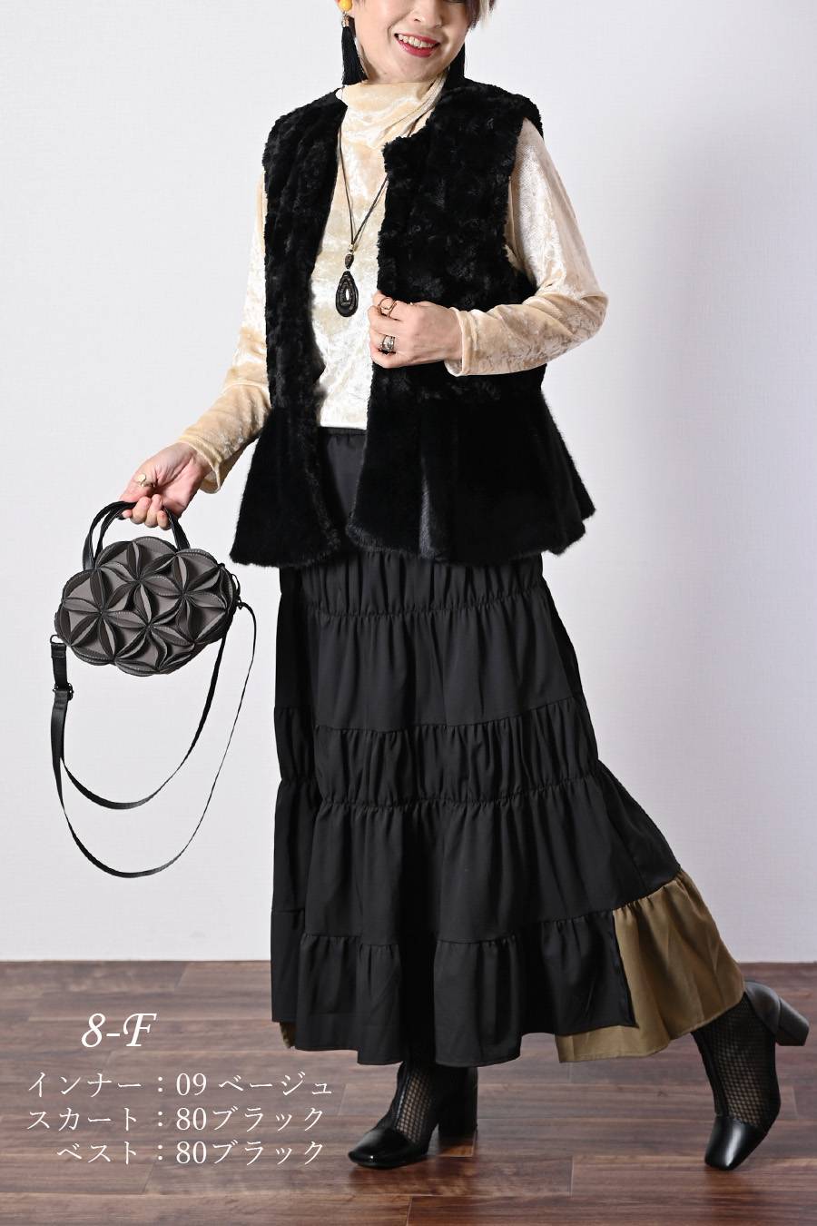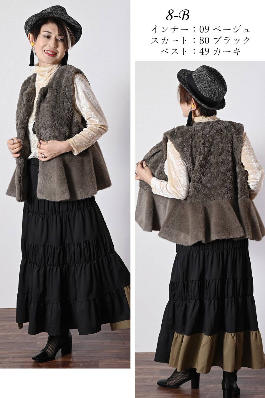 選べるボアベスト+ラメ&チュール タートルネックプルオーバー2点セットコーデ