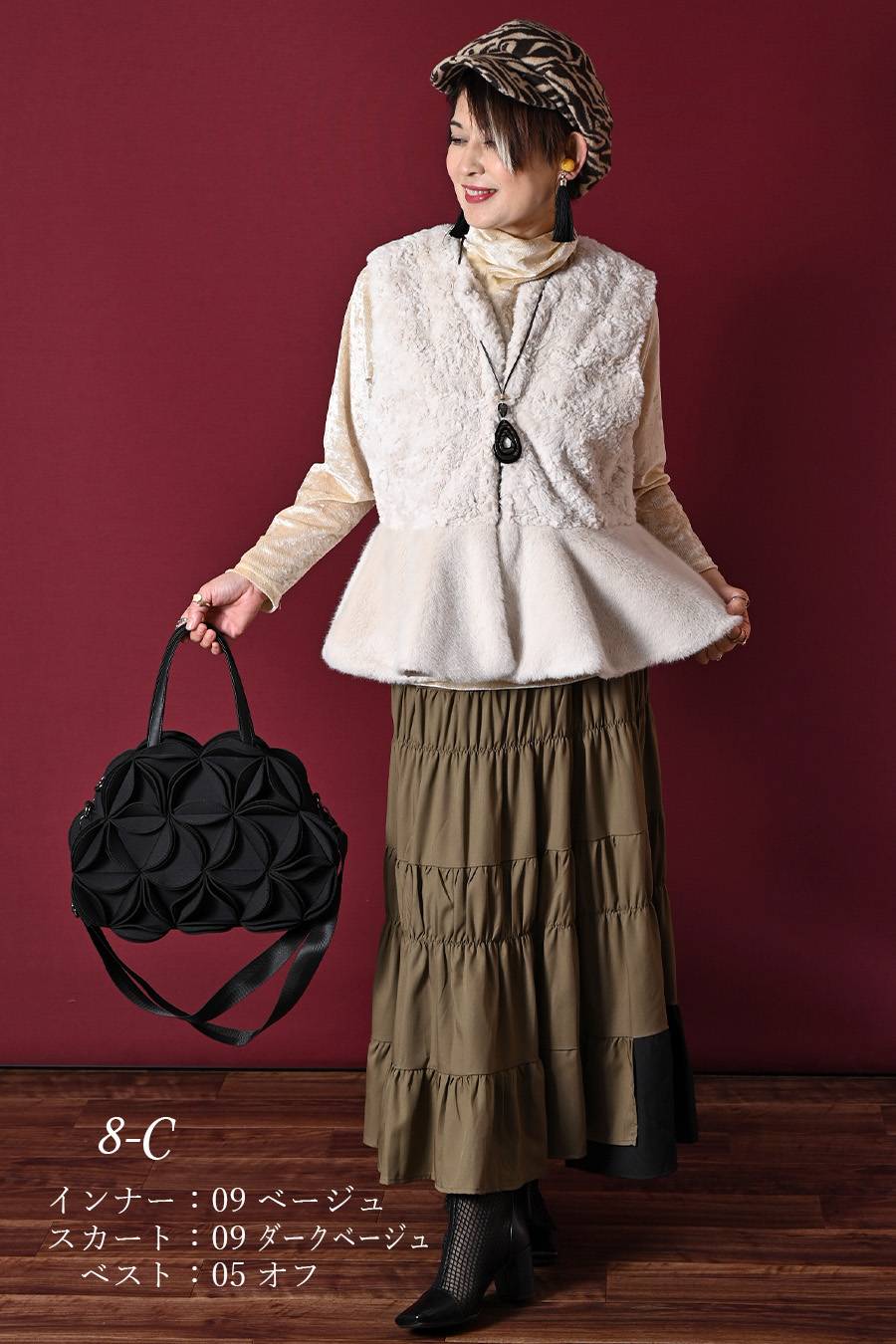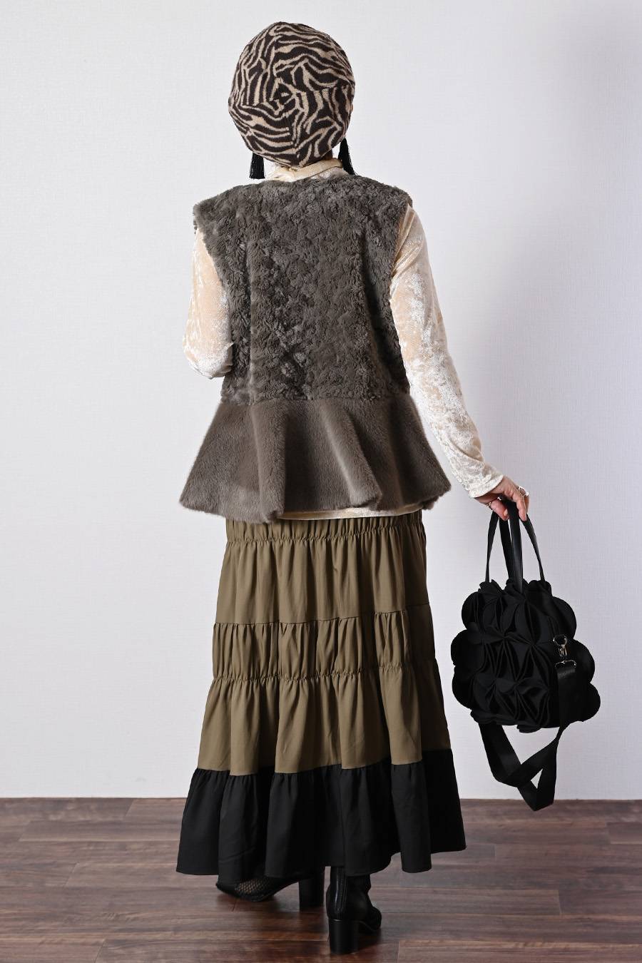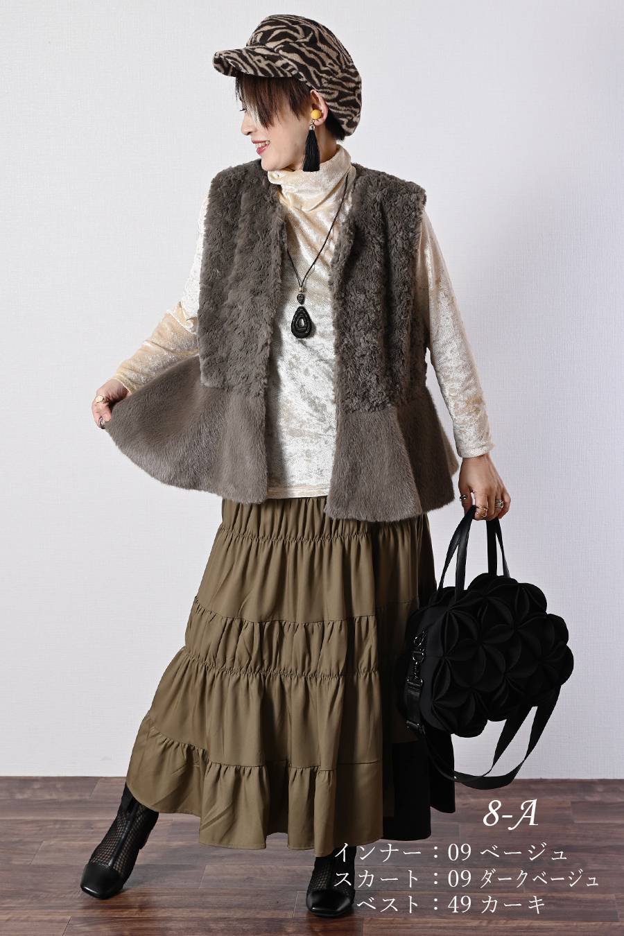 選べるボアベスト+ラメ&チュール タートルネックプルオーバー2点セットコーデ