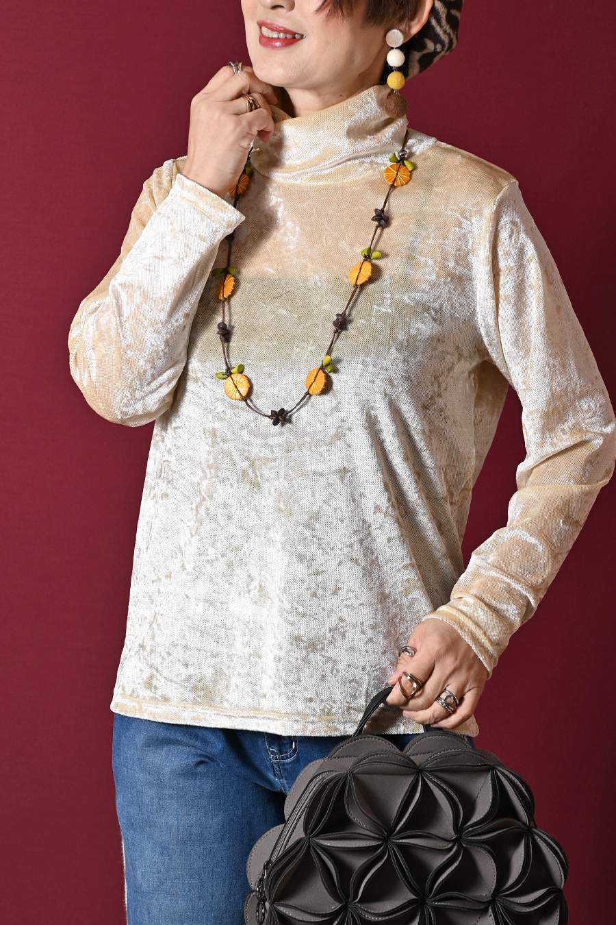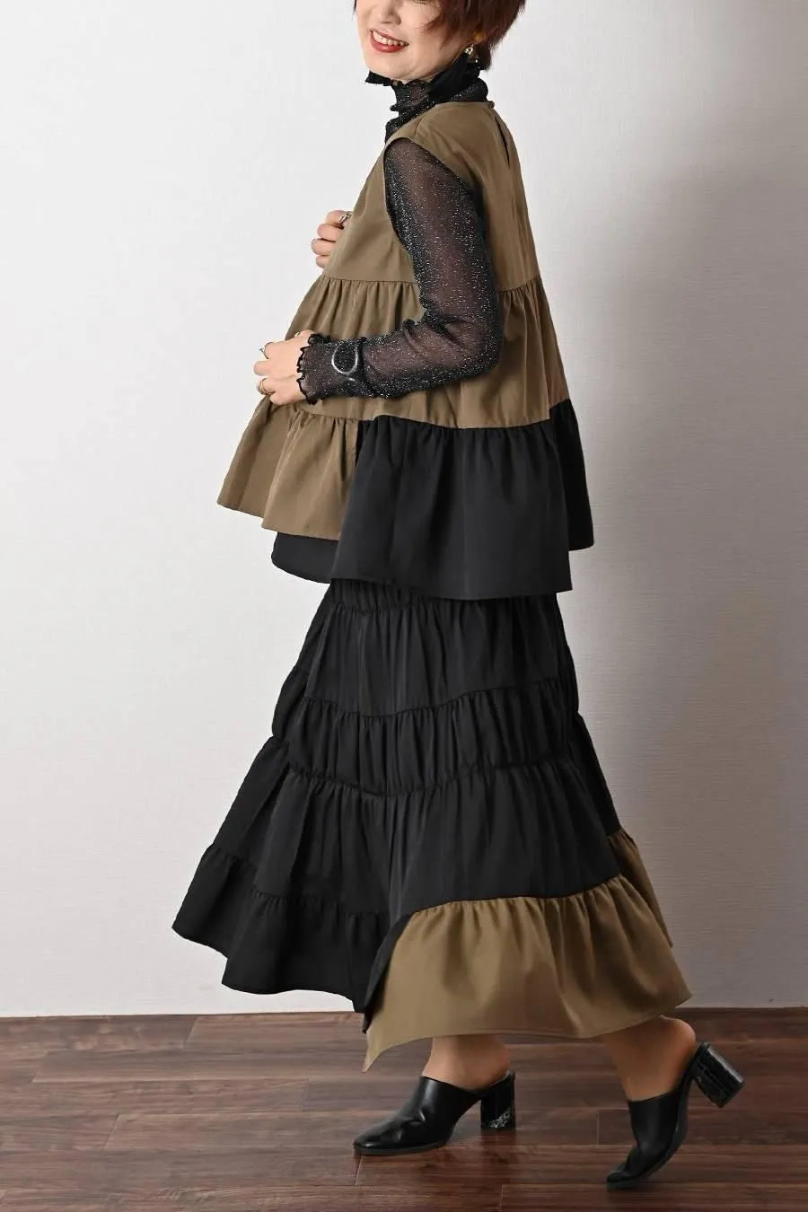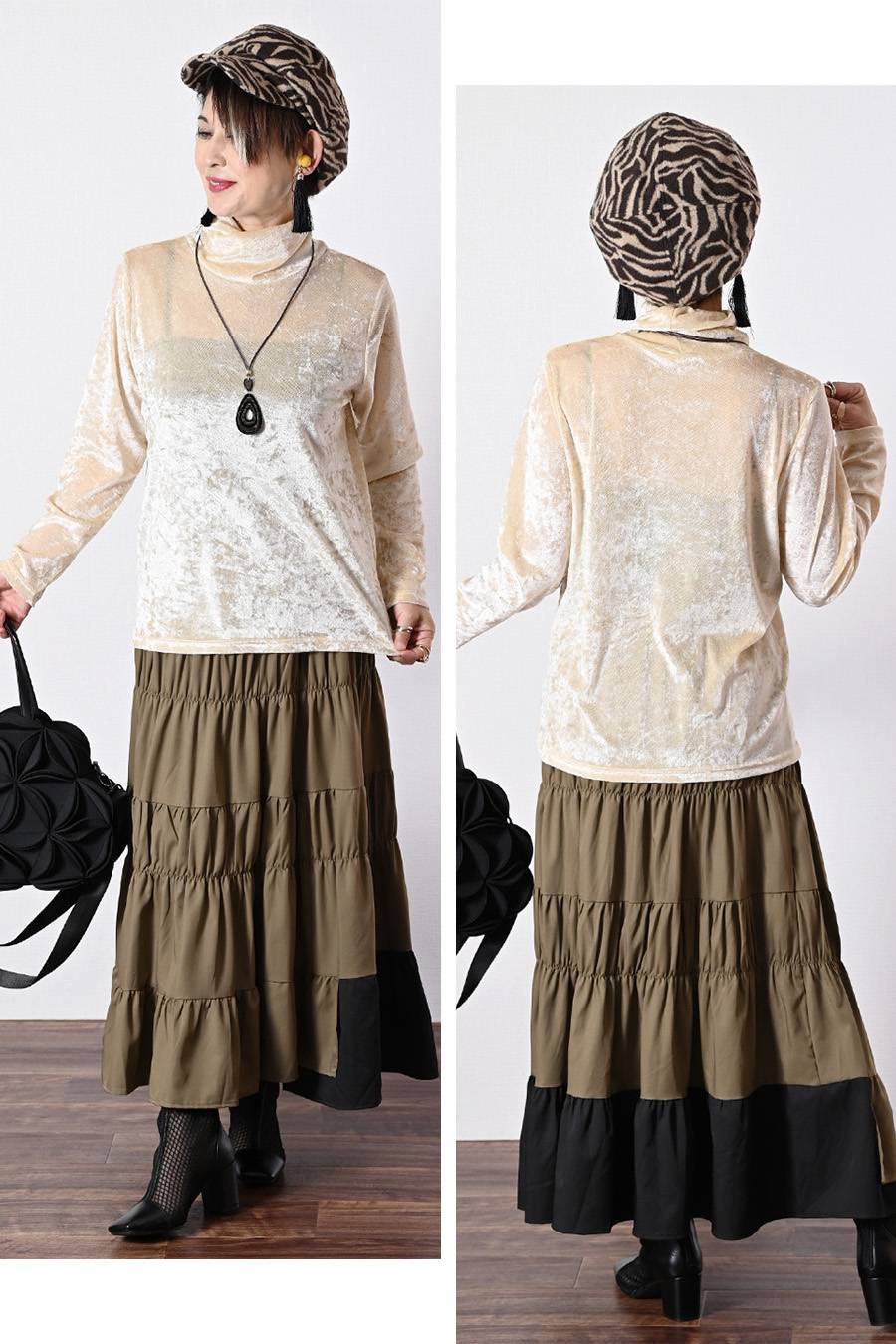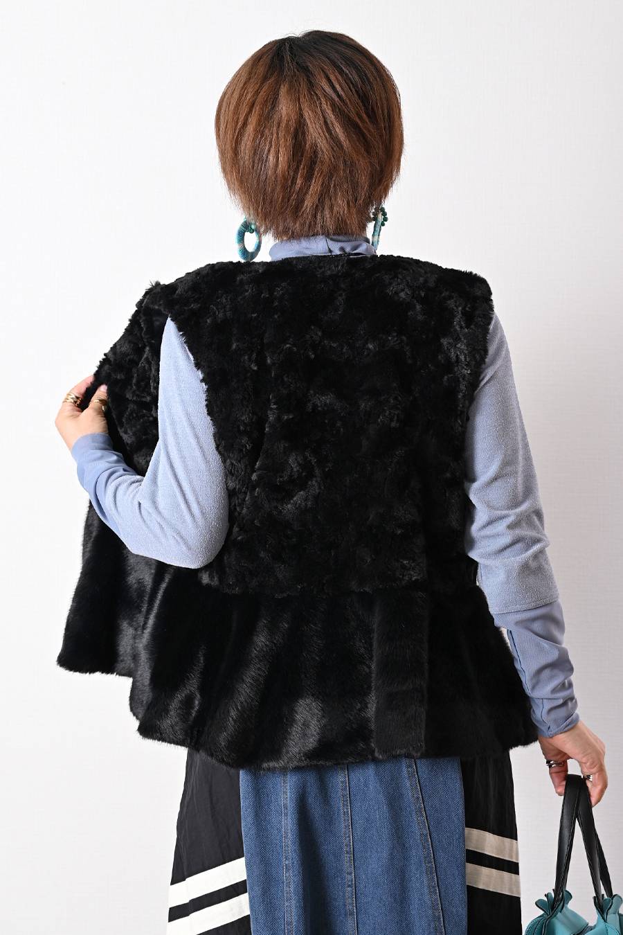 選べるボアベスト+ラメ&チュール タートルネックプルオーバー2点セットコーデ