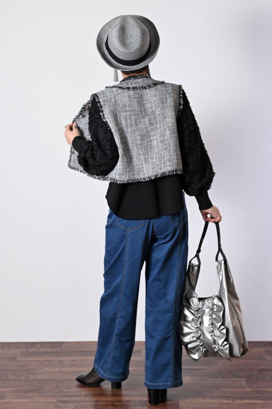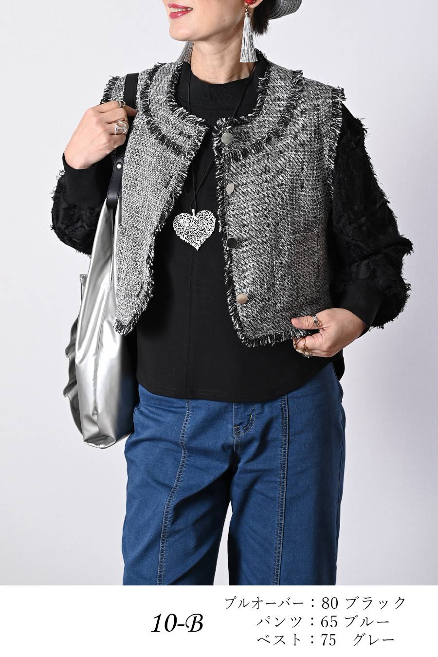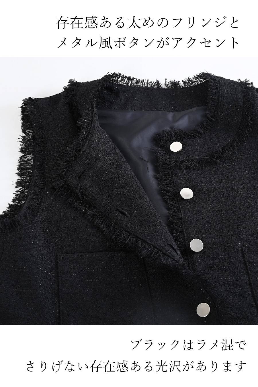 選べるボアベスト+ラメ&チュール タートルネックプルオーバー2点セットコーデ