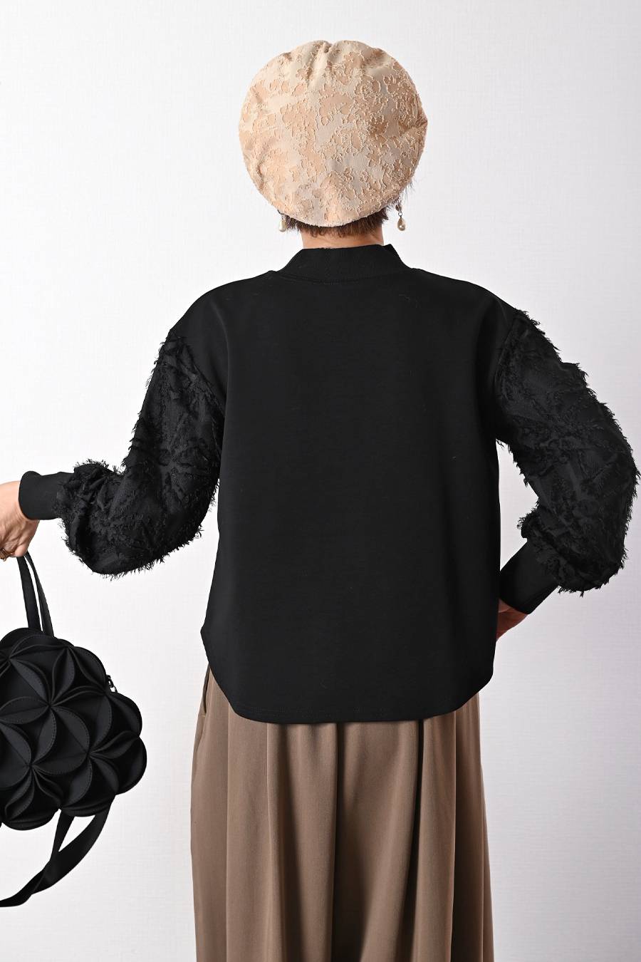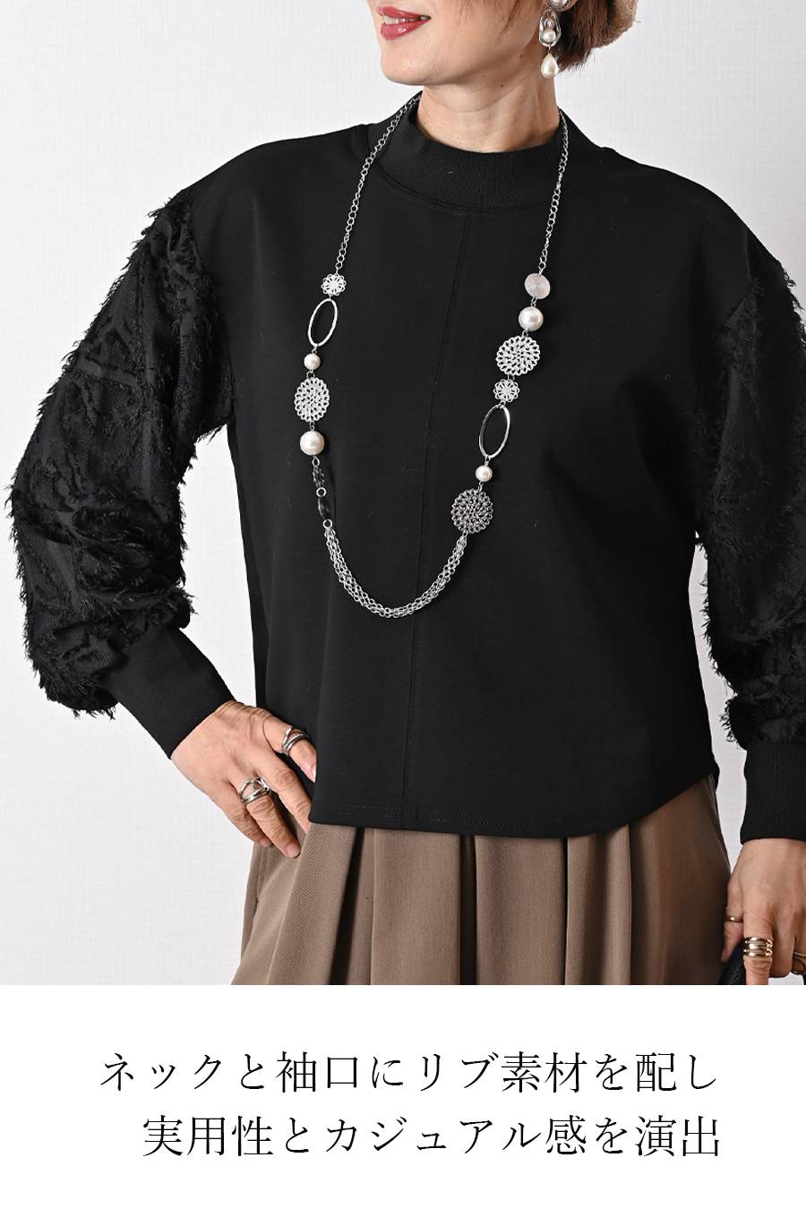 ポンチ&カットジャガードプルオーバー+カットジャガードフレアスカート2点セットコーデ