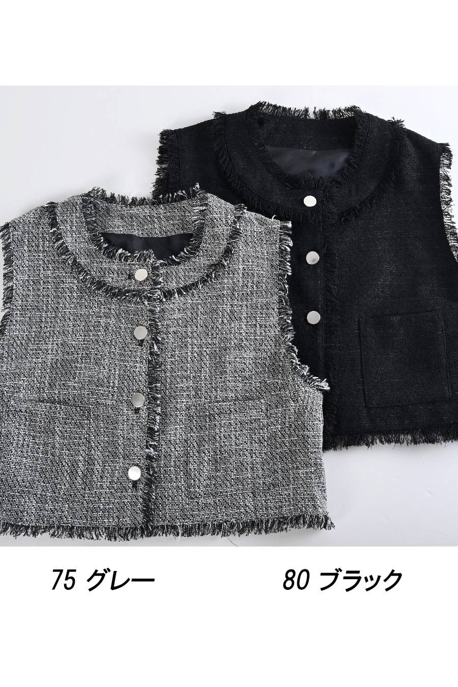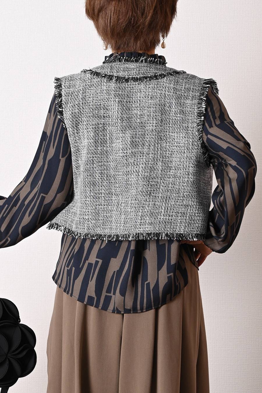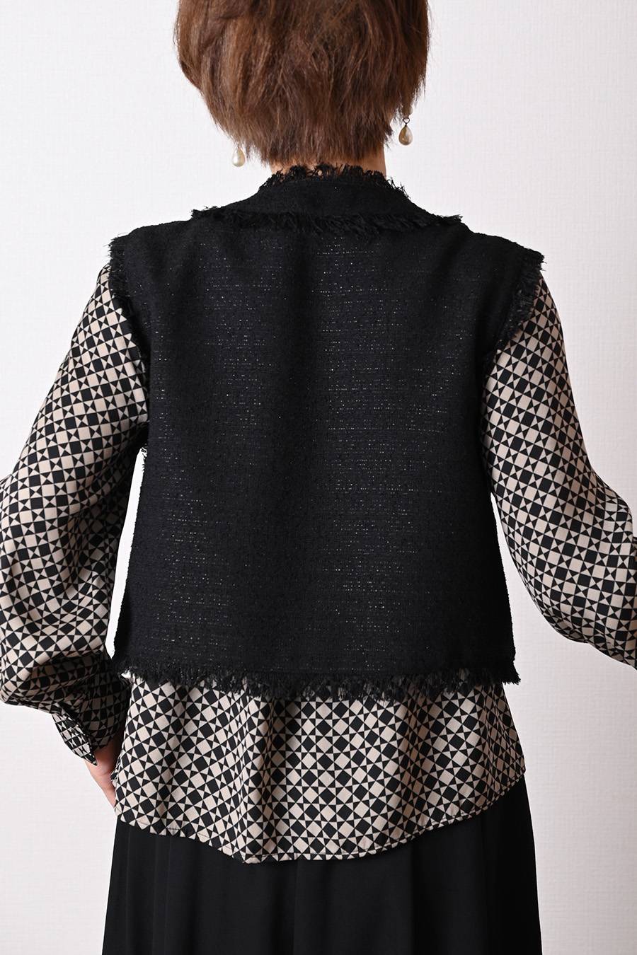 ファンシーヤーンVネックベスト+選べる2種類のインナーカットソー2点セットコーデ