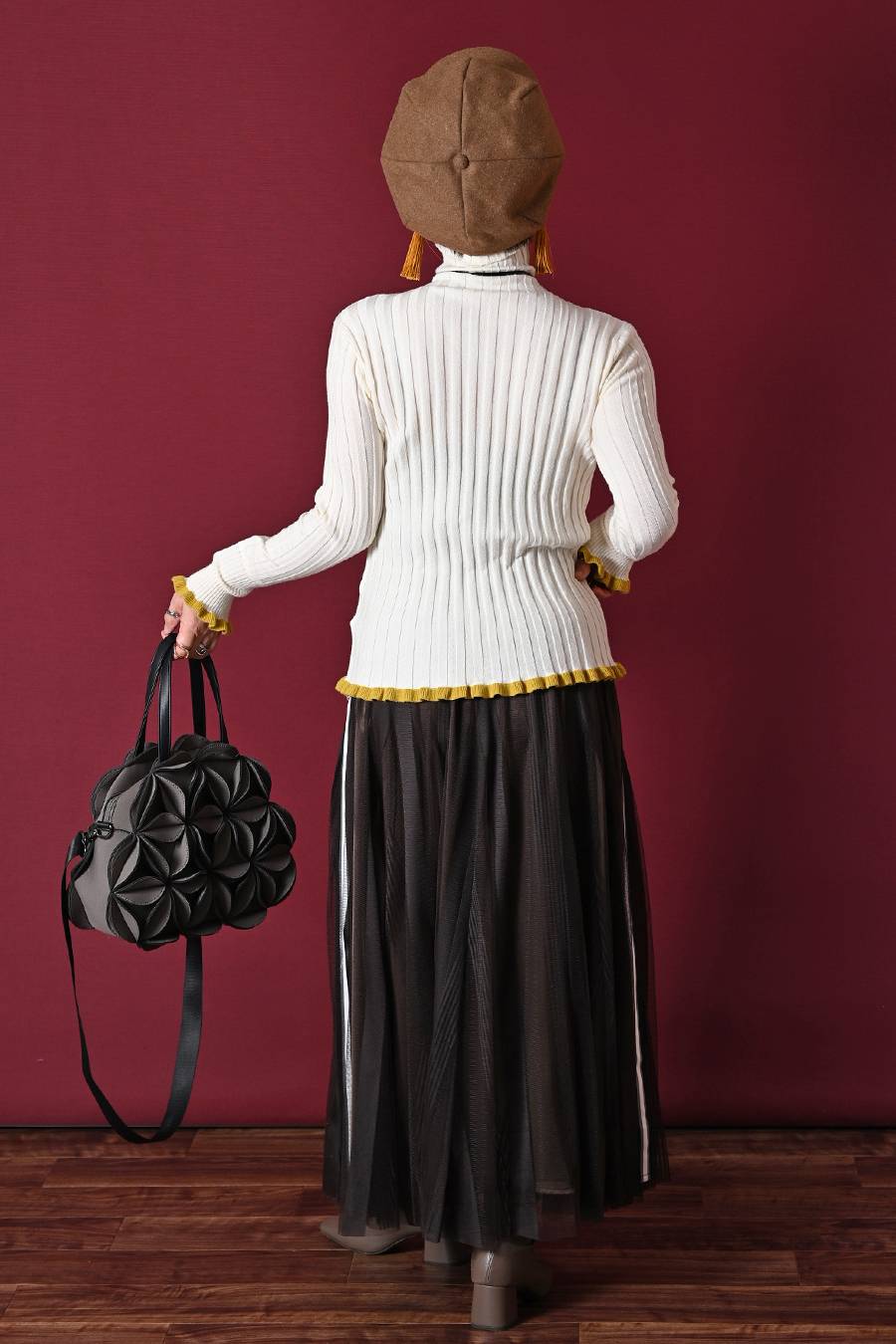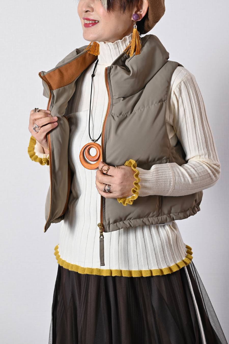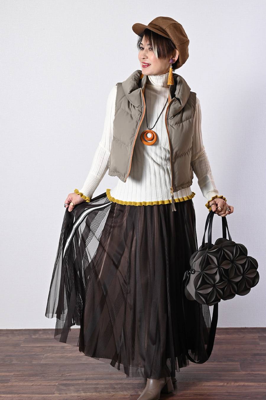選べるボアベスト+ラメ&チュール タートルネックプルオーバー2点セットコーデ