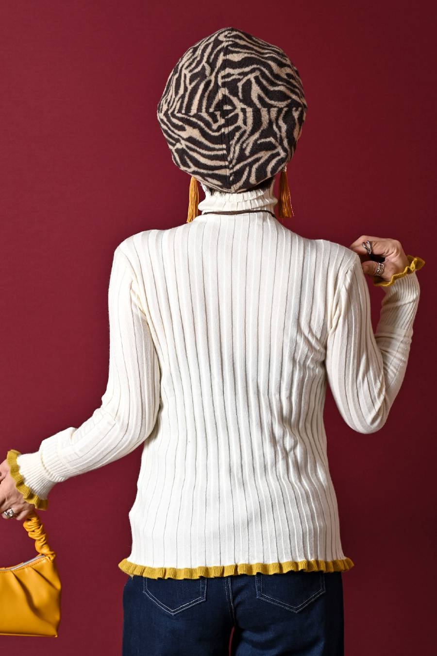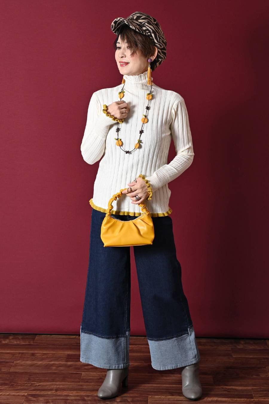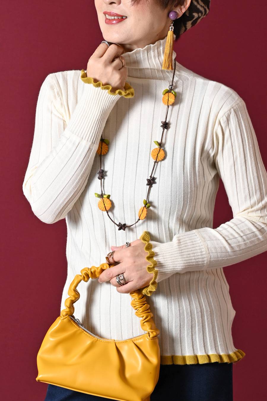 選べるボアベスト+ラメ&チュール タートルネックプルオーバー2点セットコーデ