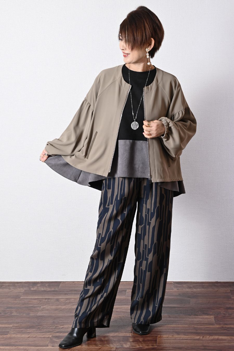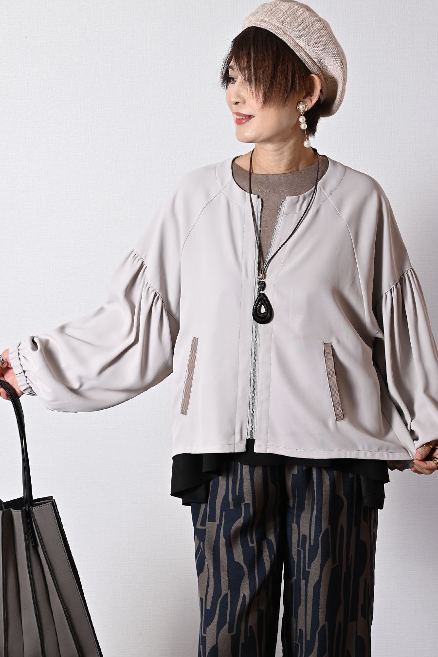 ラグランスリーブ&Aラインでゆるく着られるサラリジャケット