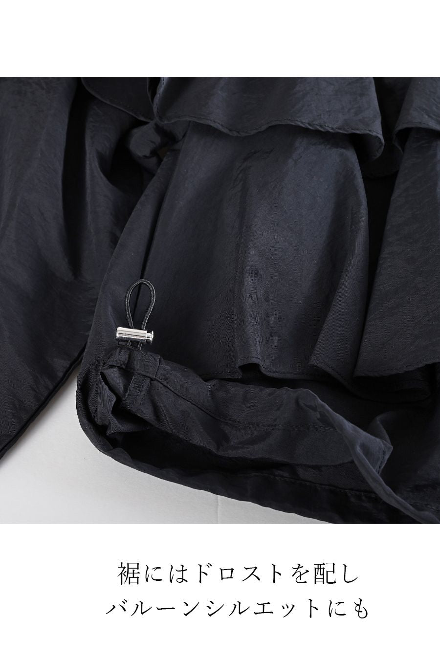 裾にはドロストを配しバルーンシルエットにも