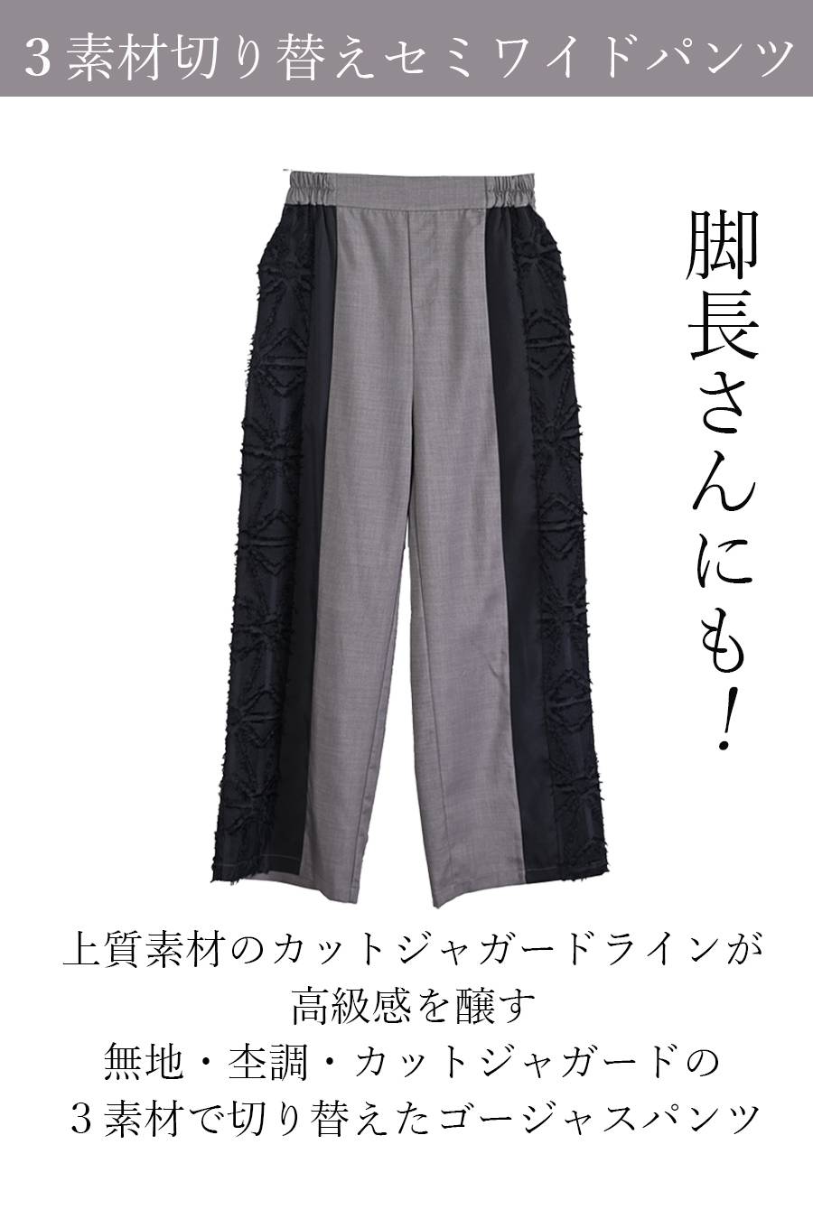 脚長さんにも!3素材切り替えセミワイドパンツ