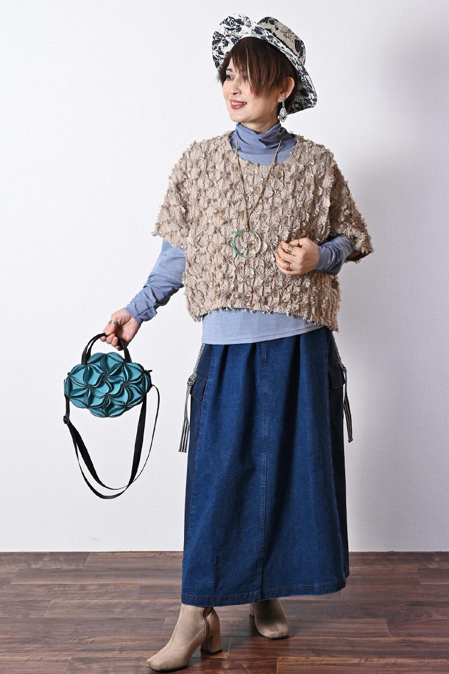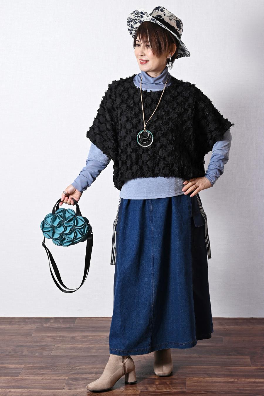 ポンチ&カットジャガードプルオーバー+カットジャガードフレアスカート2点セットコーデ