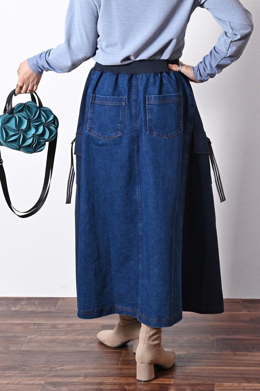 ウエストゆったり最大100㎝!サイドポケットデニムスカート