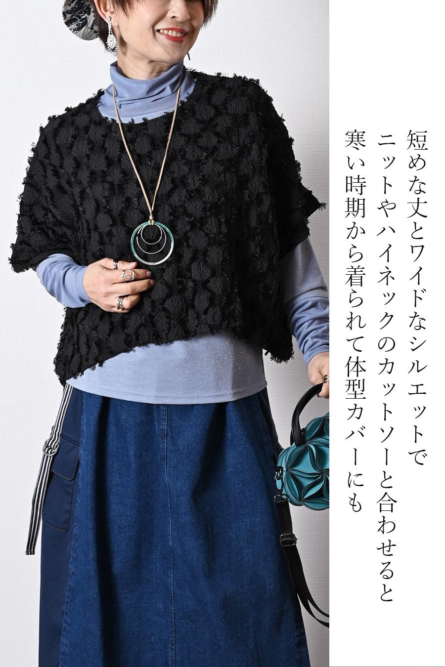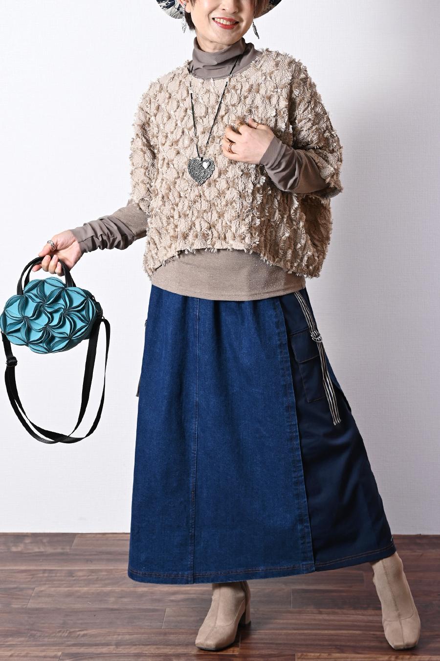 ポンチ&カットジャガードプルオーバー+カットジャガードフレアスカート2点セットコーデ