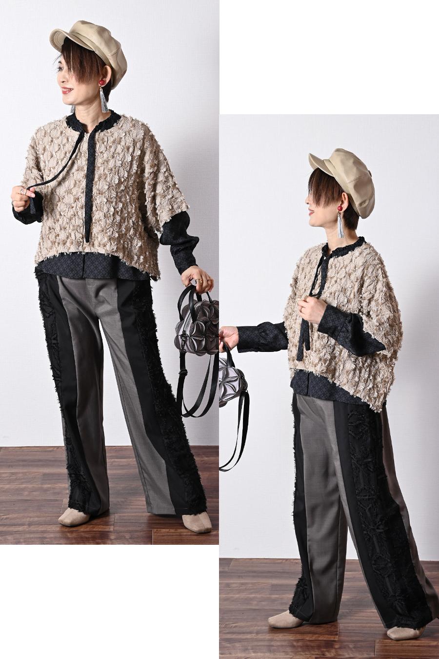 ポンチ切り替えプルオーバー+サイドプリーツワイドパンツ2点セットコーデ【2月中旬以降発送予定】