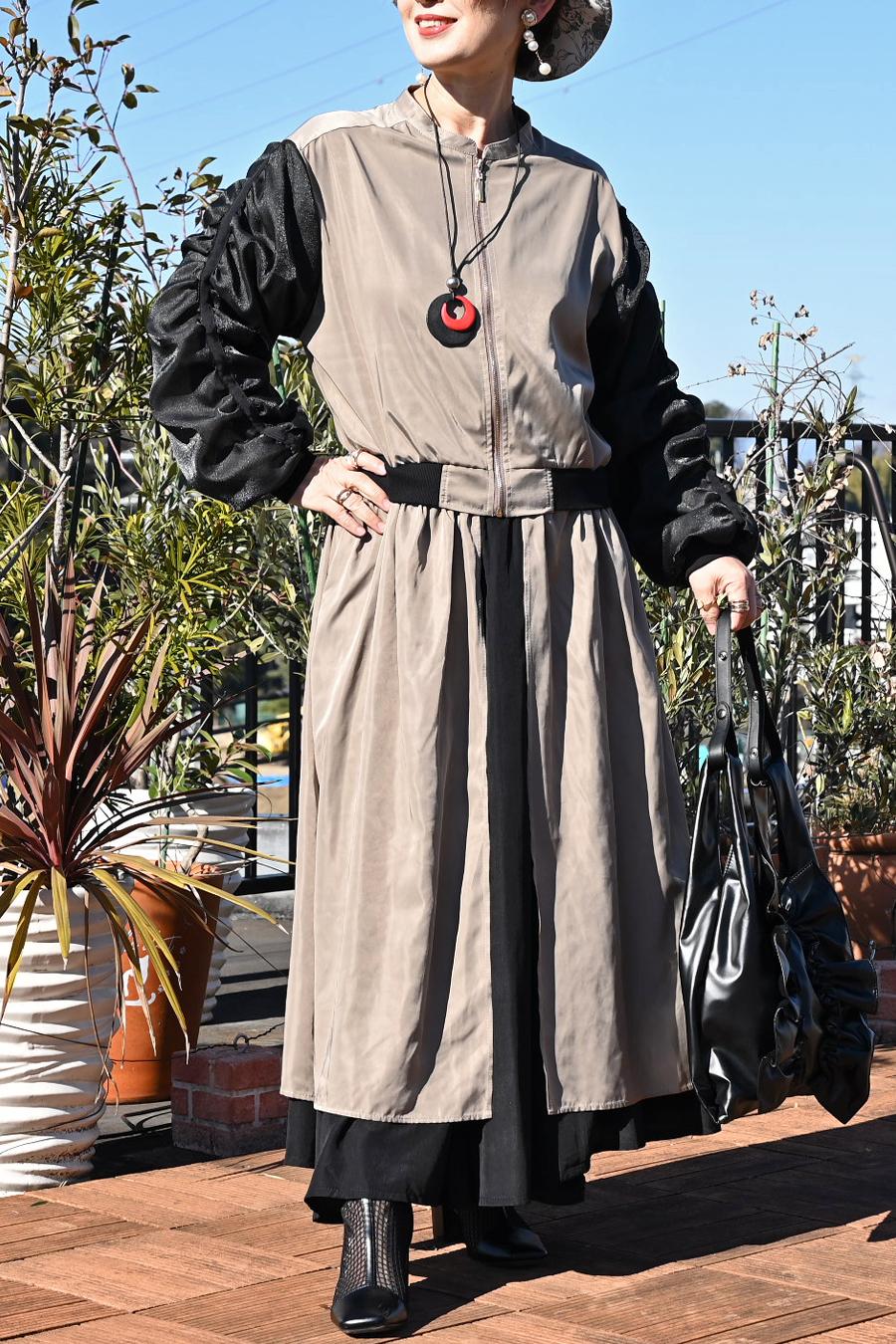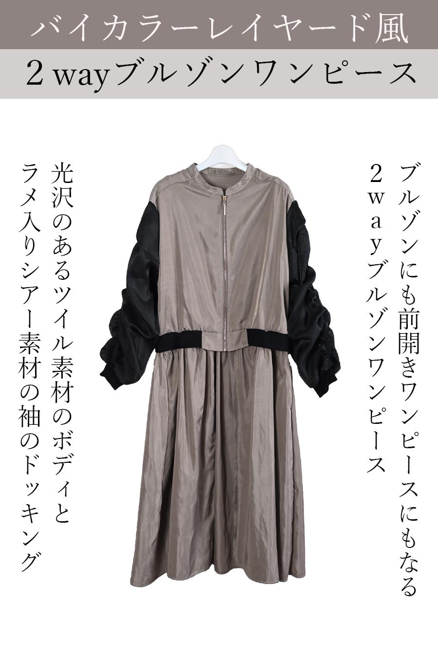 バイカラーレイヤード風2WAYブルゾンワンピース【2月中旬以降発送予定】
