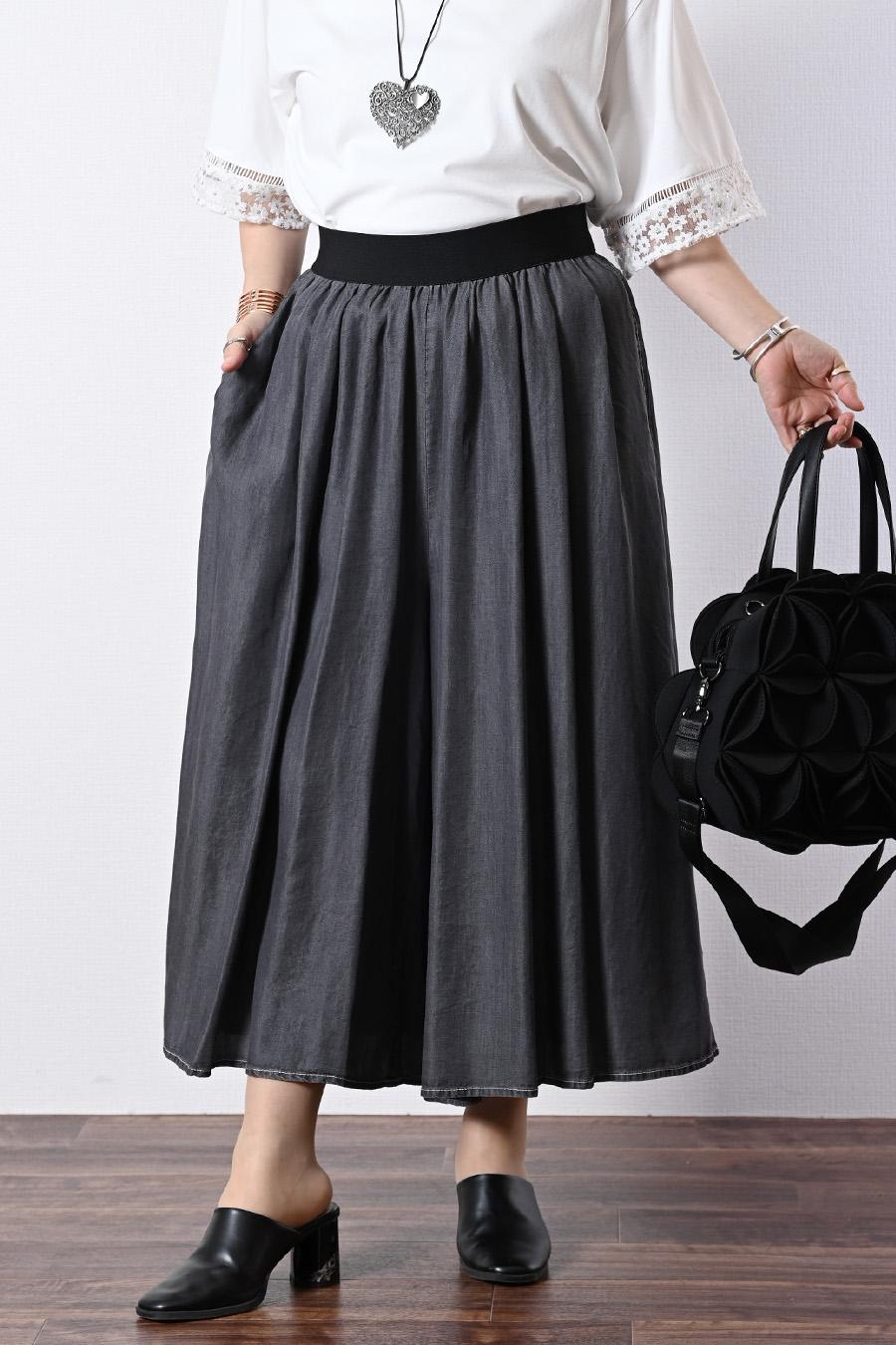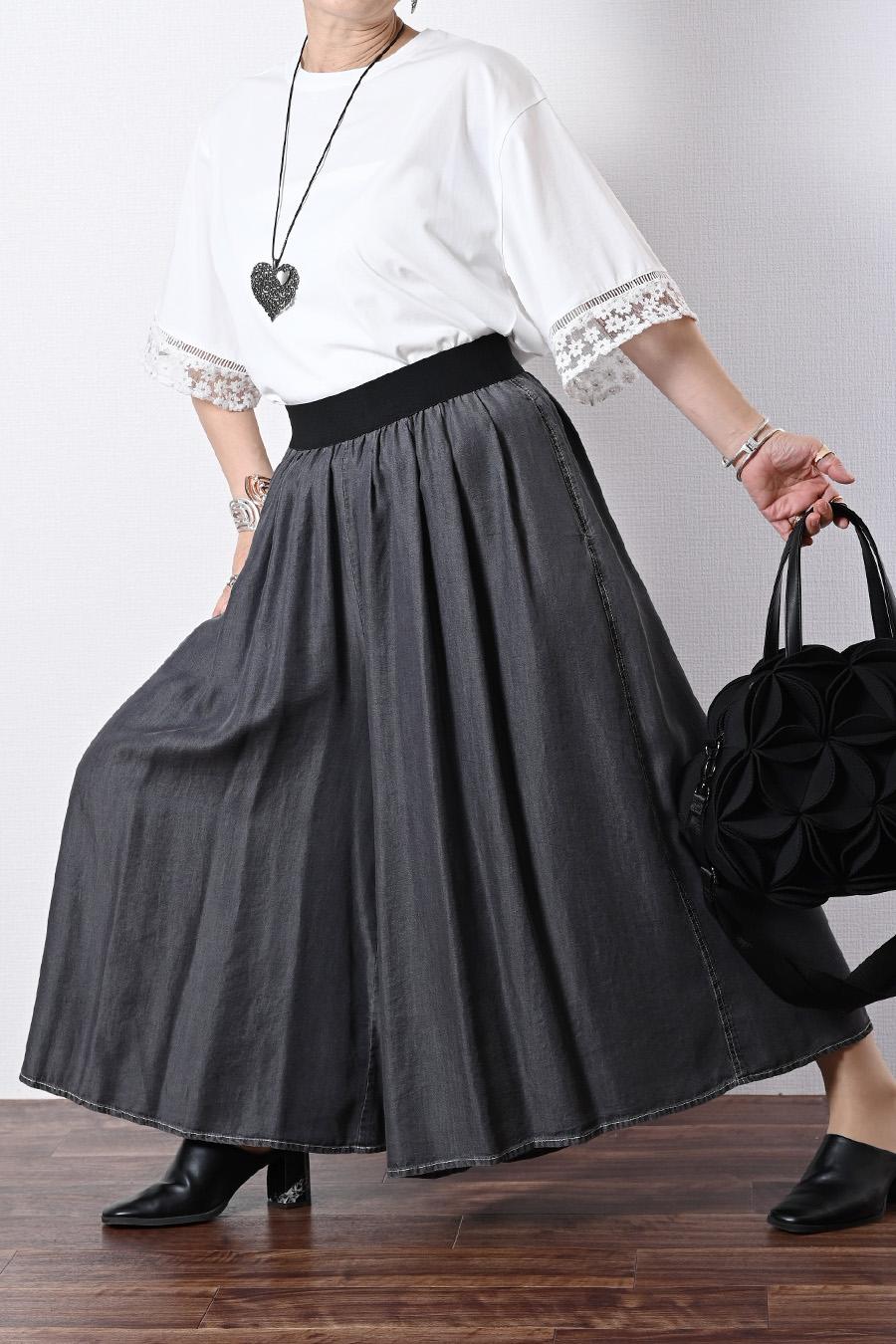 柔らかゆったりスカート見え!セルロースデニム 超ワイドパンツ