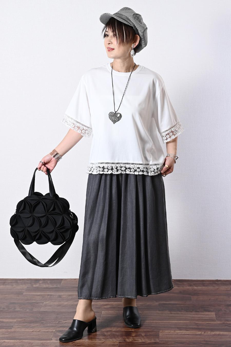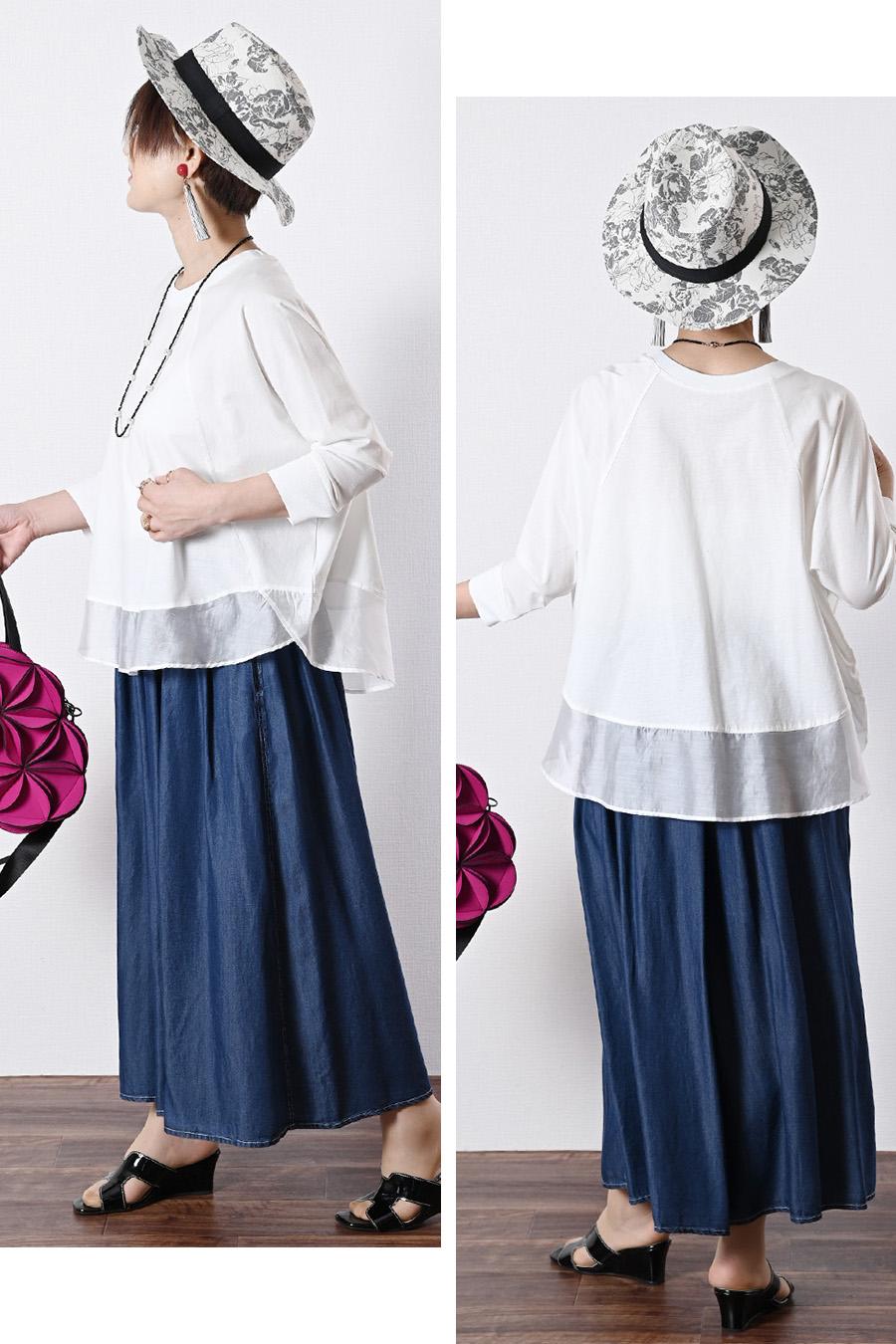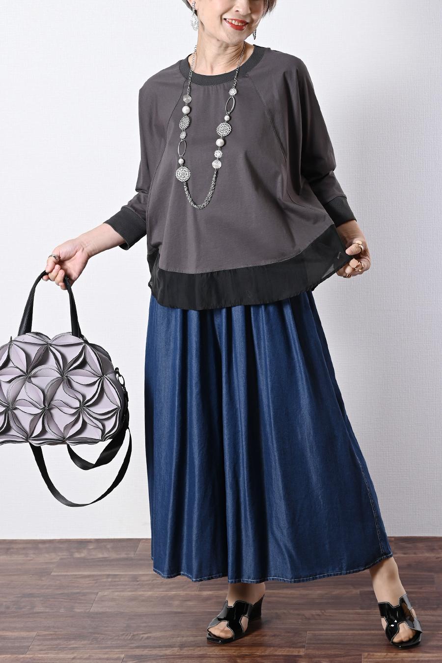シアー切り替えプルオーバー+セルロースデニムワイドパンツ2点セットコーデ