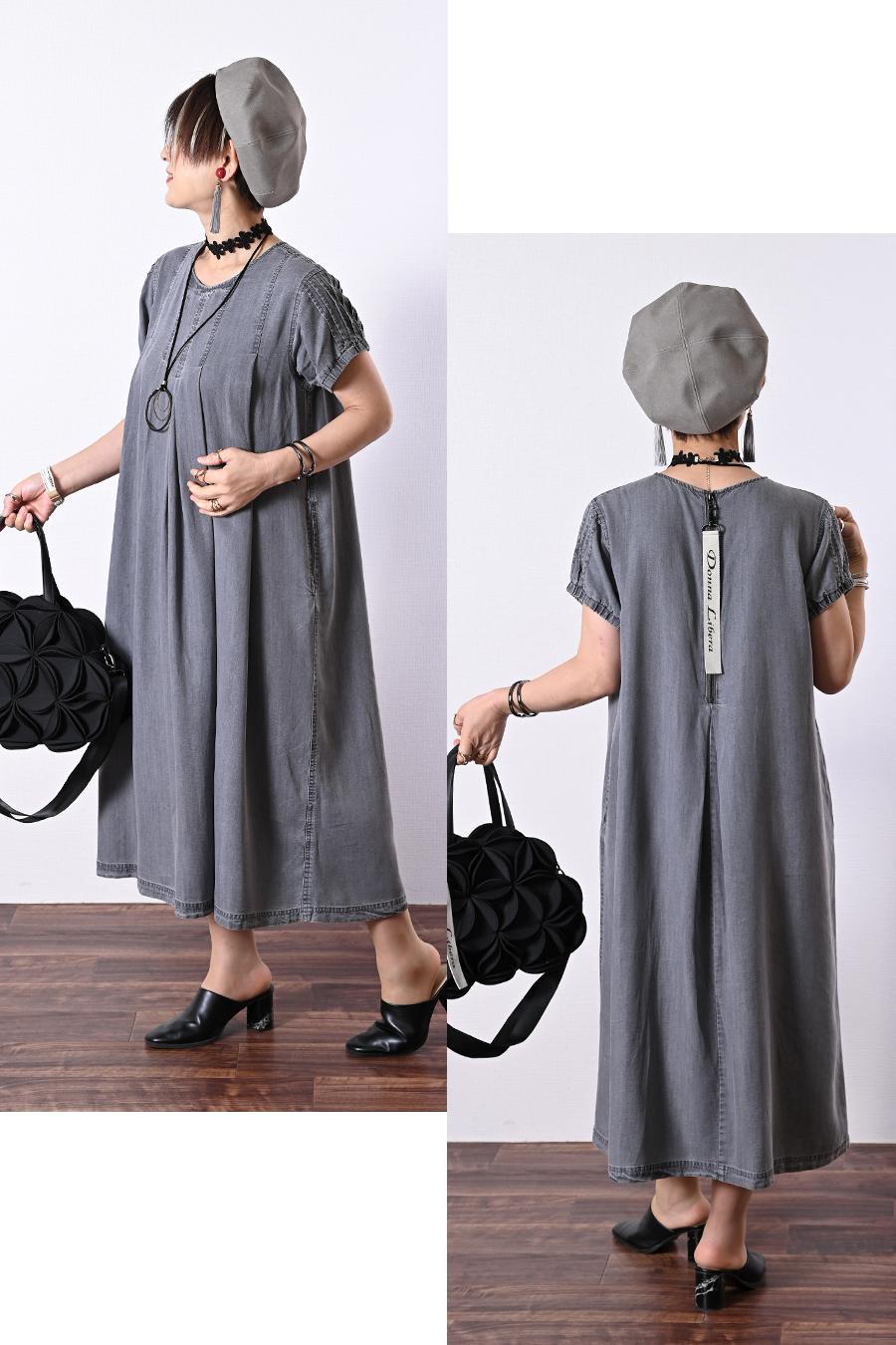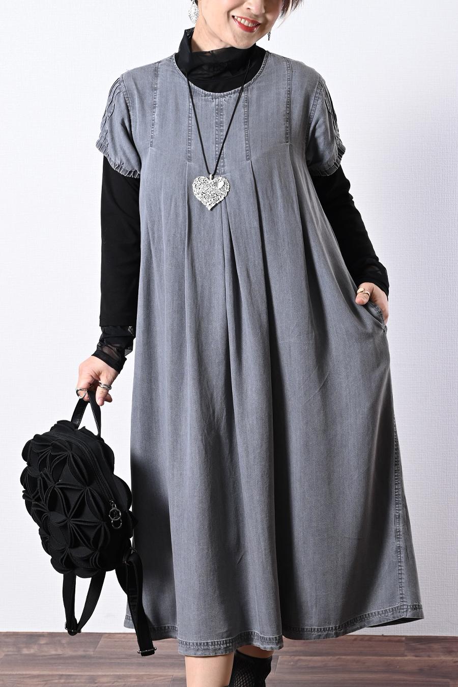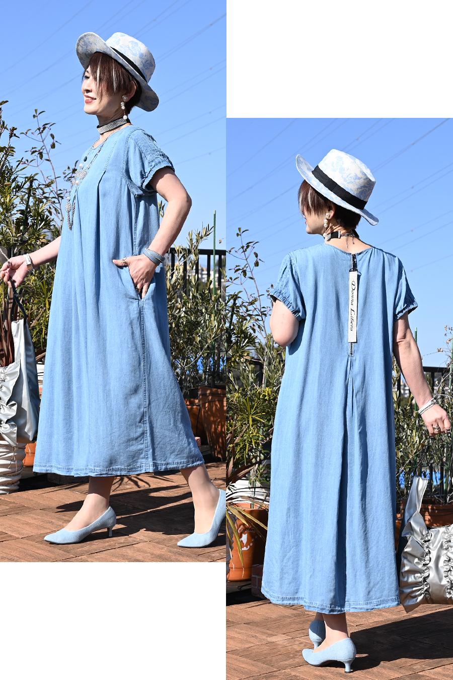 オリジナルチャーム付き!セルロースデニム セミフレアゆったりワンピース【予約販売!発送は3月上旬】