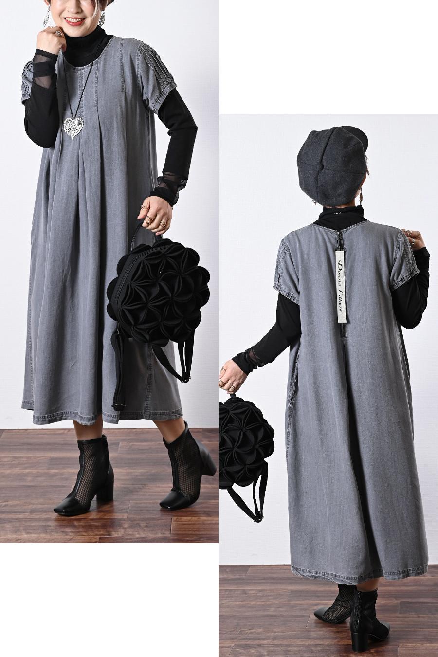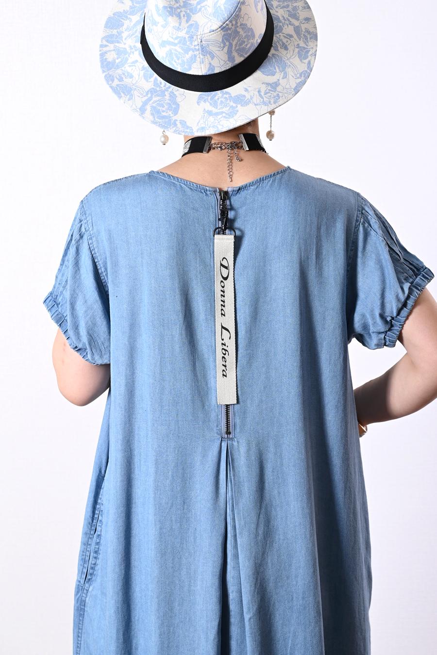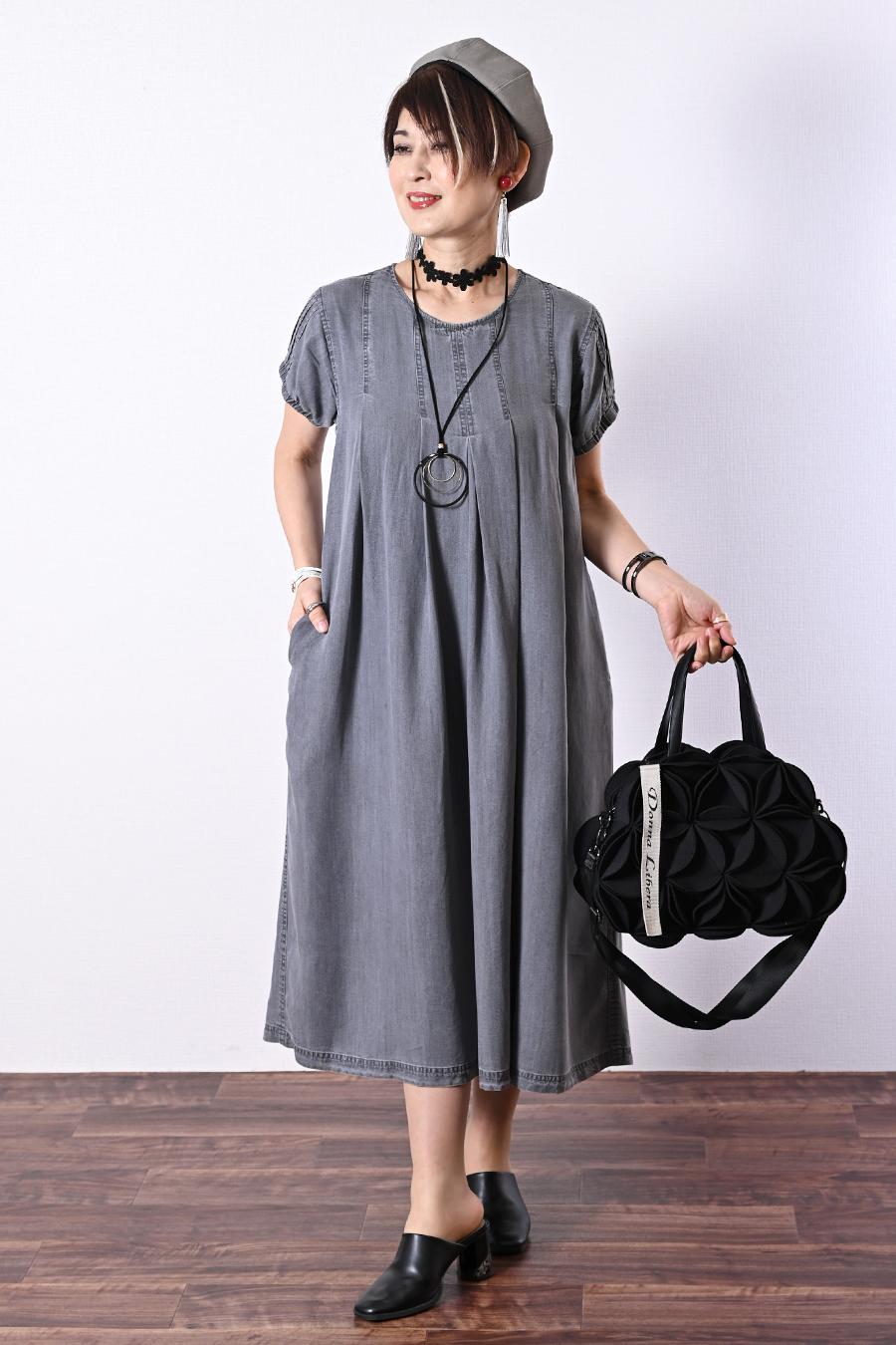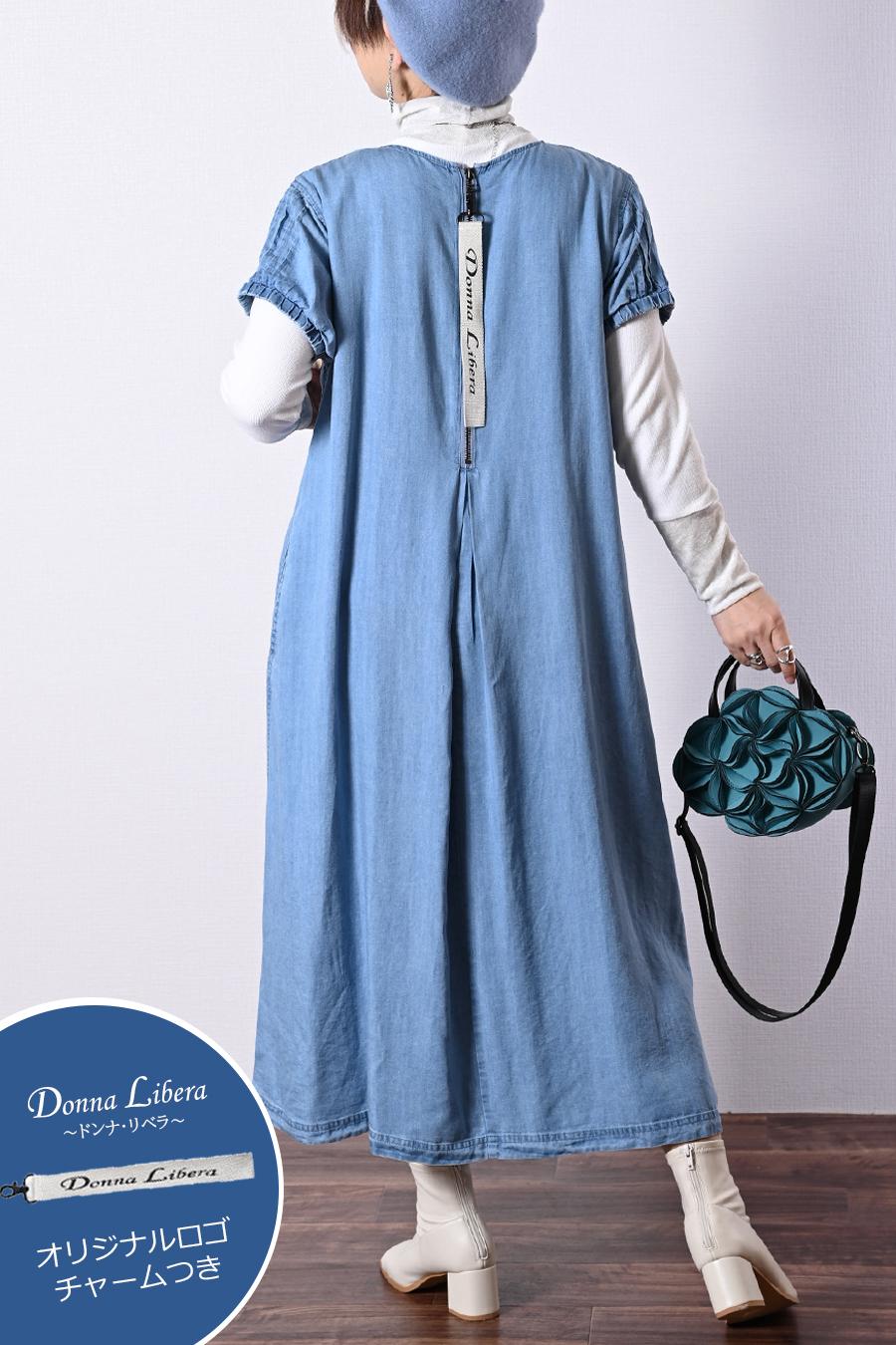 オリジナルチャーム付き!セルロースデニム セミフレアゆったりワンピース【予約販売!発送は3月上旬】