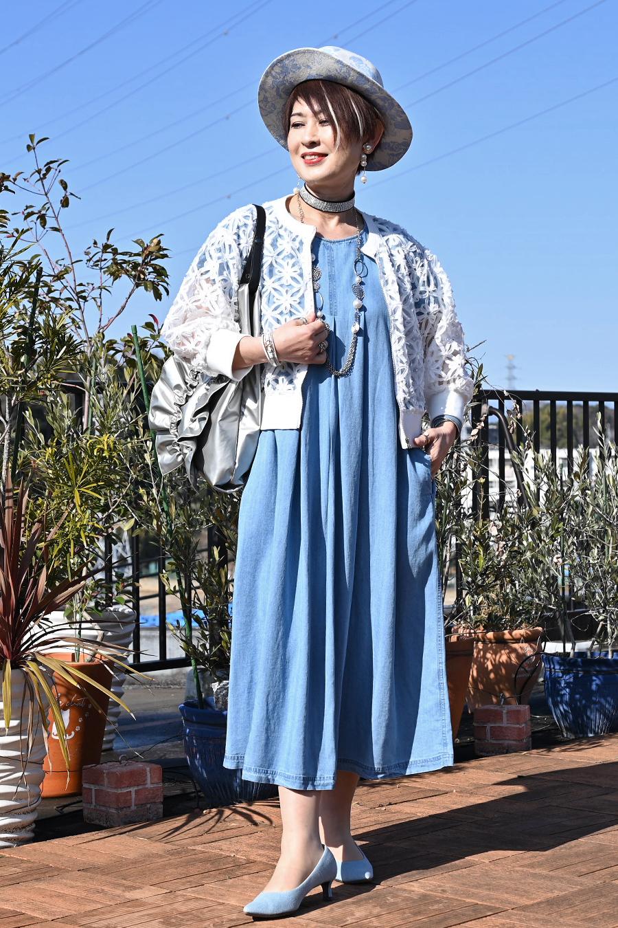 セルロースデニムワンピース+コード刺繍JK2点セットコーデ【予約販売!発送は3月上旬】