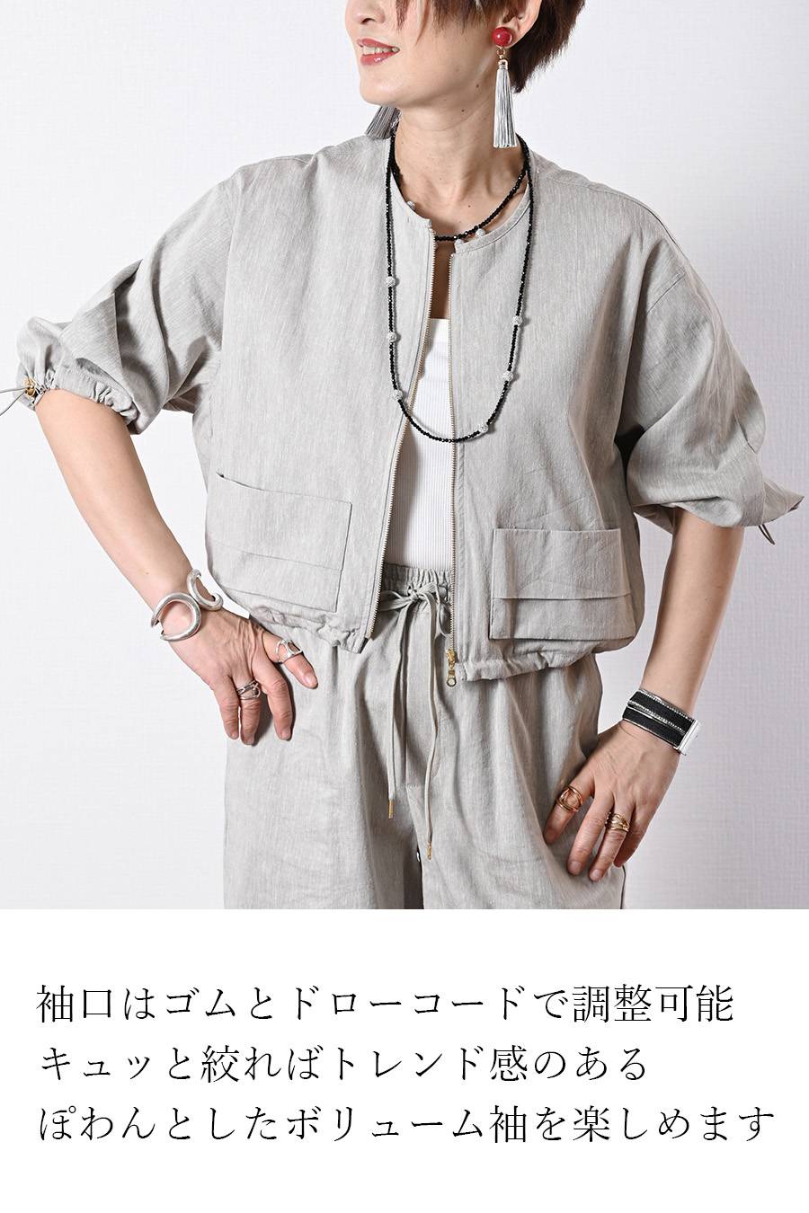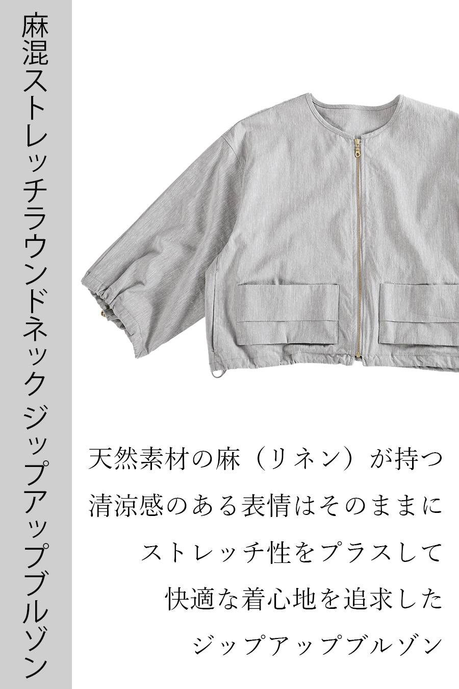 麻混ストレッチ ラウンドネック ジップアップブルゾン