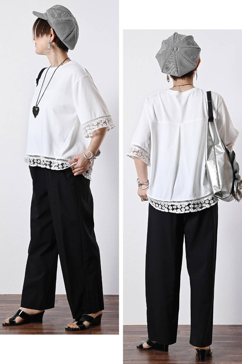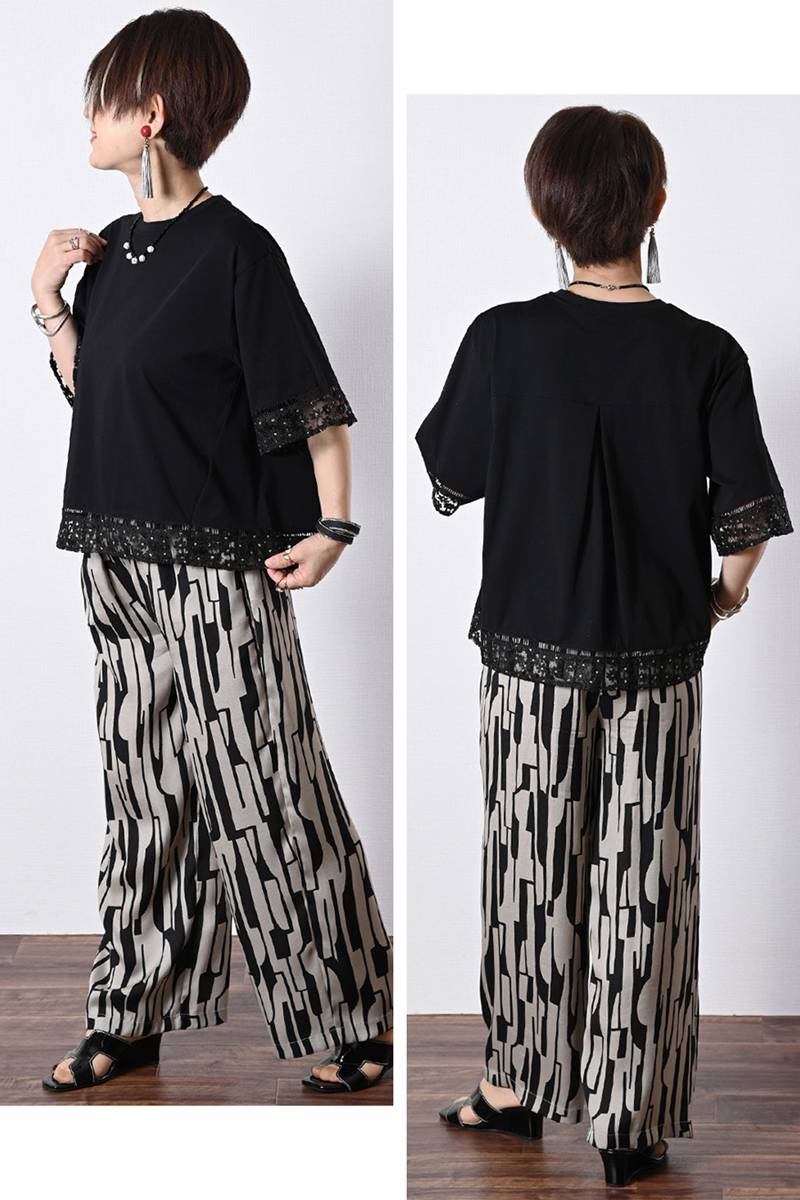 ポンチ切り替えプルオーバー+サイドプリーツワイドパンツ2点セットコーデ