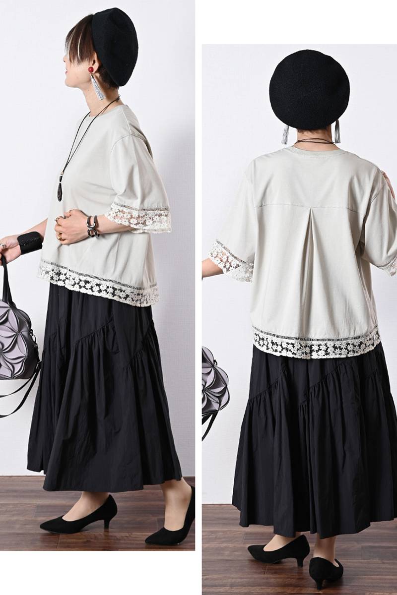 タックスリーブプルオーバー+軽量タック&ギャザー フレアスカート2点セットコーデ