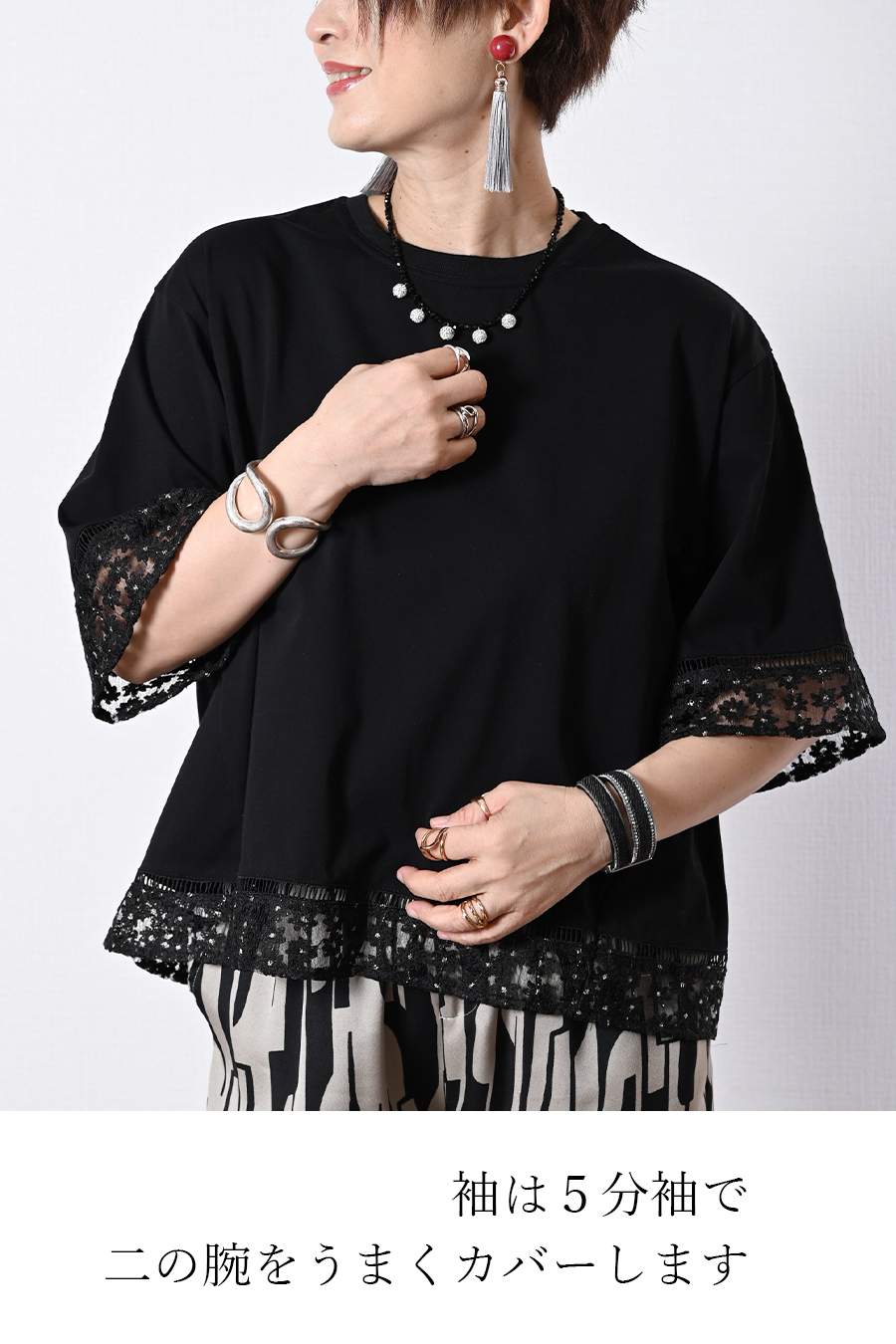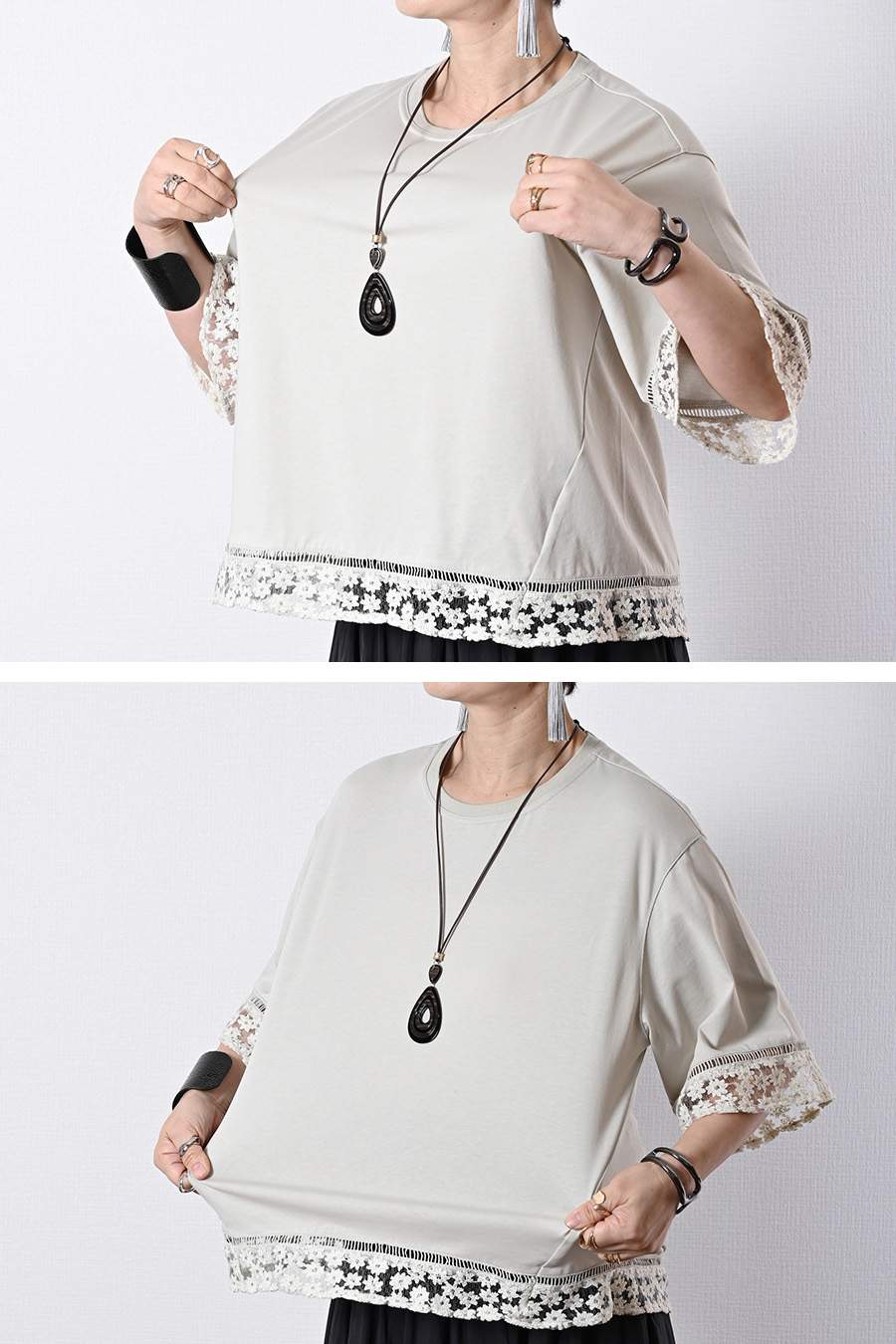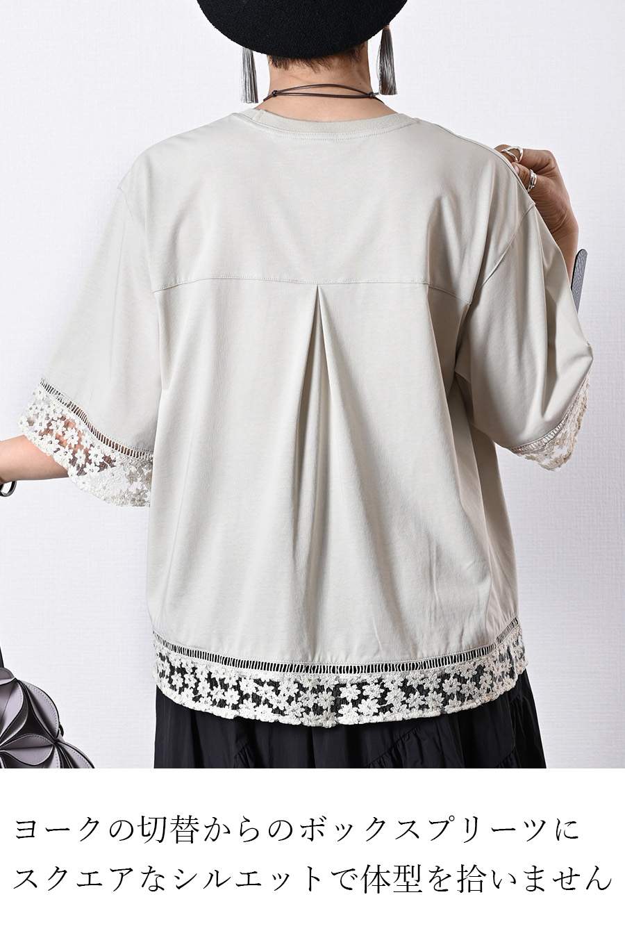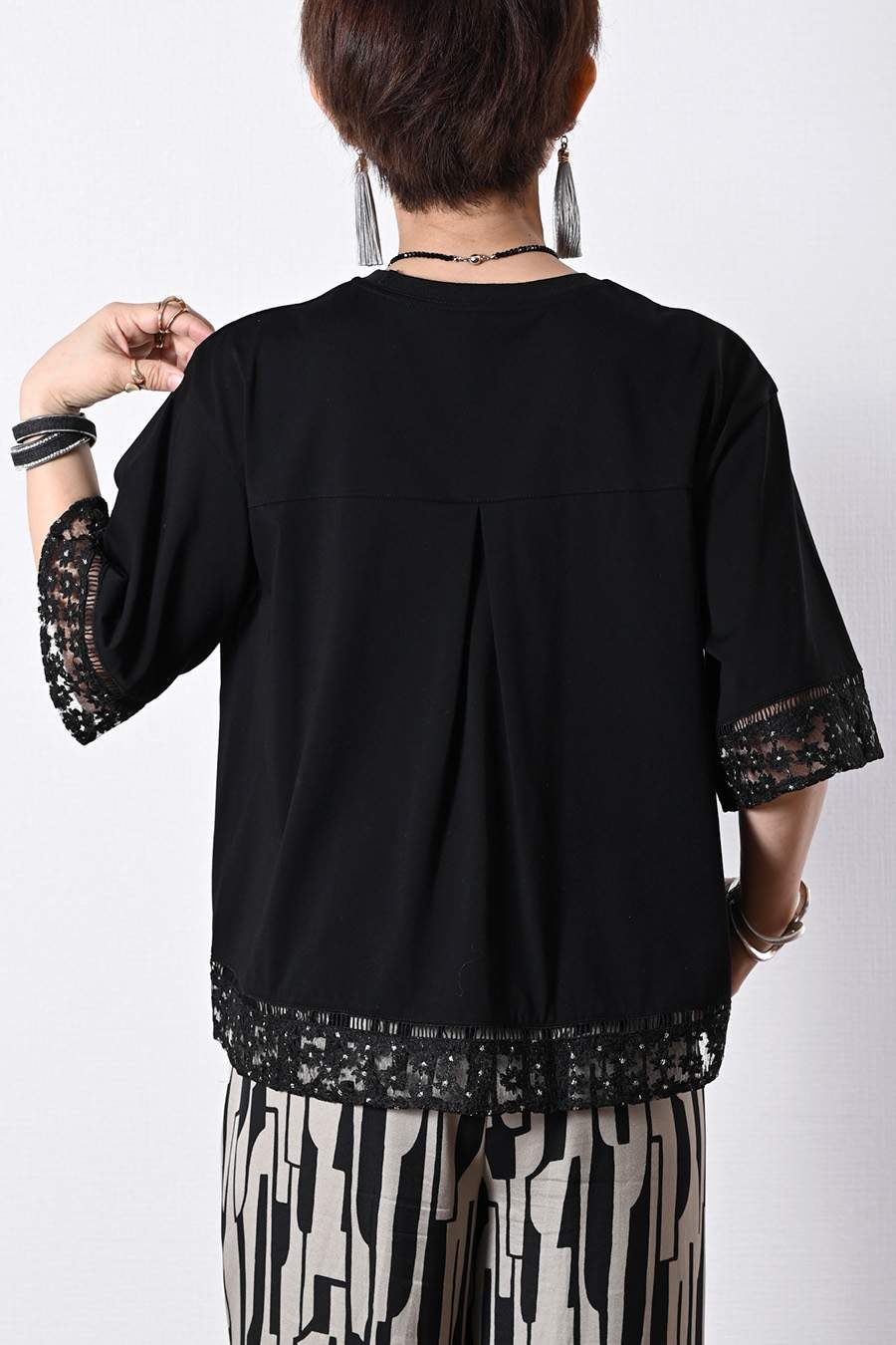 オーガンジーラメ糸刺繍トリミングカットソー