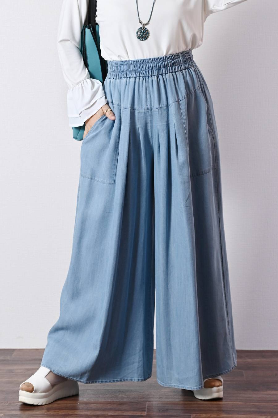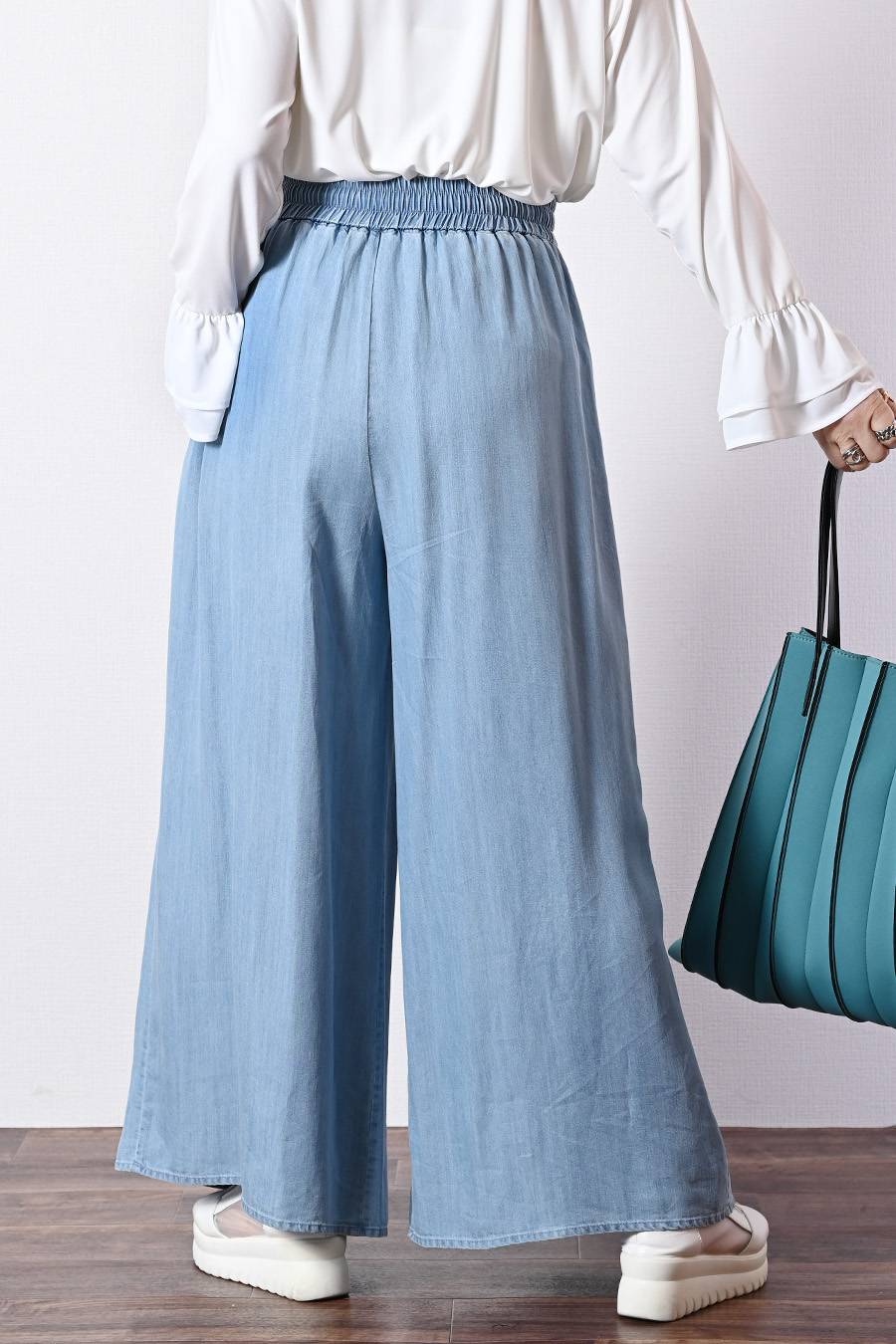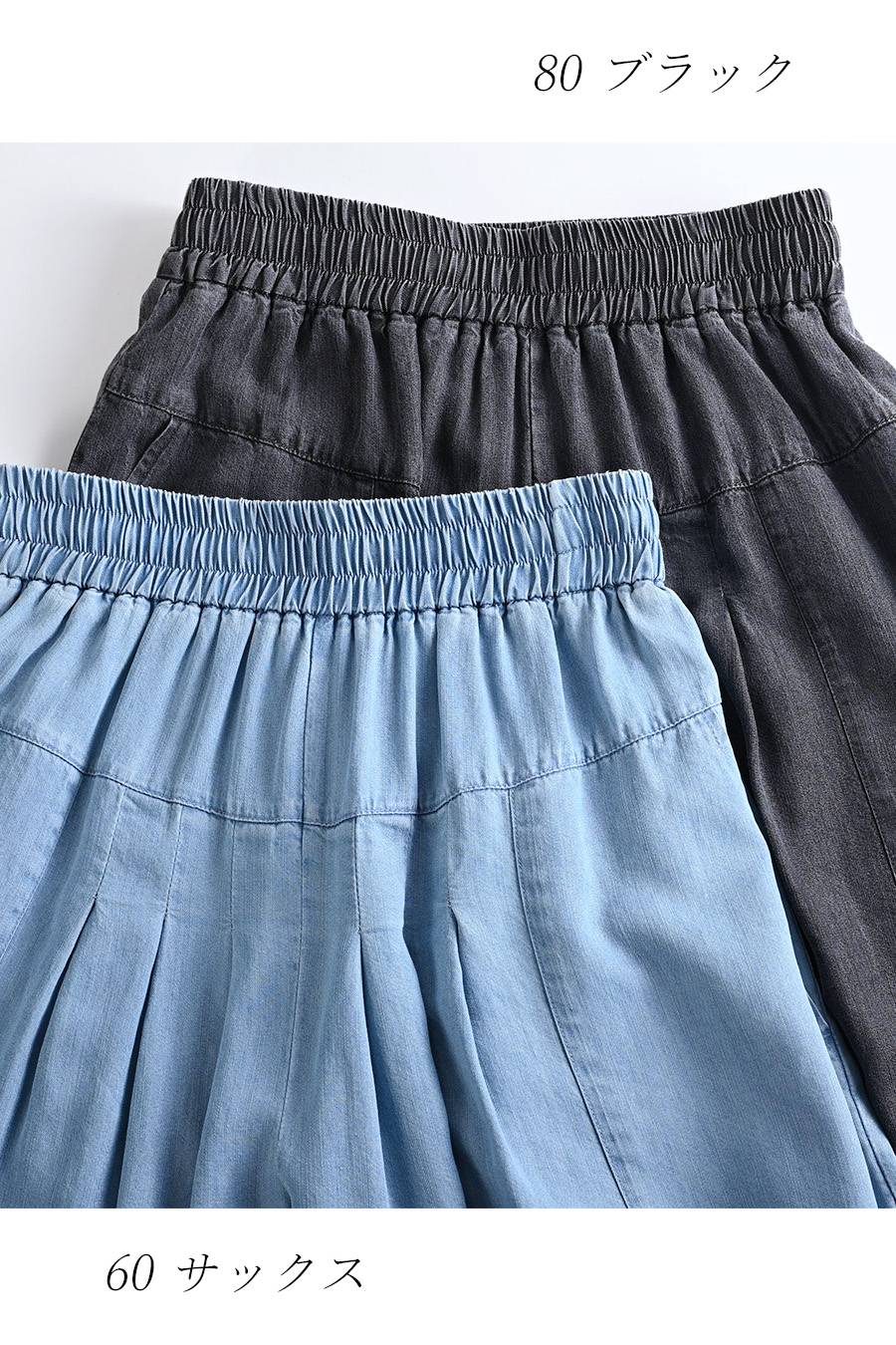 脚長高身長さん向けウエストゴム タックワイドデニムパンツ