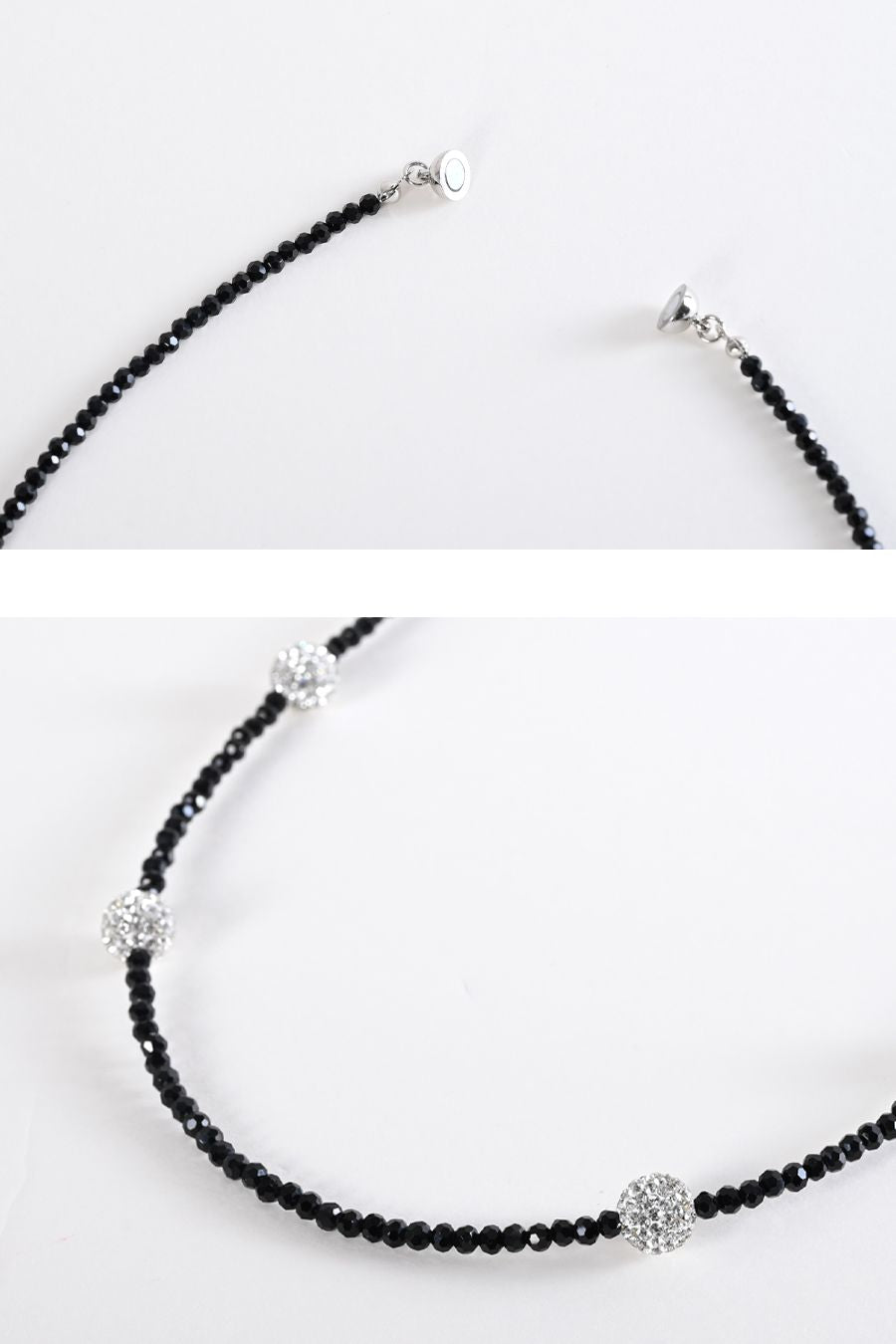 煌めくパヴェボールがアクセント ブラックスタイル ロングネックレス マグネット留め