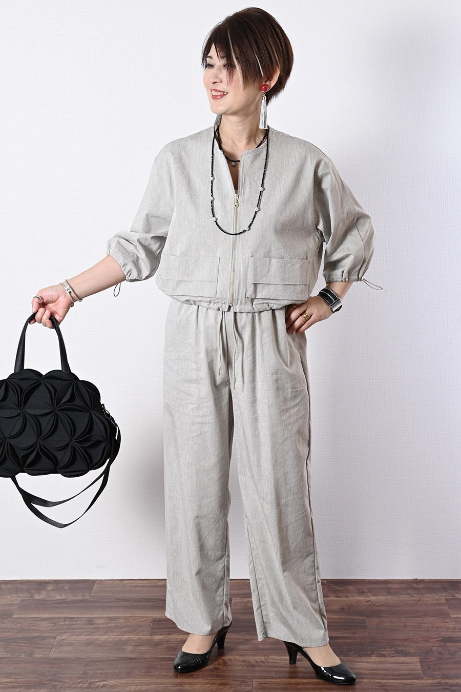 オーガンジーラメ糸刺繍カットソー+ワイドサロペット2点セットコーデ
