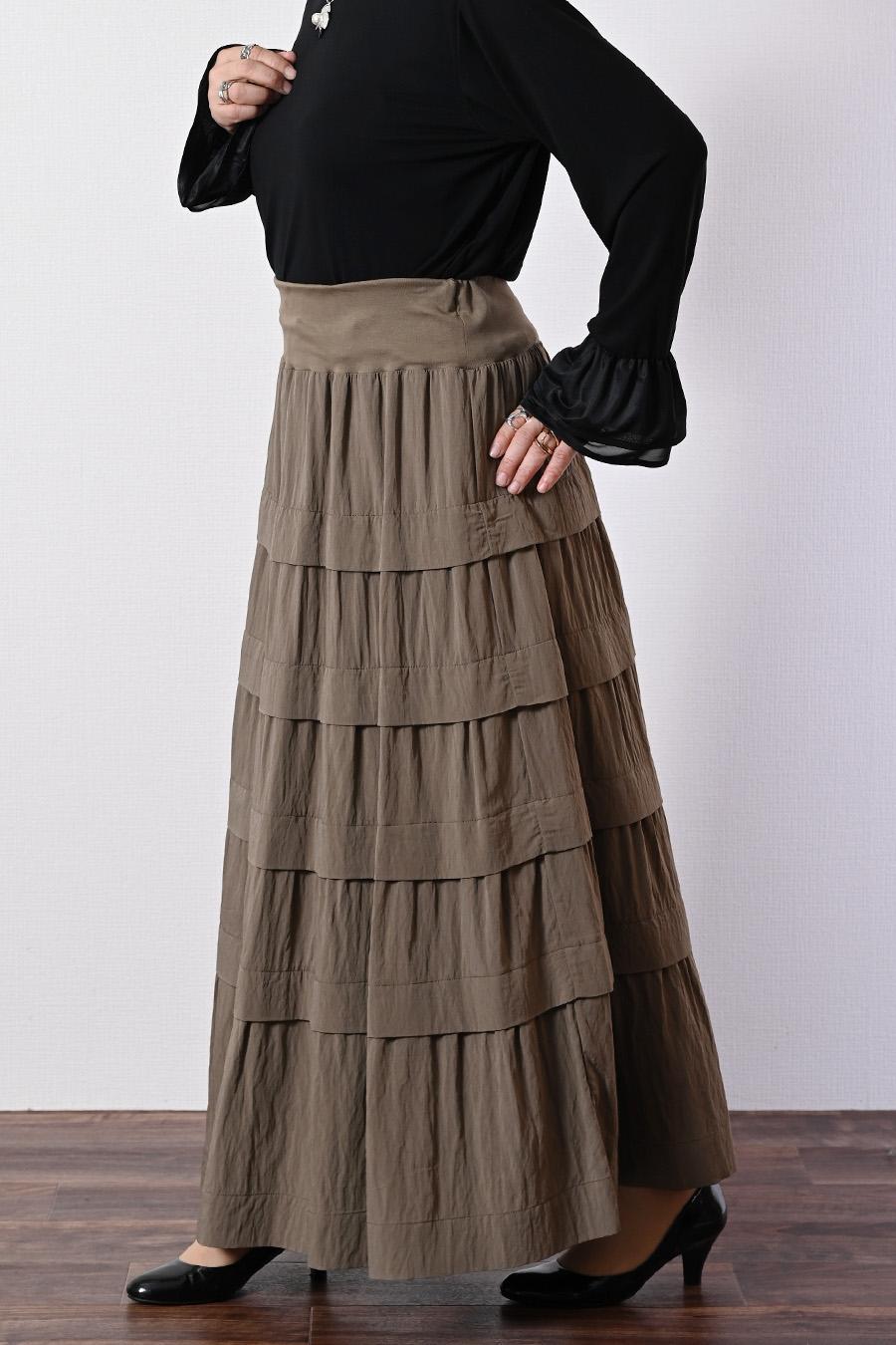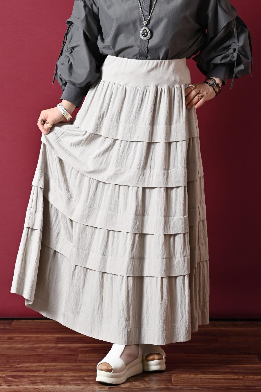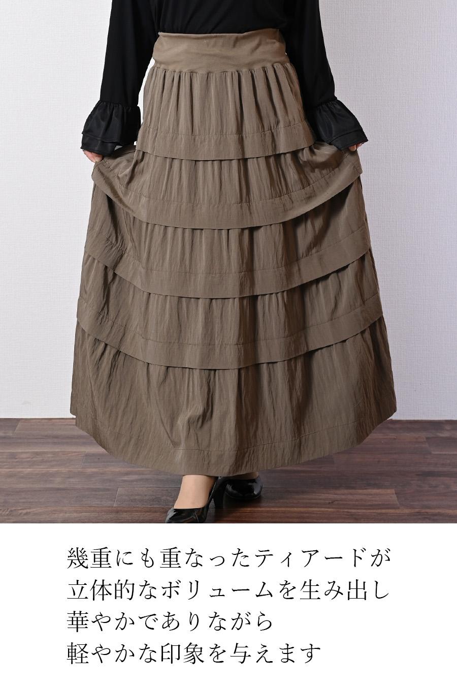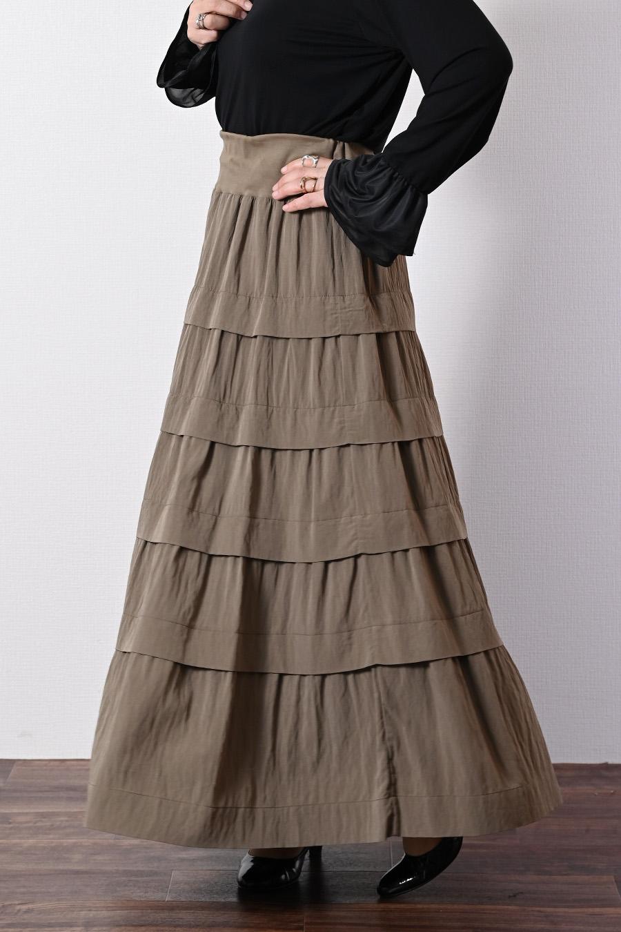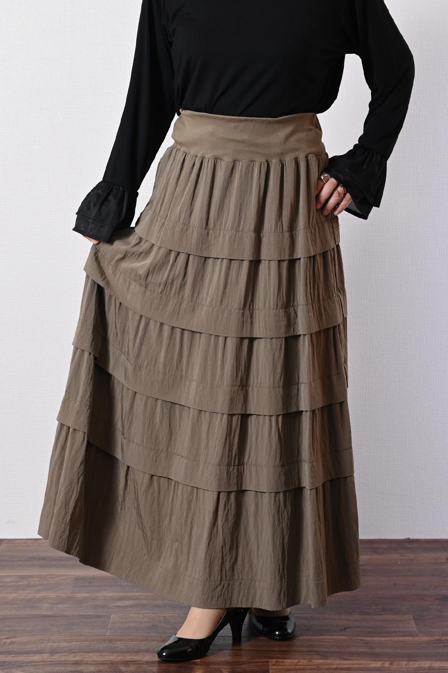 立体感溢れる大人のティアード!ワッシャーティアード ロングスカート