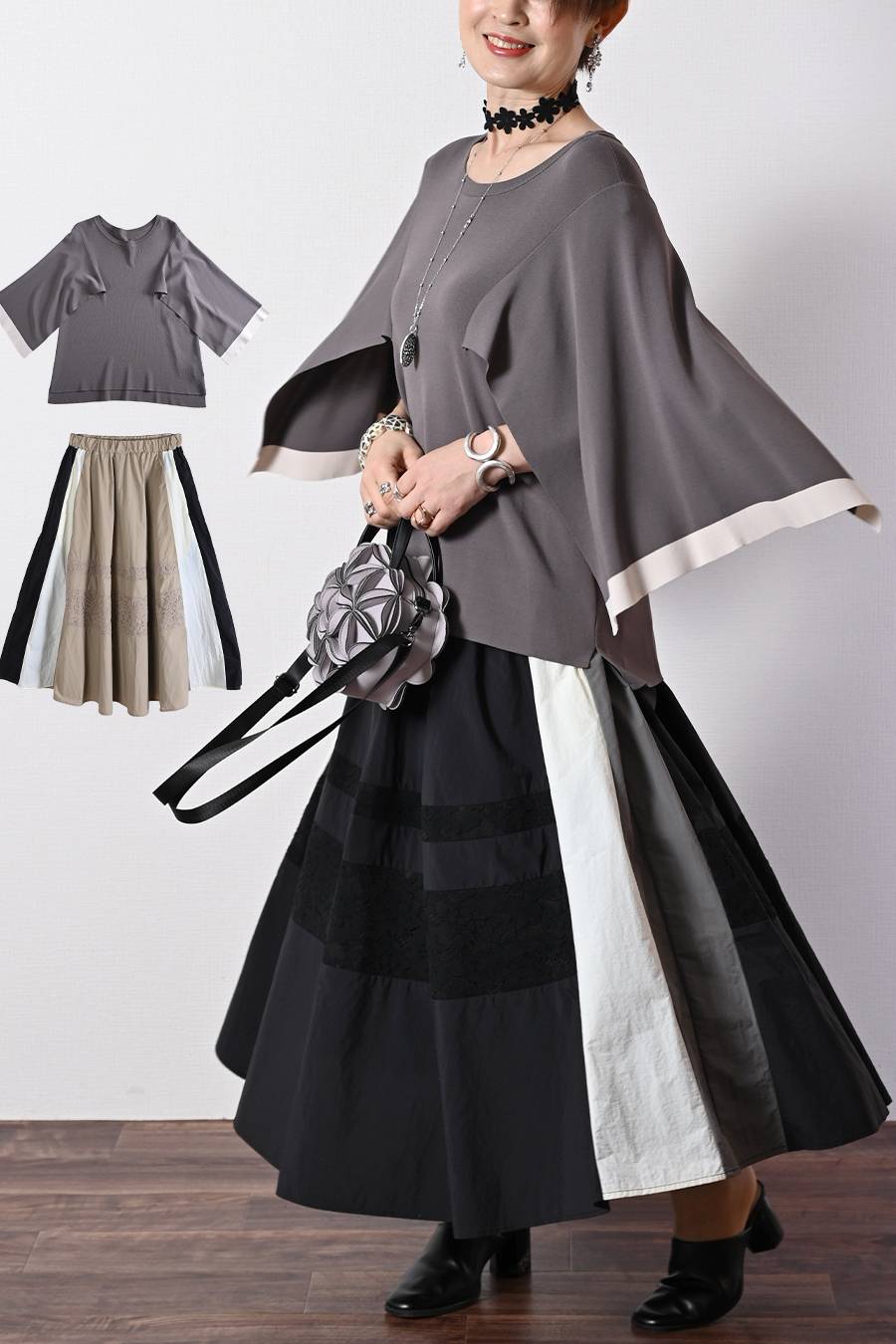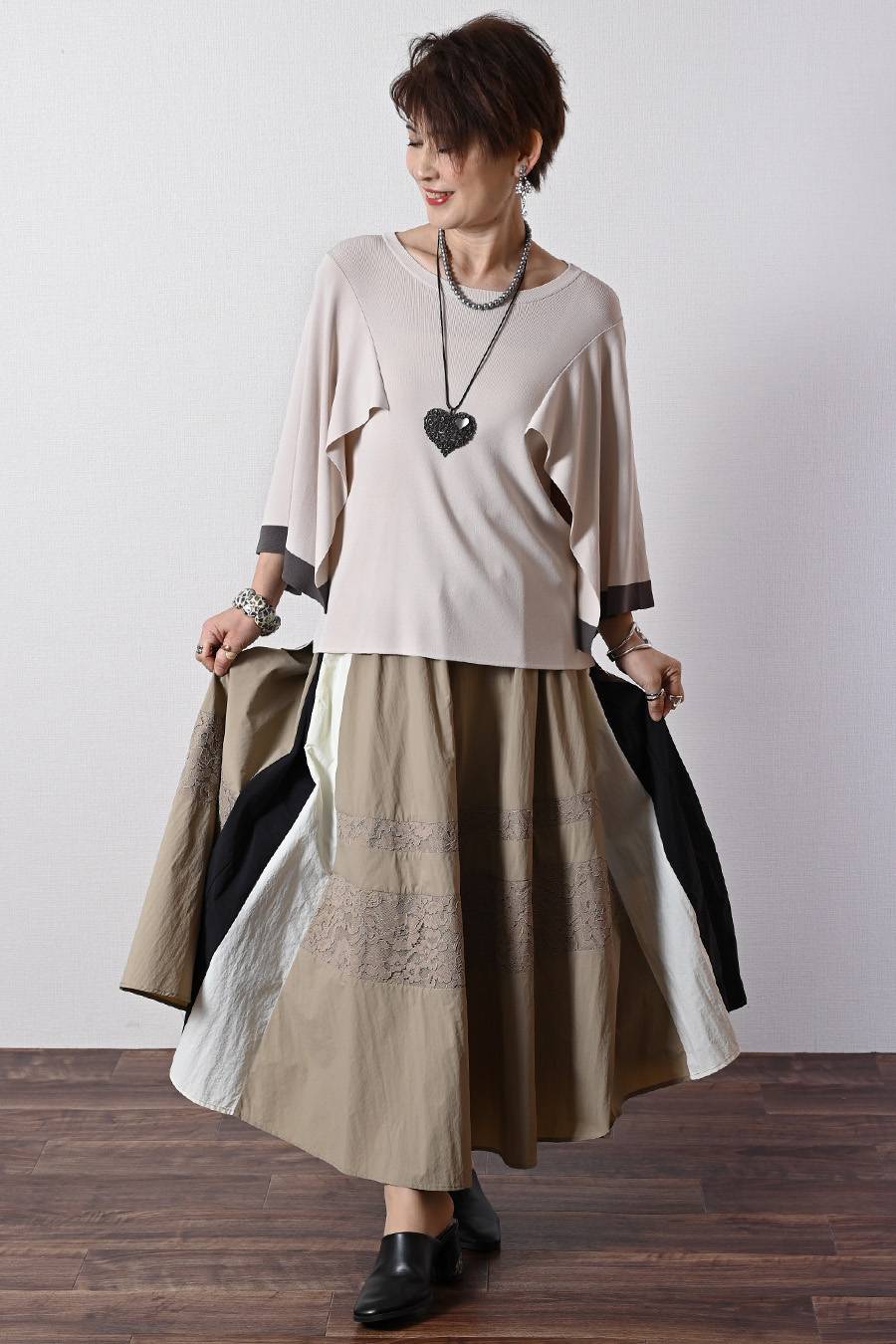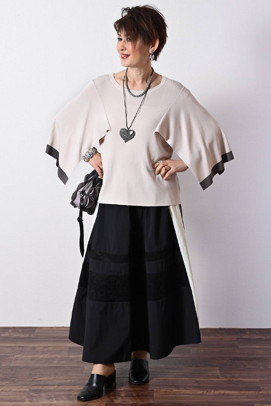 ケープスリーブ・ハイゲージニット+レース切り替えフレアスカート2点セットコーデ
