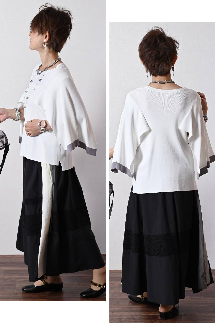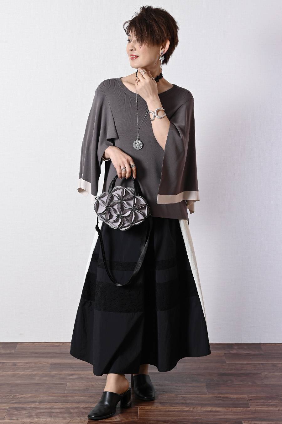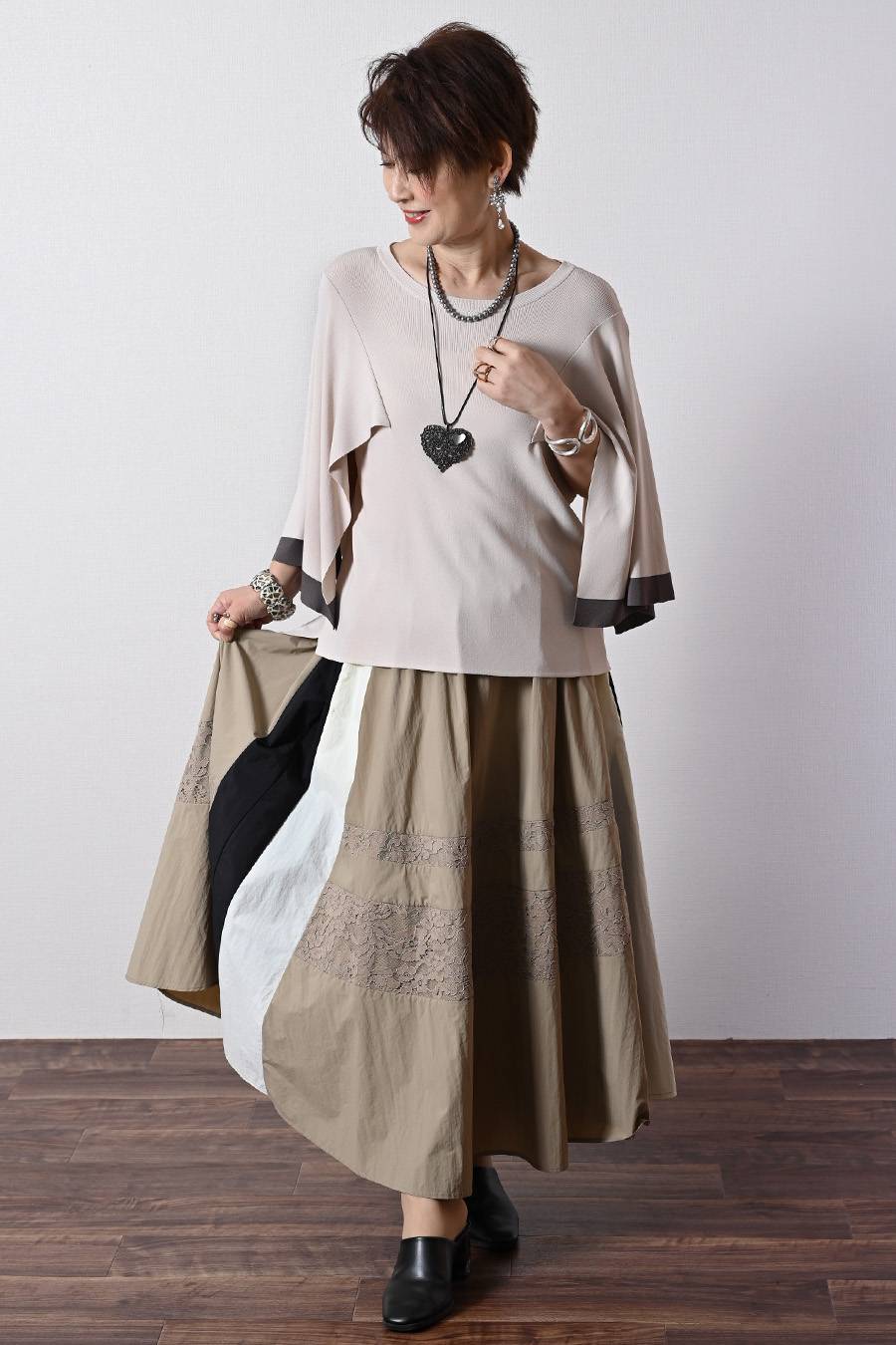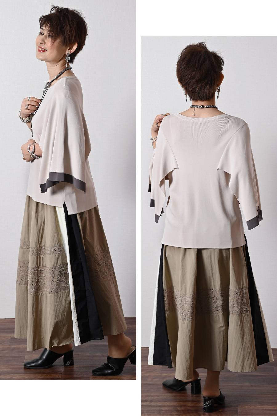 ケープスリーブ・ハイゲージニット+レース切り替えフレアスカート2点セットコーデ