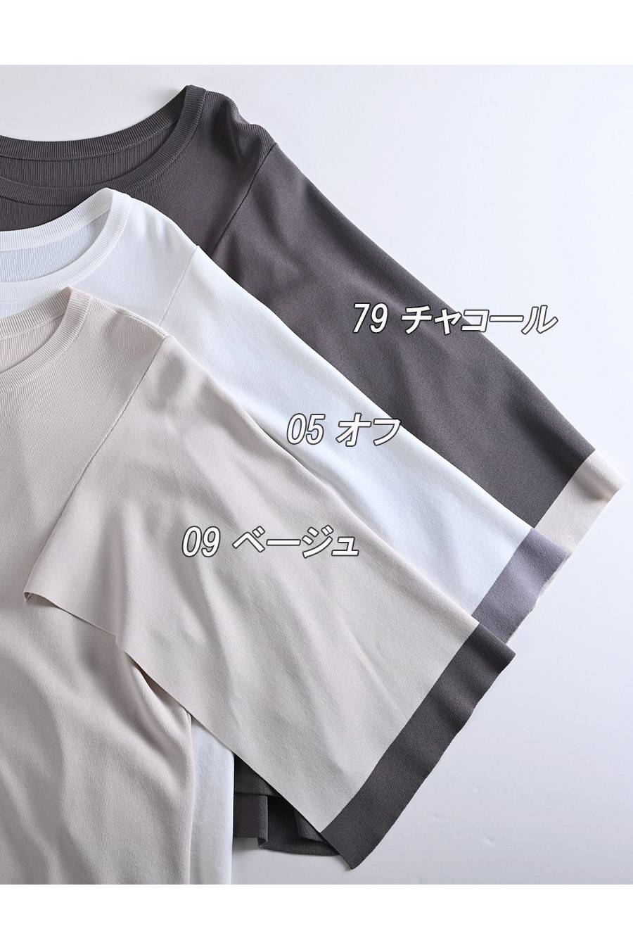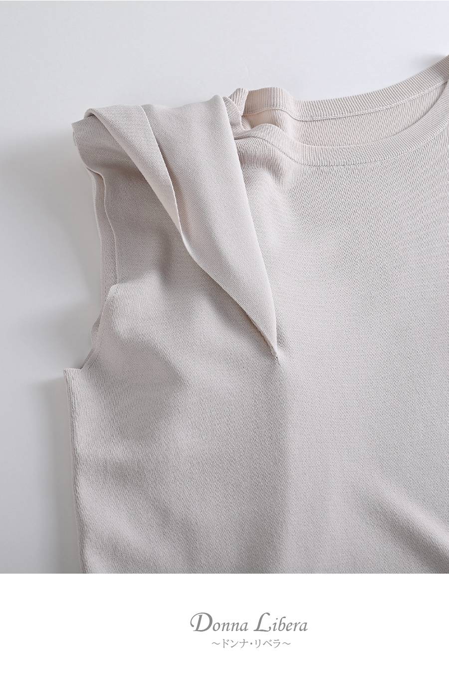 袖フリルストレッチカットソー+袖シフォンリボンメッシュニットプルオーバー2点セットコーデ