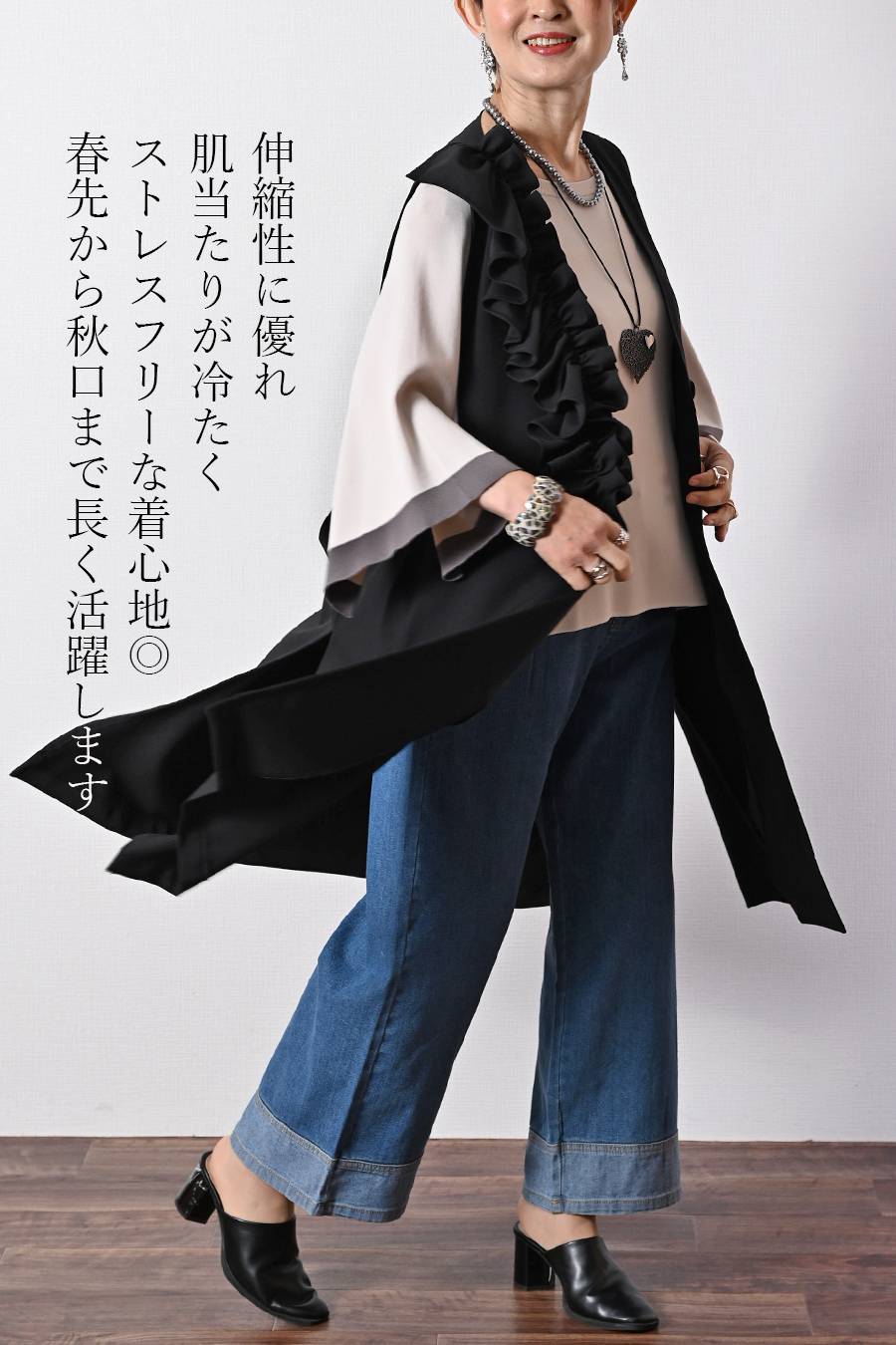 フリルジョーゼットブラウス+タックワイドデニムパンツ2点セットコーデ