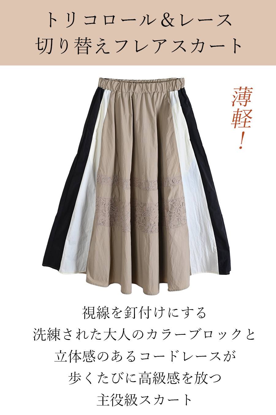 大人のビスチェ風レースブラウス+超軽量タフタ フレアスカート 2点セットコーデ