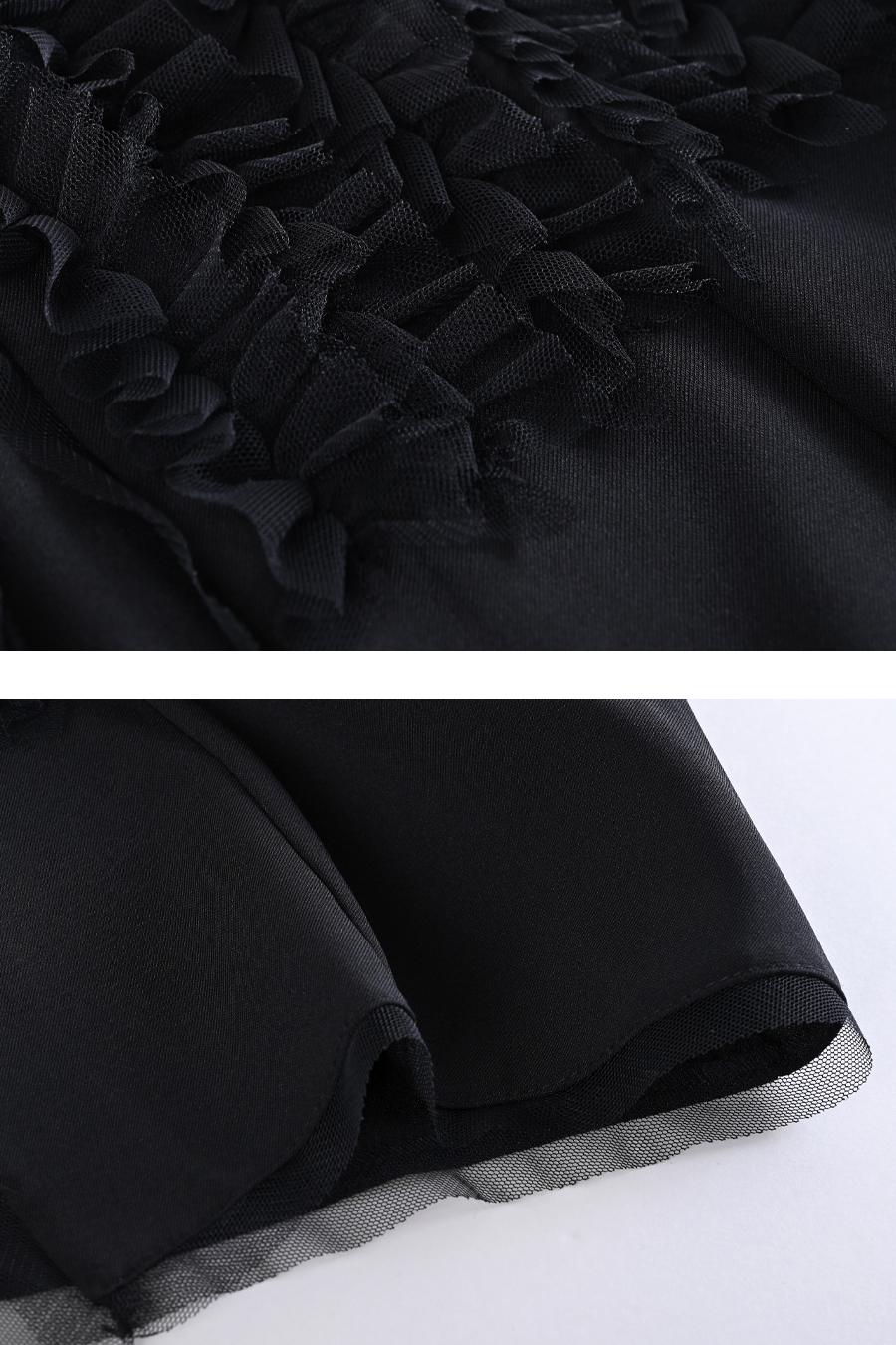 ストレッチ性に優れたマットな質感のストレッチ素材を使用。チュールの透け感と、とろみのあるボディの対比が、大人の可愛らしさとクラス感を演出します。