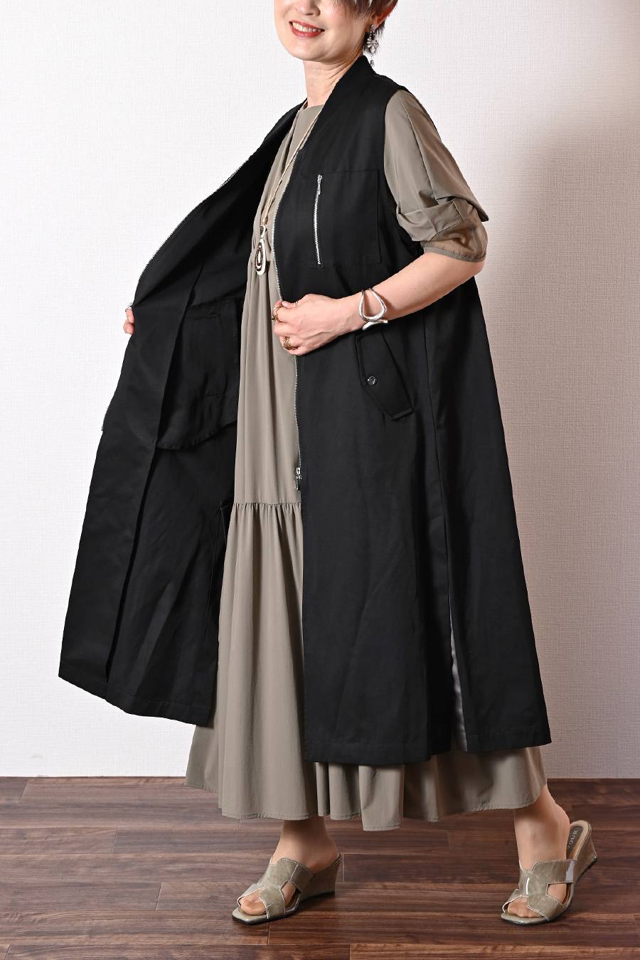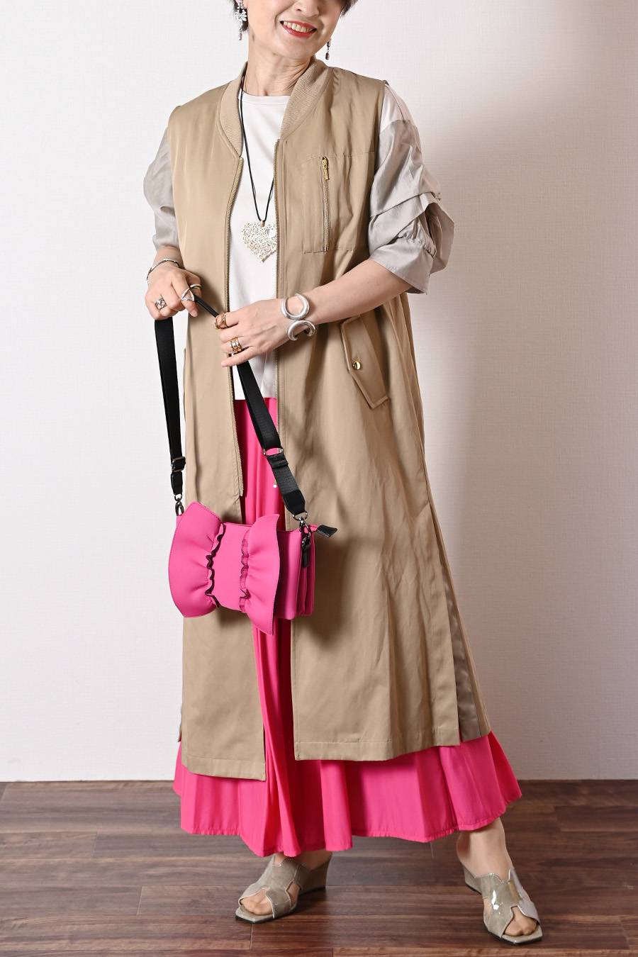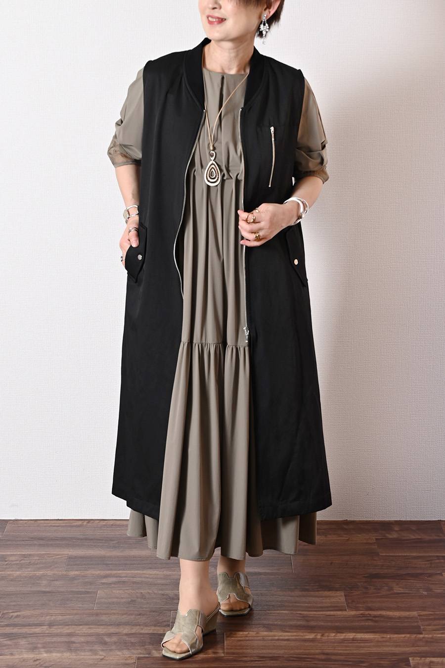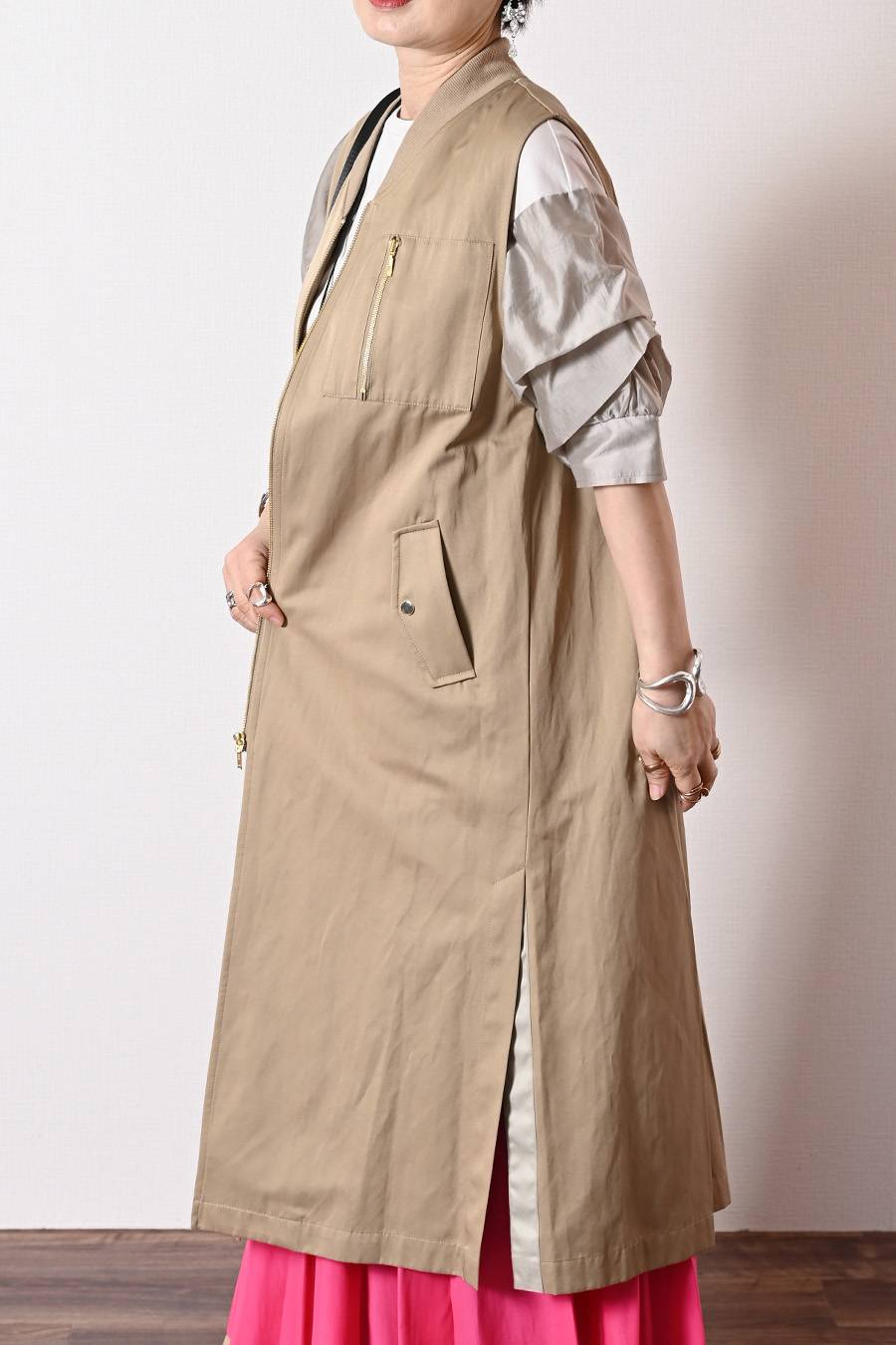 袖ボリュームカットソー+ミリタリーロングフライトジャケット2点セットコーデ