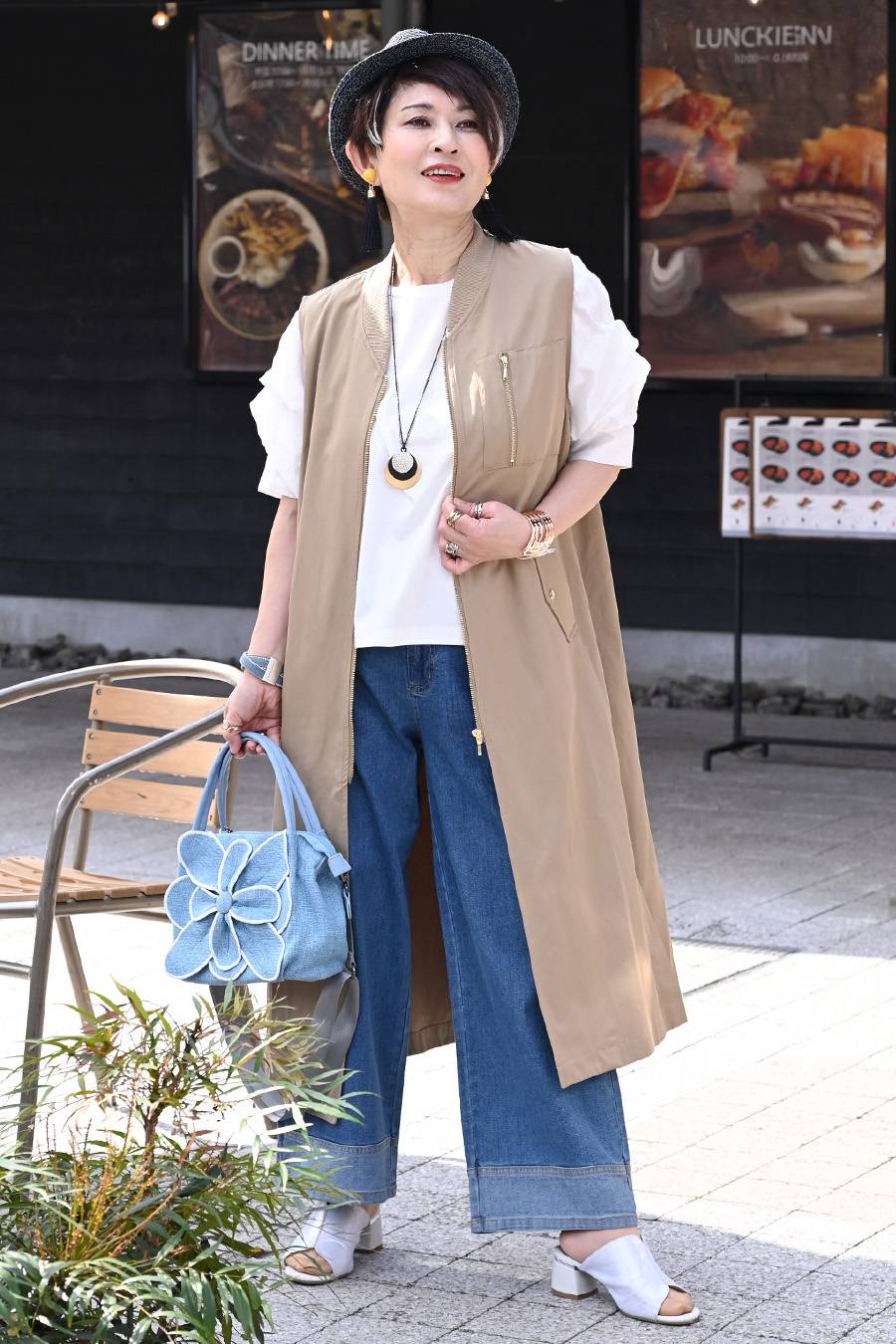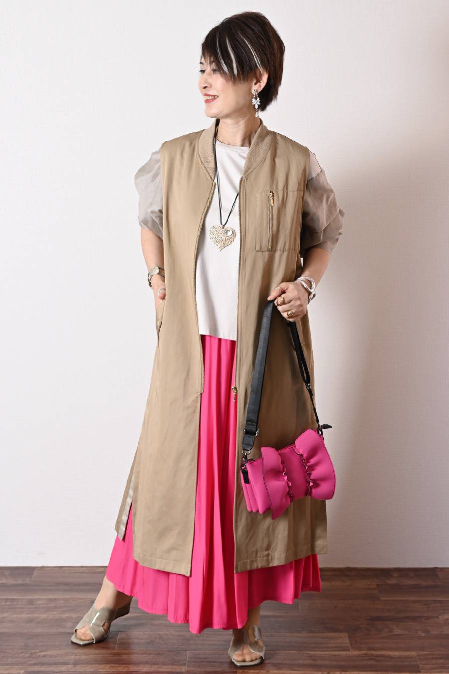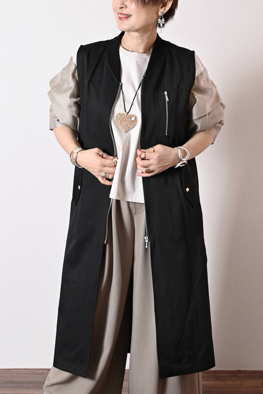 袖ボリュームカットソー+ミリタリーロングフライトジャケット2点セットコーデ