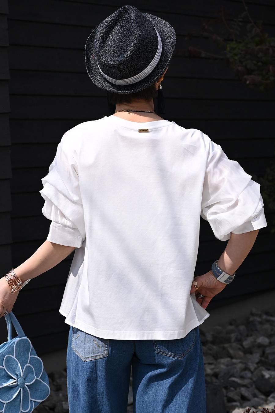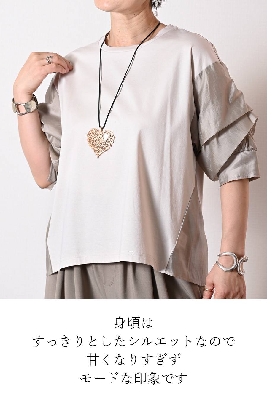 華やかさと立体感!袖ボリューム・異素材切替カットソー
