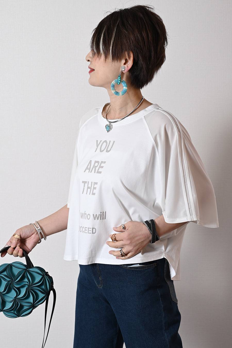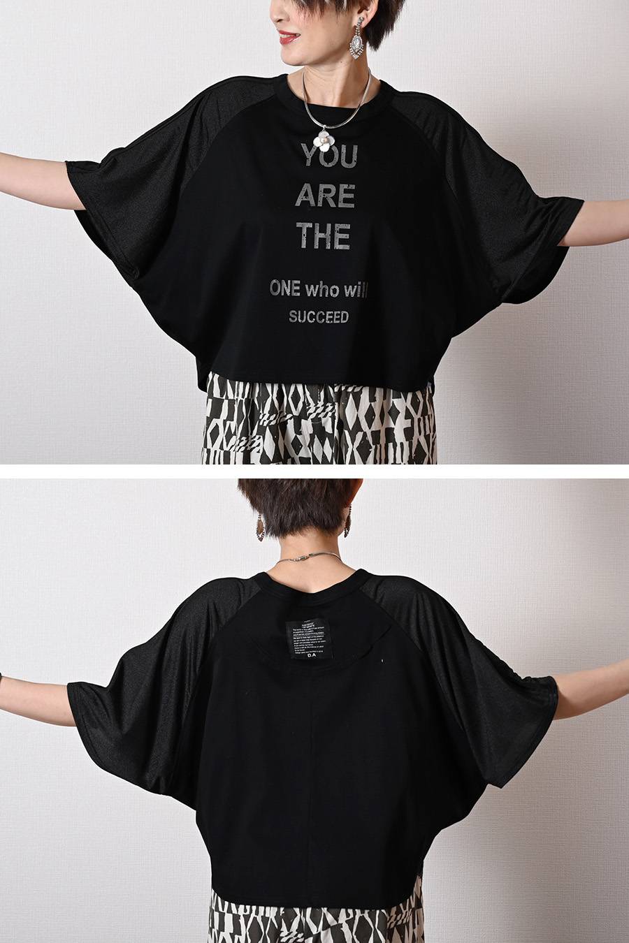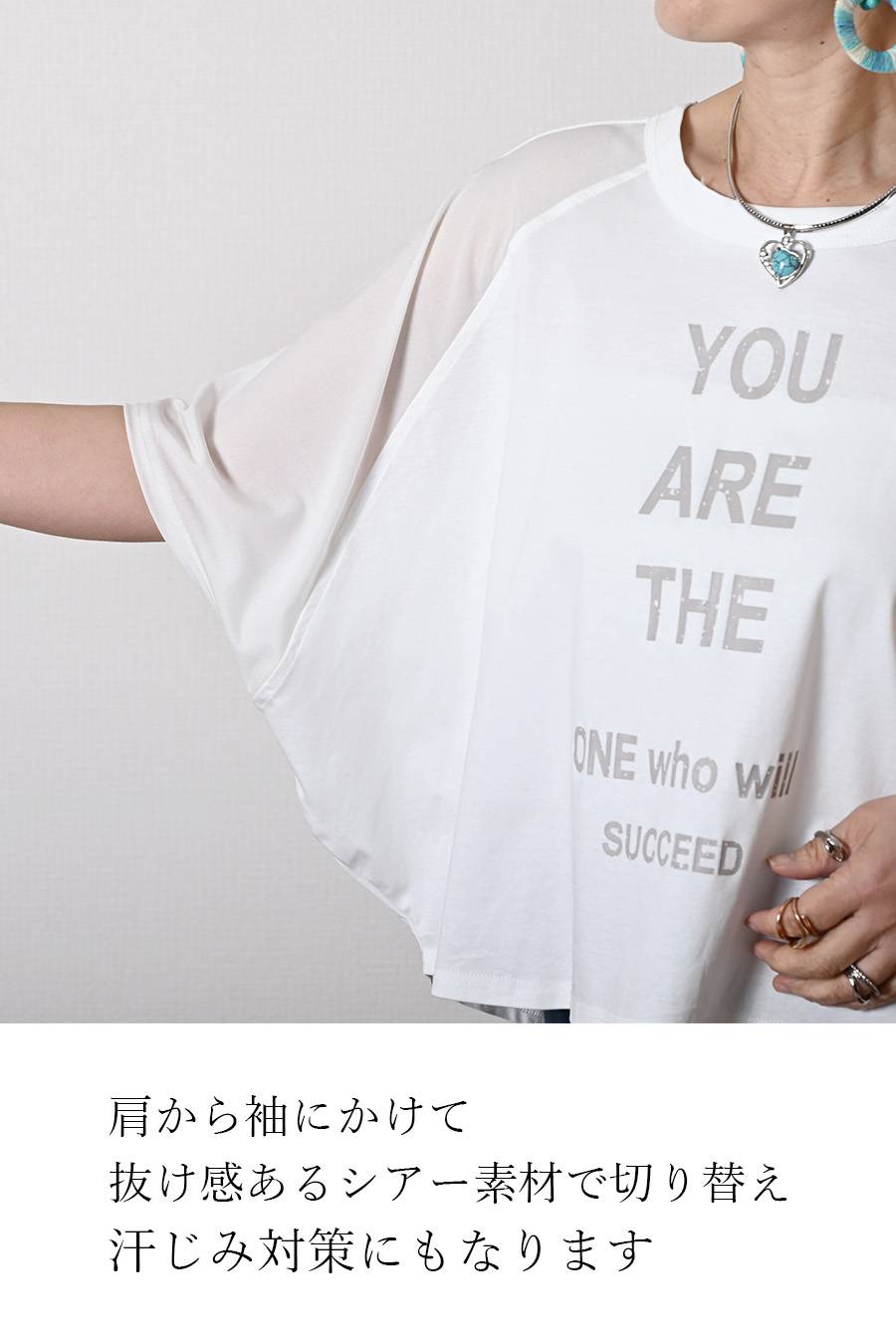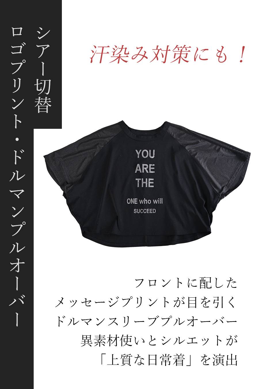 汗染み対策にも!シアー切替 ロゴプリント・ドルマンプルオーバー